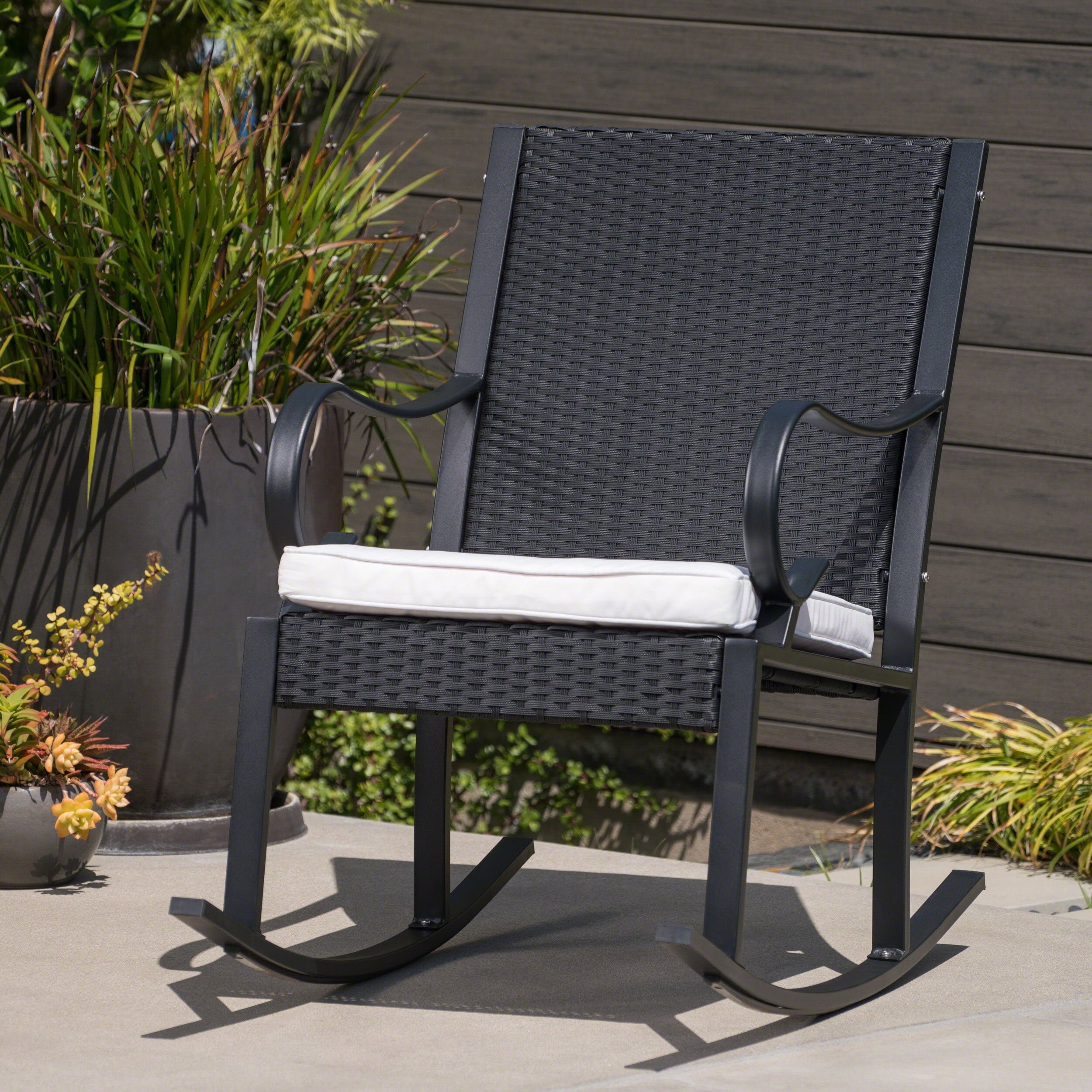 Hayden Outdoor Wicker Rocking Chair with Cushion, White,Black