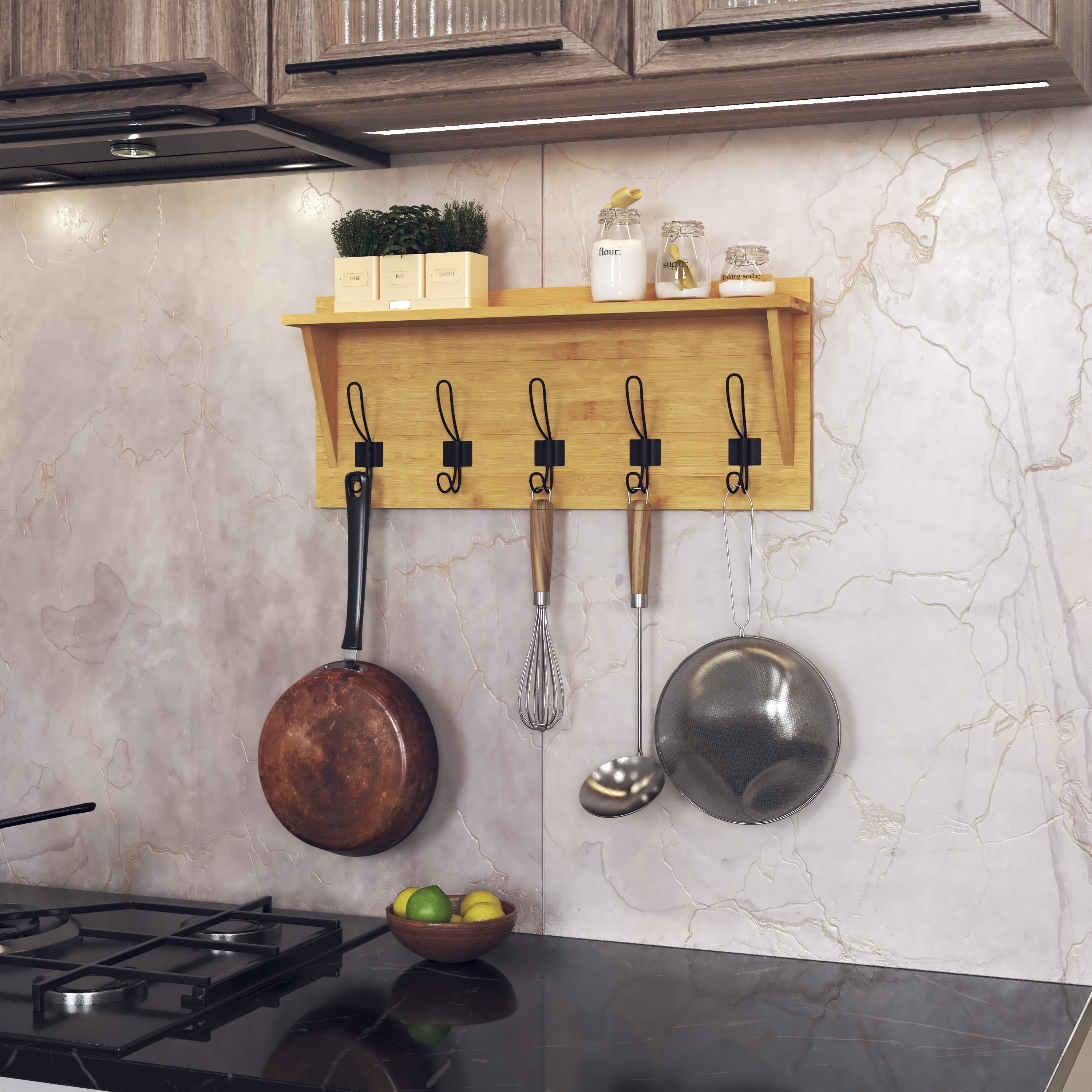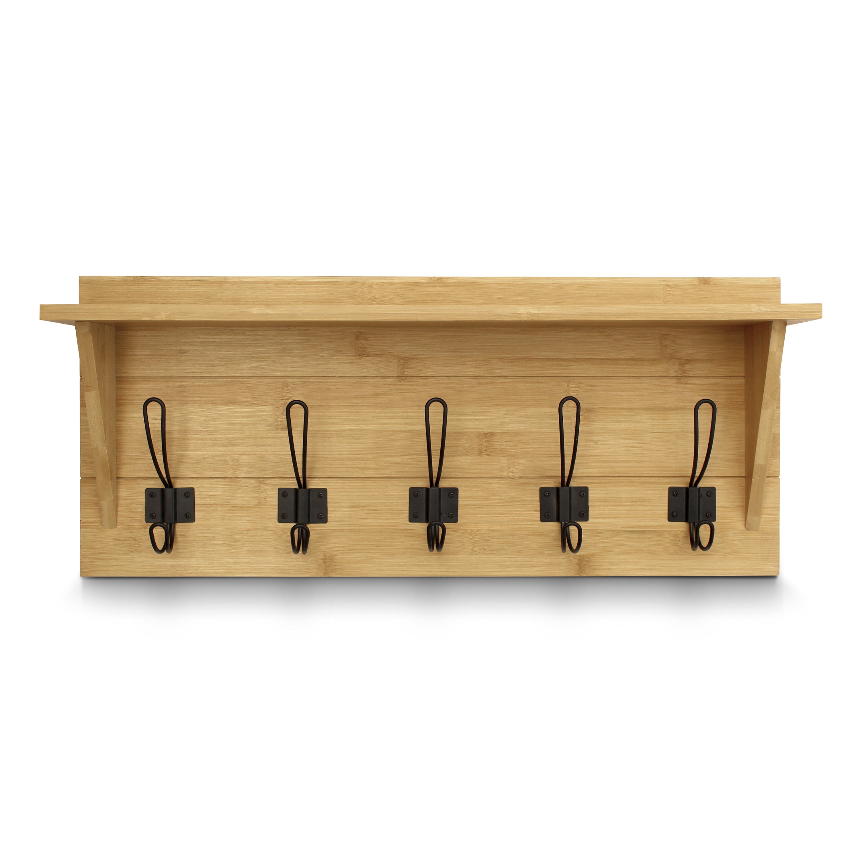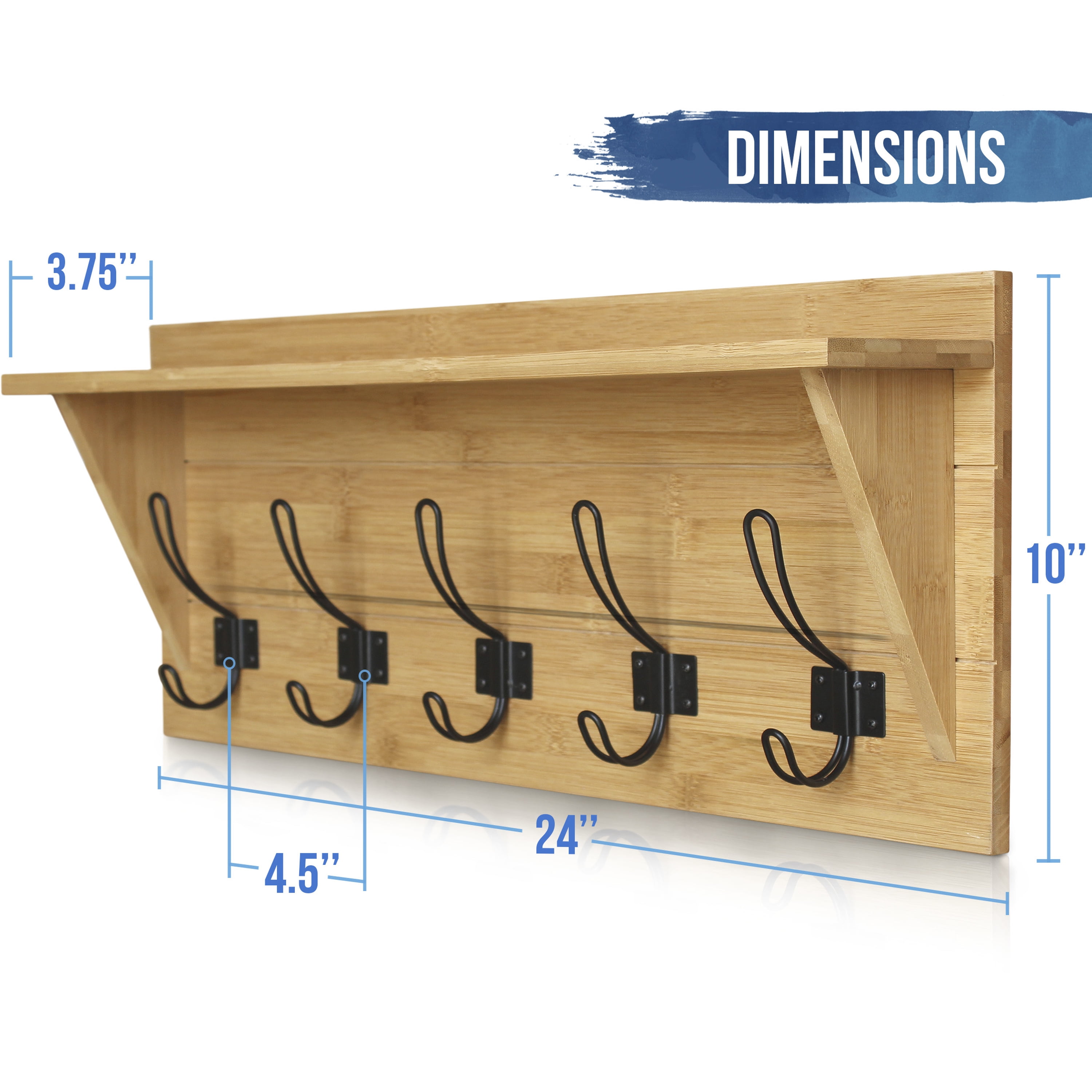 HBCY Creations Rustic Wall Mounted Coat Rack Shelf – Wooden Country Style 24″ Entryway Shelf with Hooks – Solid Pine Wood – For Entryway, Kitchen, Bathroom (Bamboo) Rustic 24 Inch Wall Mounted Coat Rack with Shelf and Hooks Bamboo Finish 5 Hooks Measure 4.5″ From Center to Center Constructed From Solid Pine Wood Hanging Hardware Packet Included No Assembly Required Ideal for Entryway, Bedroom, Kitchen, or Bathroom