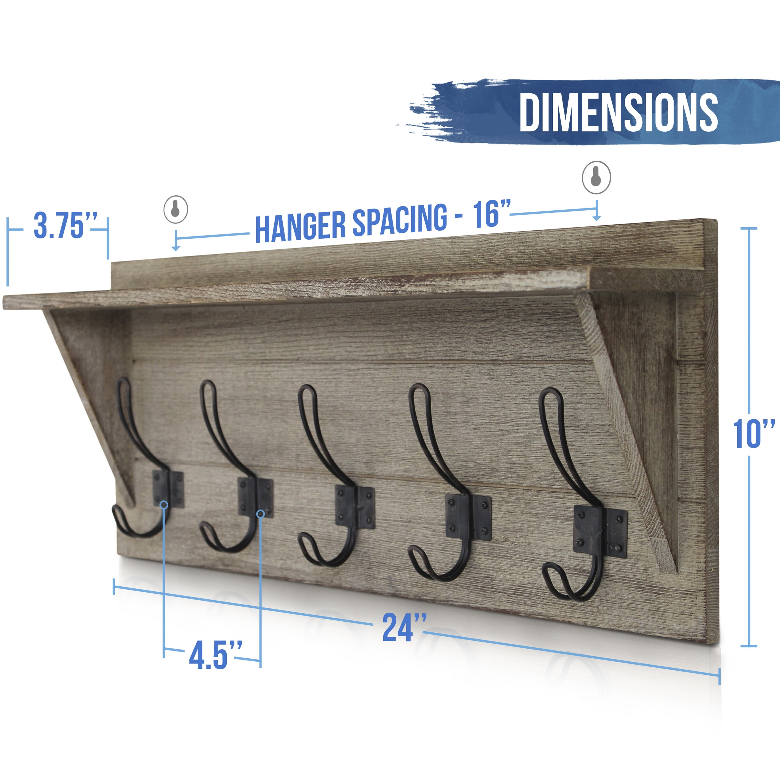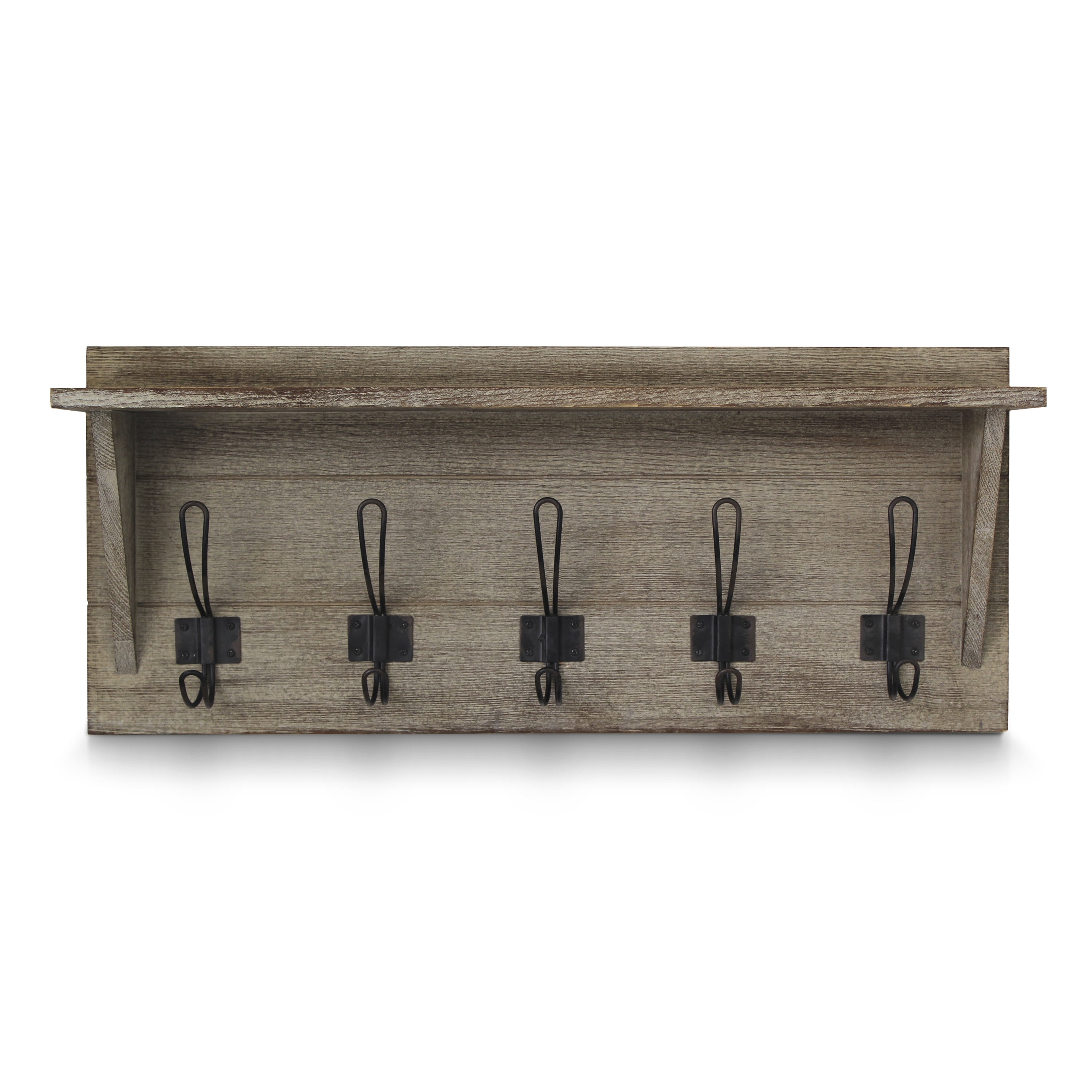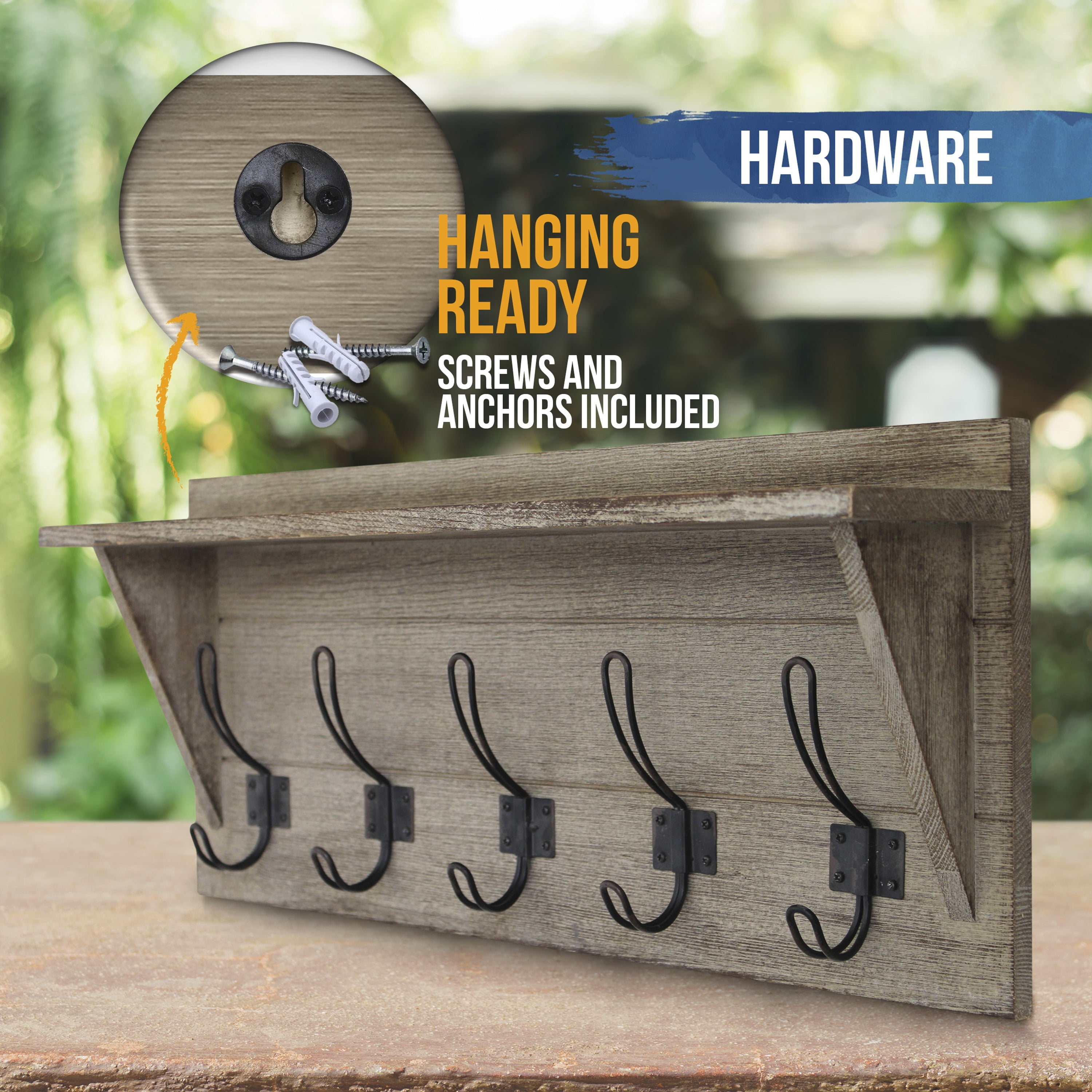HBCY Creations Rustic Wall Mounted Coat Rack Shelf – Wooden Country Style 24″ Entryway Shelf with Hooks – Solid Pine Wood – For Entryway, Kitchen, Bathroom (Rustic) Rustic 24 Inch Wall Mounted Coat Rack with Shelf and Hooks Weathered Brown Finish 5 Hooks Measure 4.5″ From Center to Center Constructed From Solid Pine Wood Hanging Hardware Packet Included No Assembly Required Ideal for Entryway, Bedroom, Kitchen, or Bathroom