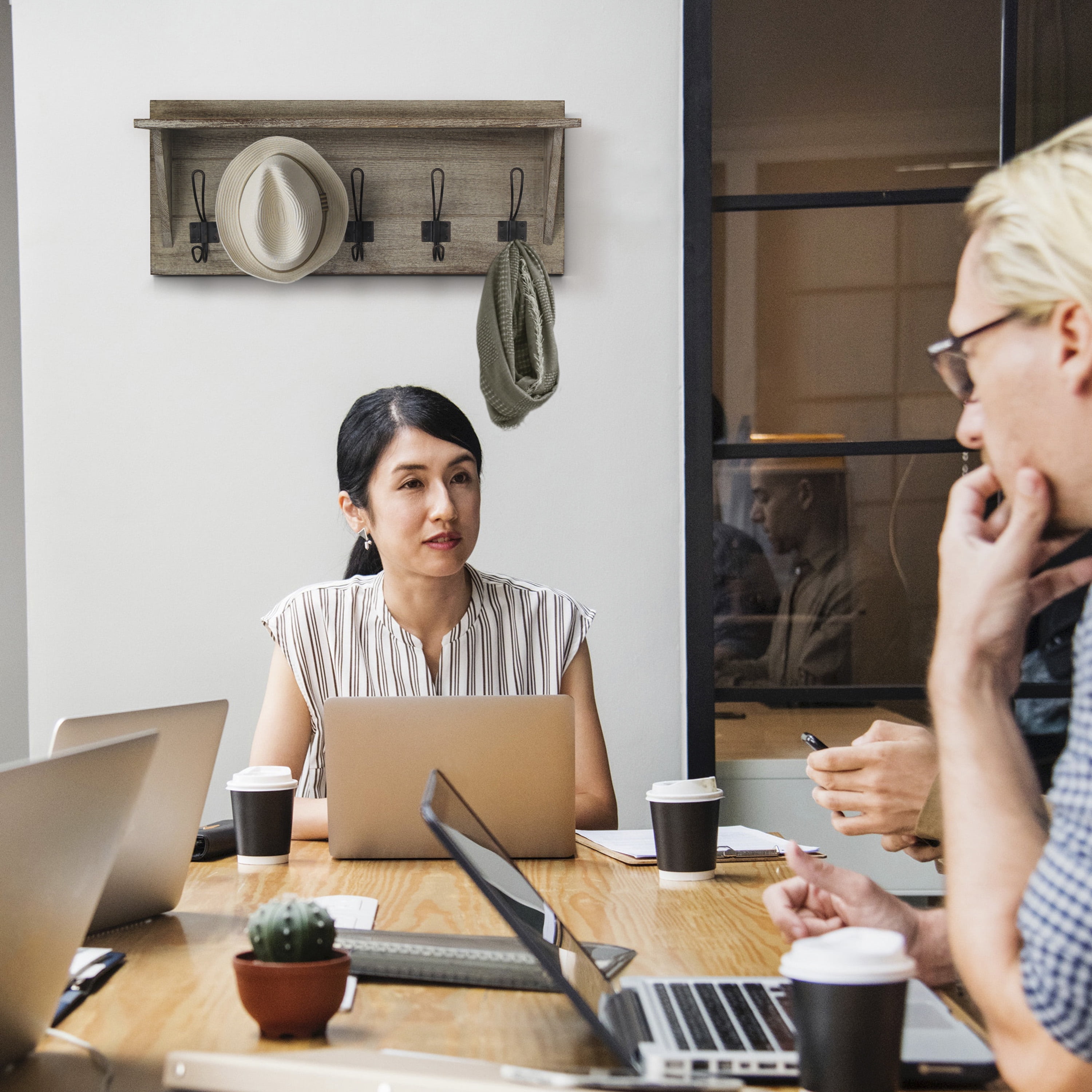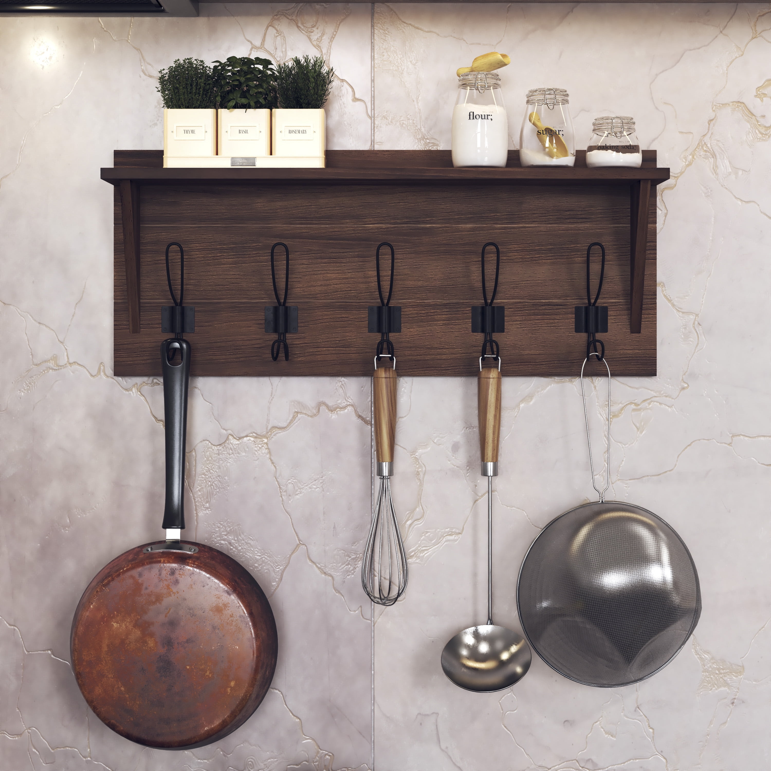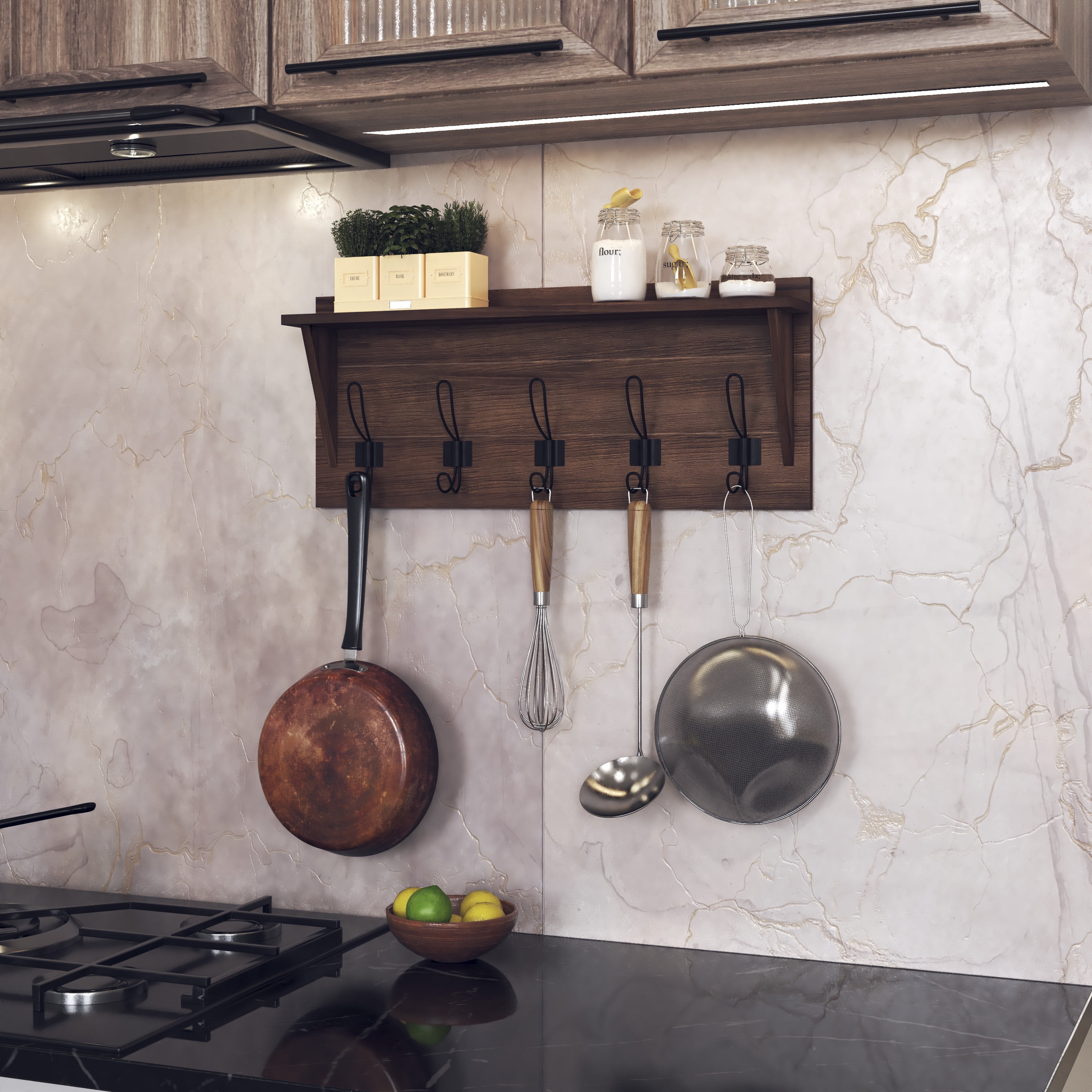 HBCY Creations Rustic Wall Mounted Coat Rack Shelf – Wooden Country Style 24″ Entryway Shelf with Hooks – Solid Pine Wood – For Entryway, Kitchen, Bathroom (Rustic) Rustic 24 Inch Wall Mounted Coat Rack with Shelf and Hooks Weathered Brown Finish 5 Hooks Measure 4.5″ From Center to Center Constructed From Solid Pine Wood Hanging Hardware Packet Included No Assembly Required Ideal for Entryway, Bedroom, Kitchen, or Bathroom