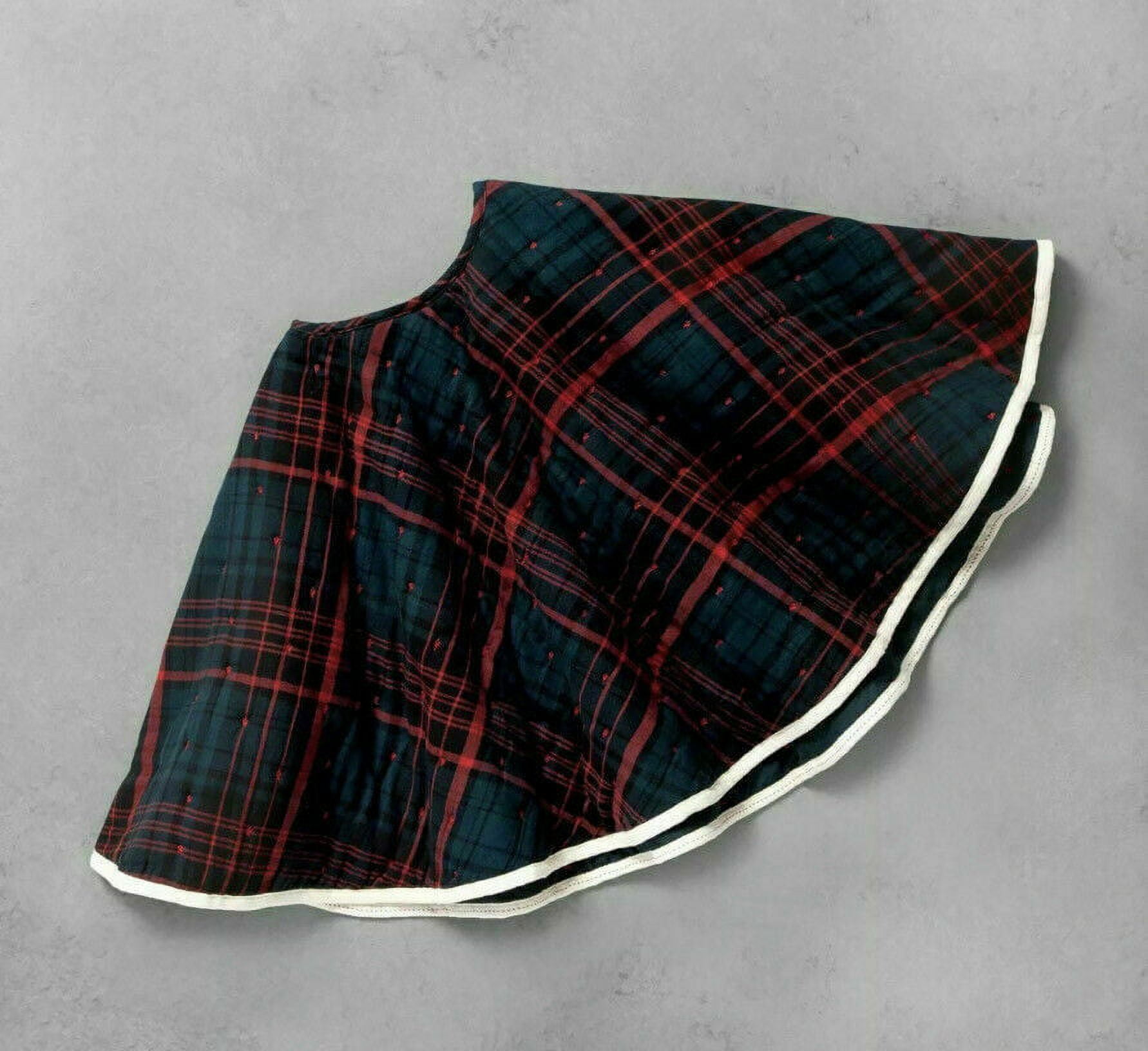 Features: Round (shape). Number of Pieces: 1. Material: Cotton. Dimensions: 52″ (L) x 52″ (W). Includes: Tree Skirt. Indoor/Outdoor: Indoor. Decorative Accents: Contrast trim. Care and Cleaning: Machine wash.