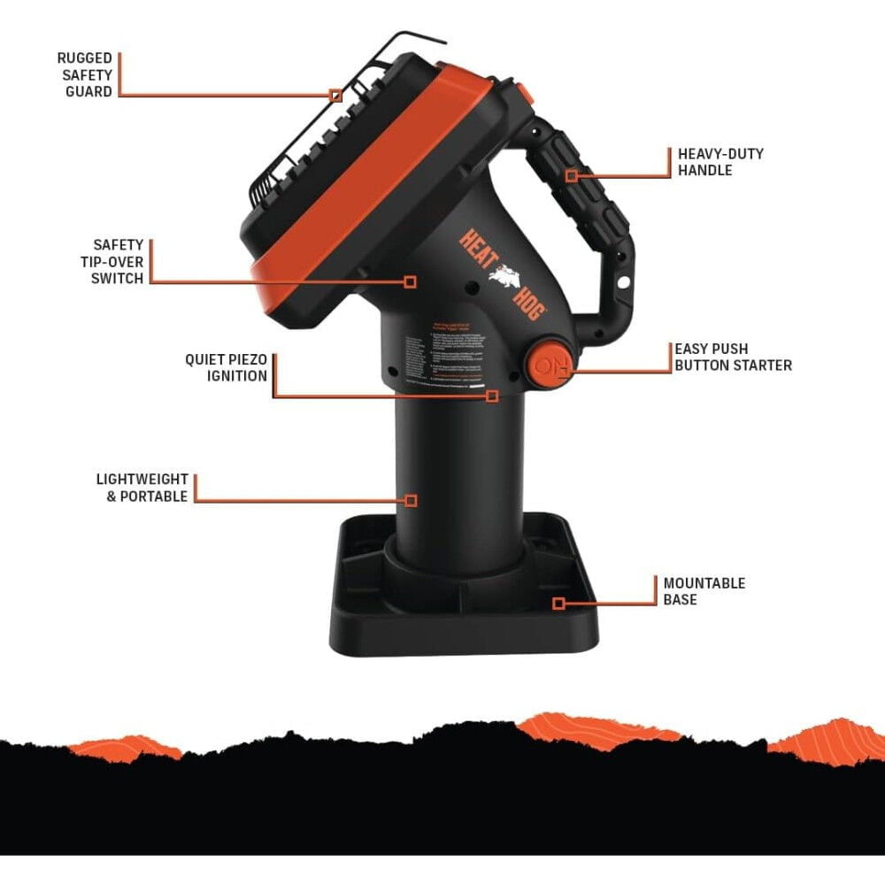 Go hog wild with the 4, 000 btu “piglet” portable propane heater from heat hog, keeping comfort and warmth compact. This durable indoor safe portable radiant space heater runs quietly on a 1lb cylinder propane tank and doesn’t require any electricity. Giving you up to 5. 3 Hours of heat per tank max, heat hog is a new breed of portable heater with features that set it apart: the fixed 45-degree angled heat head directs warmth where you need it most. Our curved plaque provides a 33 deg wider heating area than a standard portable propane heater. That means more of your herd can enjoy the heat. Ideal for your garage, camping, hunting, fishing, tailgating, and construction sites, heat hog is lightweight, odourless and your new buddy for staying warm and comfortable for any adventure. For proper base fit, cylinders with a flat metal base are suggested. Lp cylinder sizes can vary.