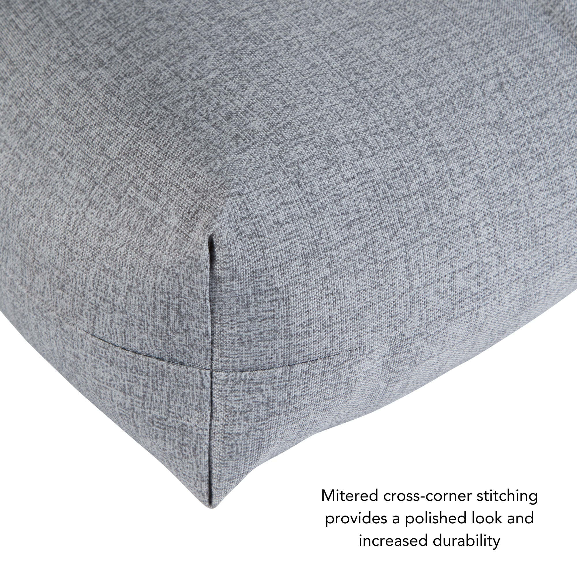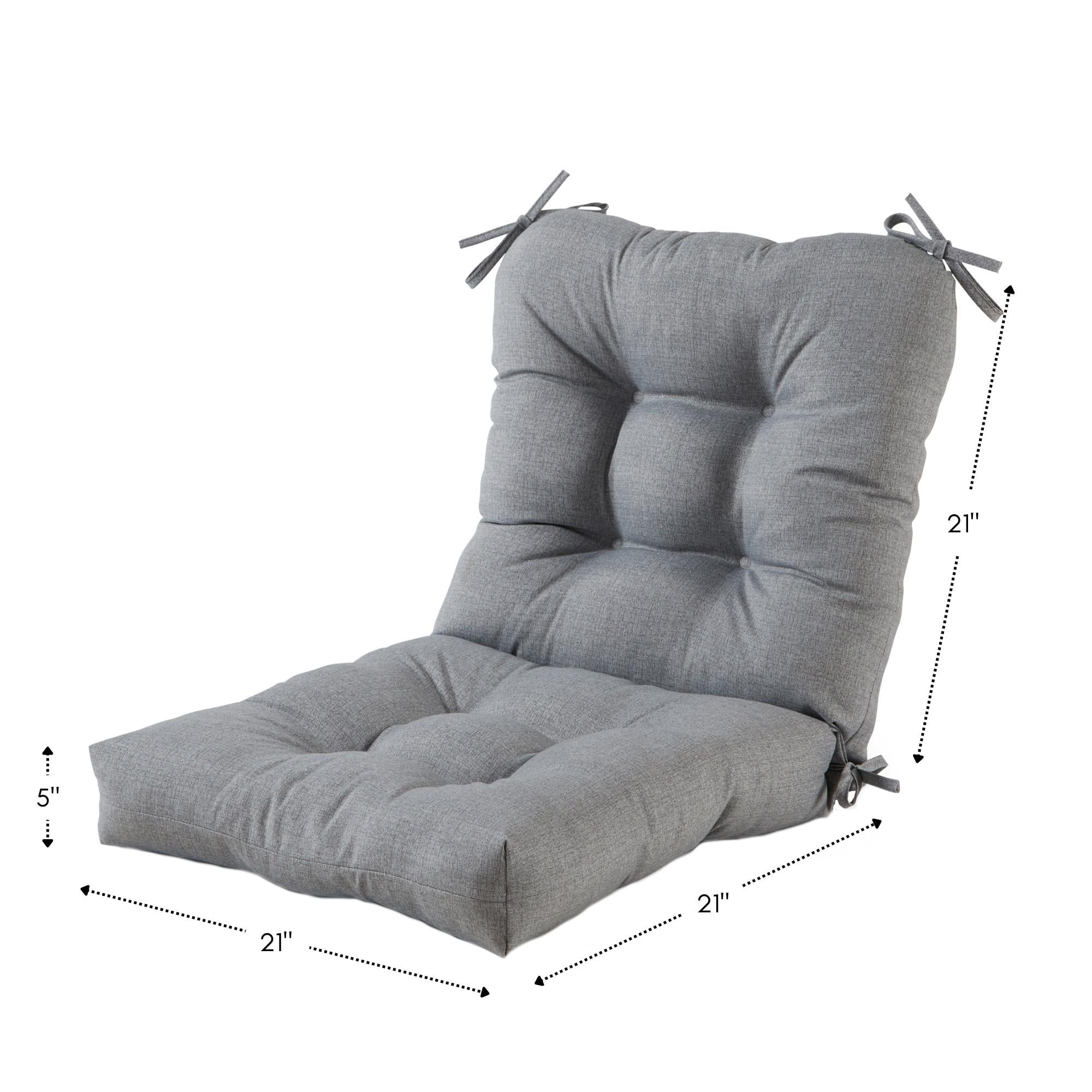 Set includes two 42 x 21 in. reversible outdoor chair cushions Solid heathered gray color Made from durable outdoor 100% polyester fabric Water, stain, fade and mildew resistant Soft polyfiber fill made from 100% recycled, post-consumer plastic bottles Plush, overstuffed construction for extra comfort and longevity For best results, and to extend the life of your cushions store covered when not in use Cushion dimensions are +/- 2 inches. Please note product will arrive in a slightly compressed state; please allow a few days for product to expand to final size listed in description Furniture shown in images is not included with purchase Please measure your furniture before purchase to ensure cushion fits properly