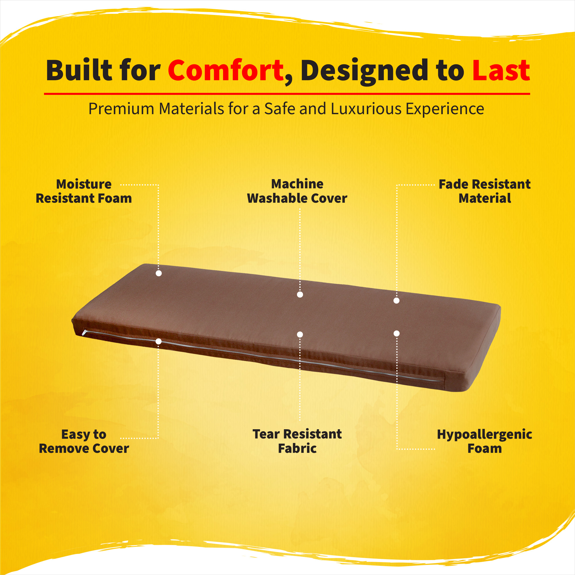 Made with superior fade and tear resistant marine grade polyester fabric Mildew and moisture resistant foam – built-in protection from mold or fungus Durable high performance, fast-drying fabric Easy to clean machine washable cover with quality zipper Measures 43-in L x 16-in D x 3-in H Available in Brown
