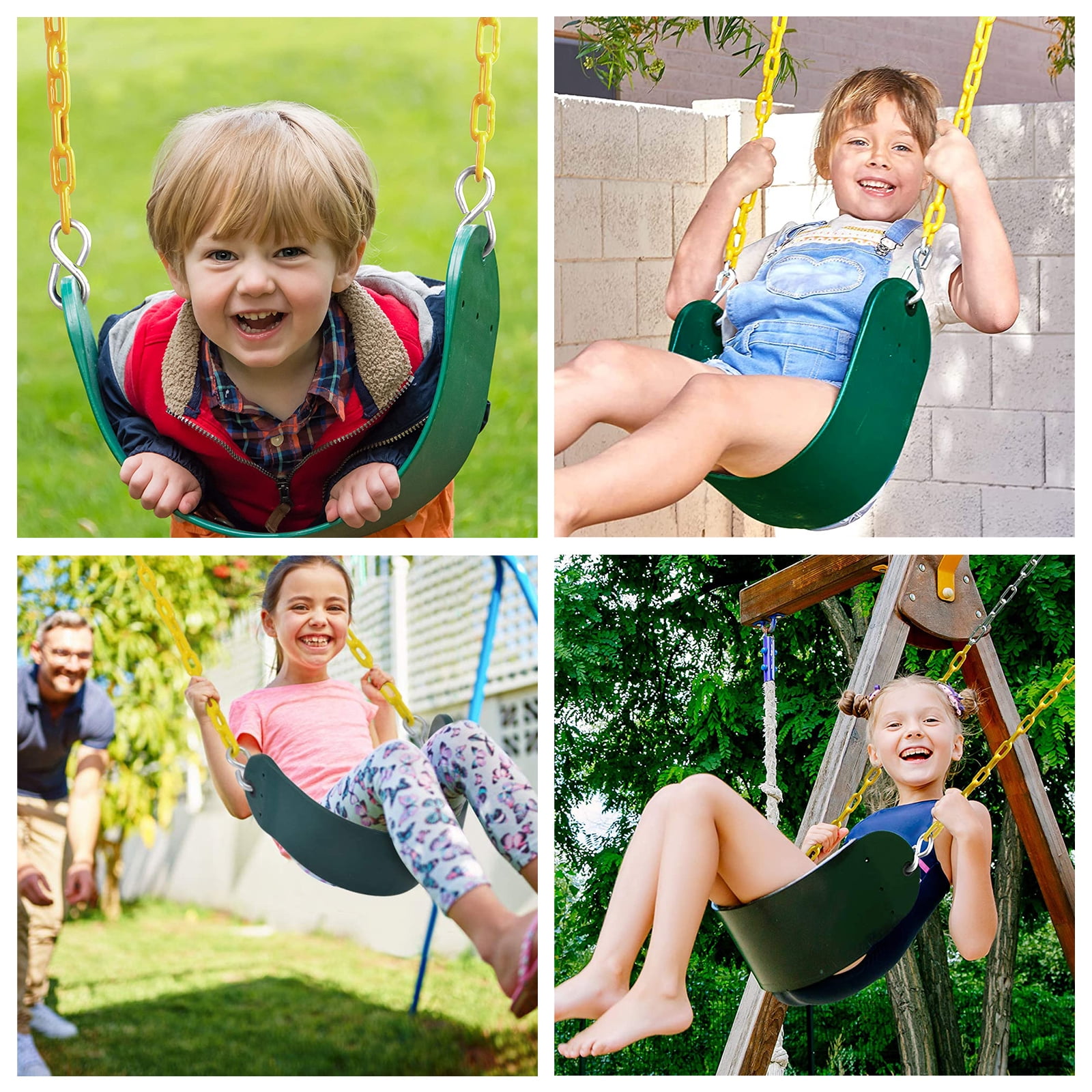 The elastic swing seat outdoor swing designed for dynamic active outdoor play.This durable swing has been extensively tested and can hold up to 660 lbs, this swing seat is perfect for use from ages 3 and up and adds a touch of traditional fun to your park, tree, garden, warehouse,The swing seat is equipped with 2 hooks and 2 galvanized chains. and the High Back Toddler Bucket swing seat is perfect for use from ages 0.5 and up and adds a touch of traditional fun to your park, tree, garden, warehouse,The wooden swing seat is equipped with 2 hooks and 2 galvanized chains. Quick and easy assembly, which is basically suitable for most masts.