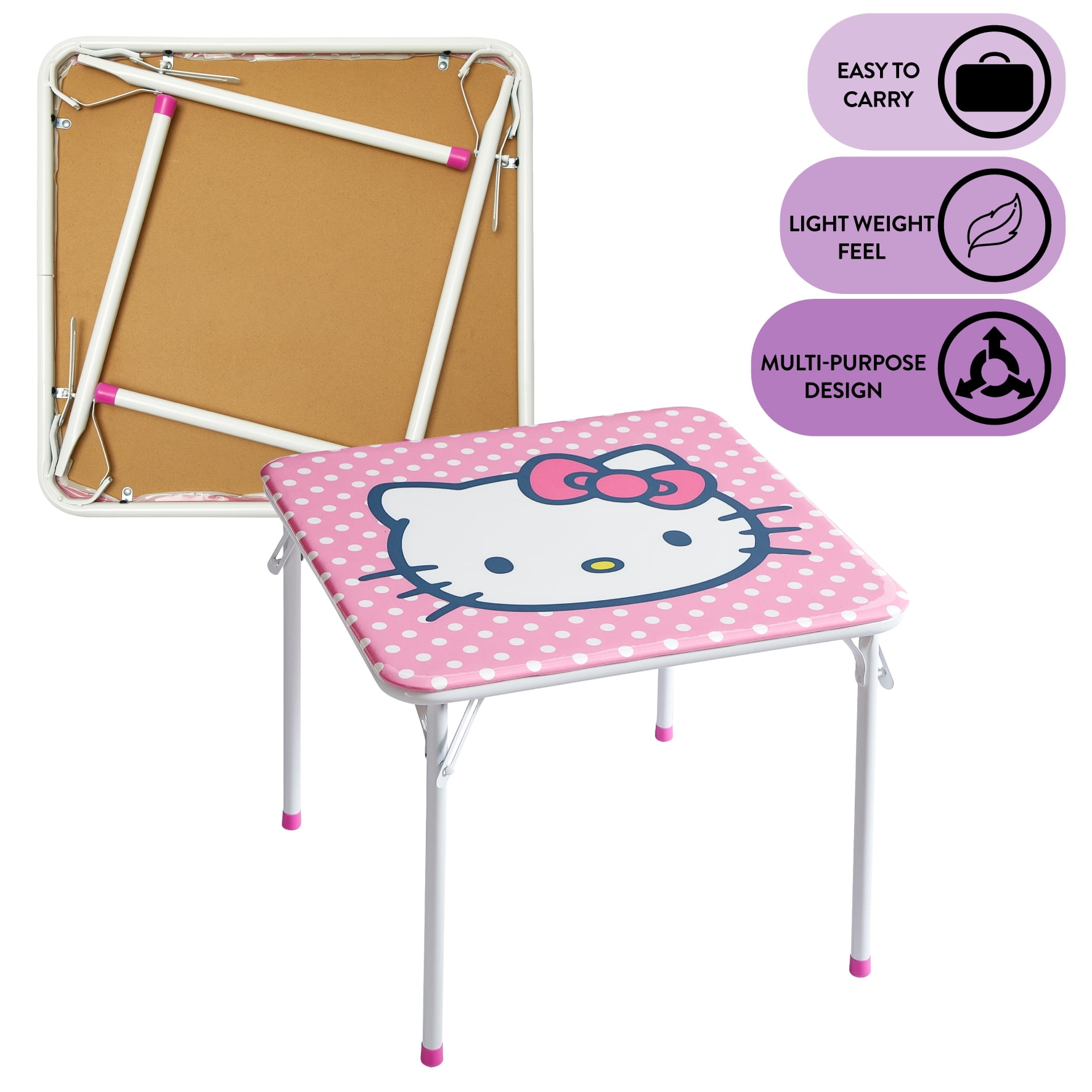 Introducing the charming Hello Kitty Child’s Table and Chair Set, perfect for your little one’s playtime or study corner! This delightful set includes one table and two chairs, each adorned with adorable Hello Kitty motifs to bring joy to any room. The table measures a convenient 20 x 20 x 16.4 inches, providing ample space for activities or snacks, while the chairs offer cozy seating at 12.5 x 19 inches each. Crafted with durability and safety in mind, this set is made from sturdy materials to withstand energetic play and everyday use. Whether it’s for coloring, tea parties, or homework sessions, the Hello Kitty Child’s Table and Chair Set adds a touch of whimsy and functionality to any child’s space, making it a delightful addition to your home or playroom.