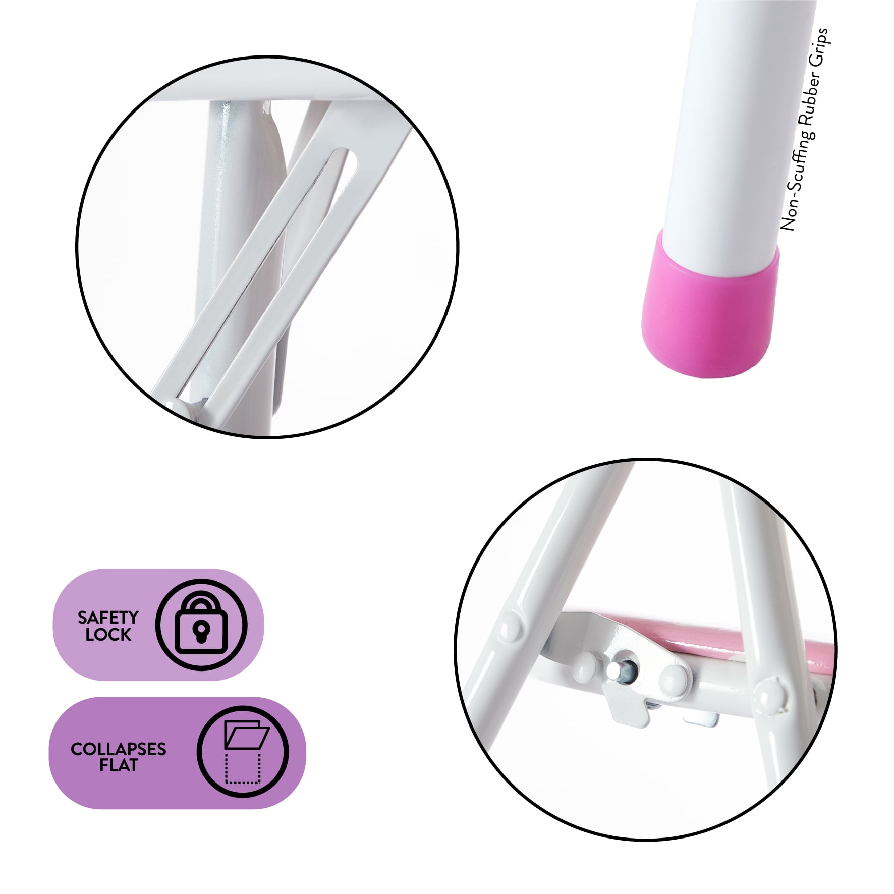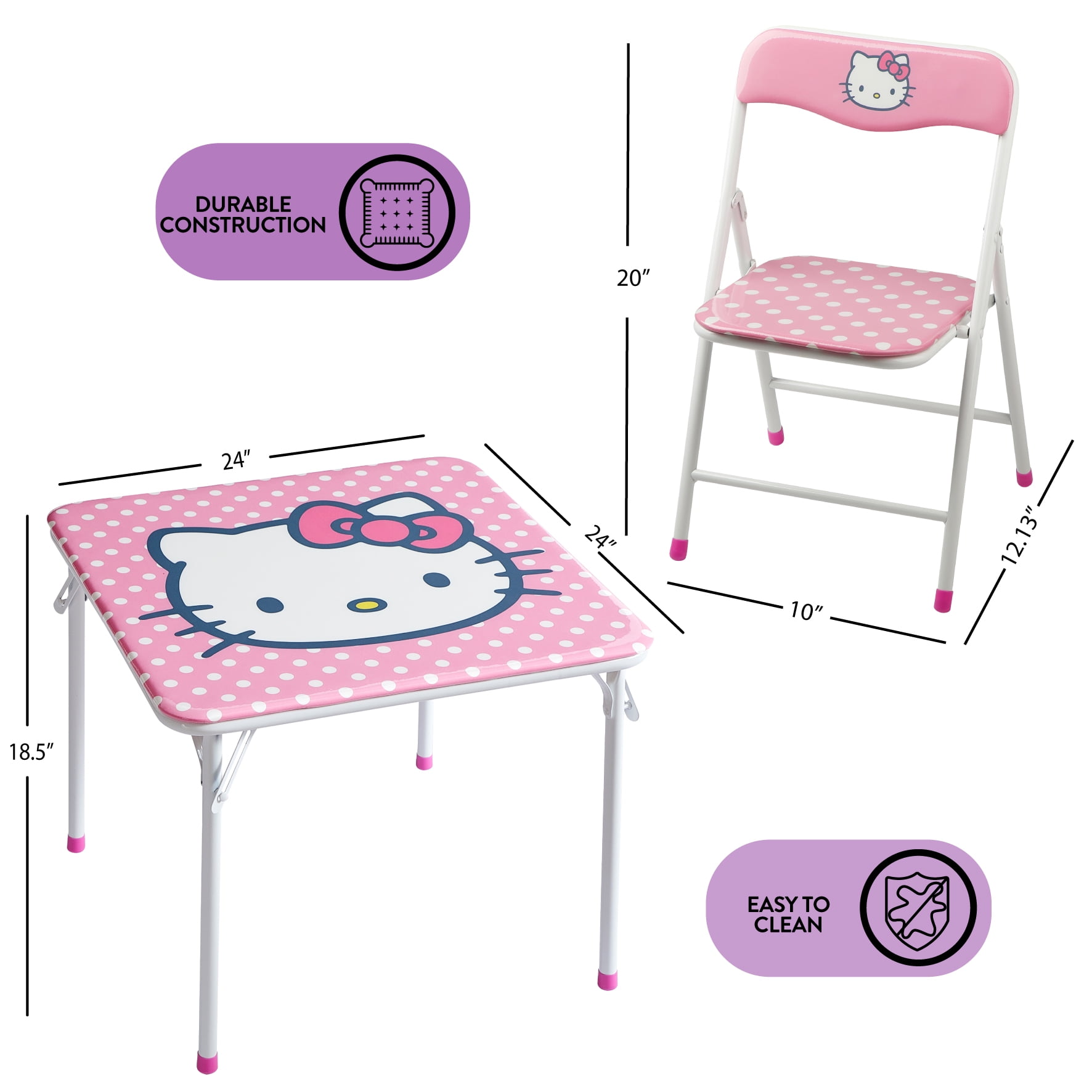 Adorable Hello Kitty Design: This table and chair set features charming Hello Kitty motifs, adding a delightful touch of cuteness to any child’s space and sparking their imagination during playtime or study sessions. Compact and Space-Saving Design: With dimensions of 20 x 20 x 16.4 inches for the table and 12.5 x 19 inches for each chair, this set is perfectly sized for young children while also being compact enough to fit in smaller playrooms or bedrooms, optimizing space without compromising on functionality or comfort. Material 1: PVC Padded Material 2: Metal Material 3: Rubber