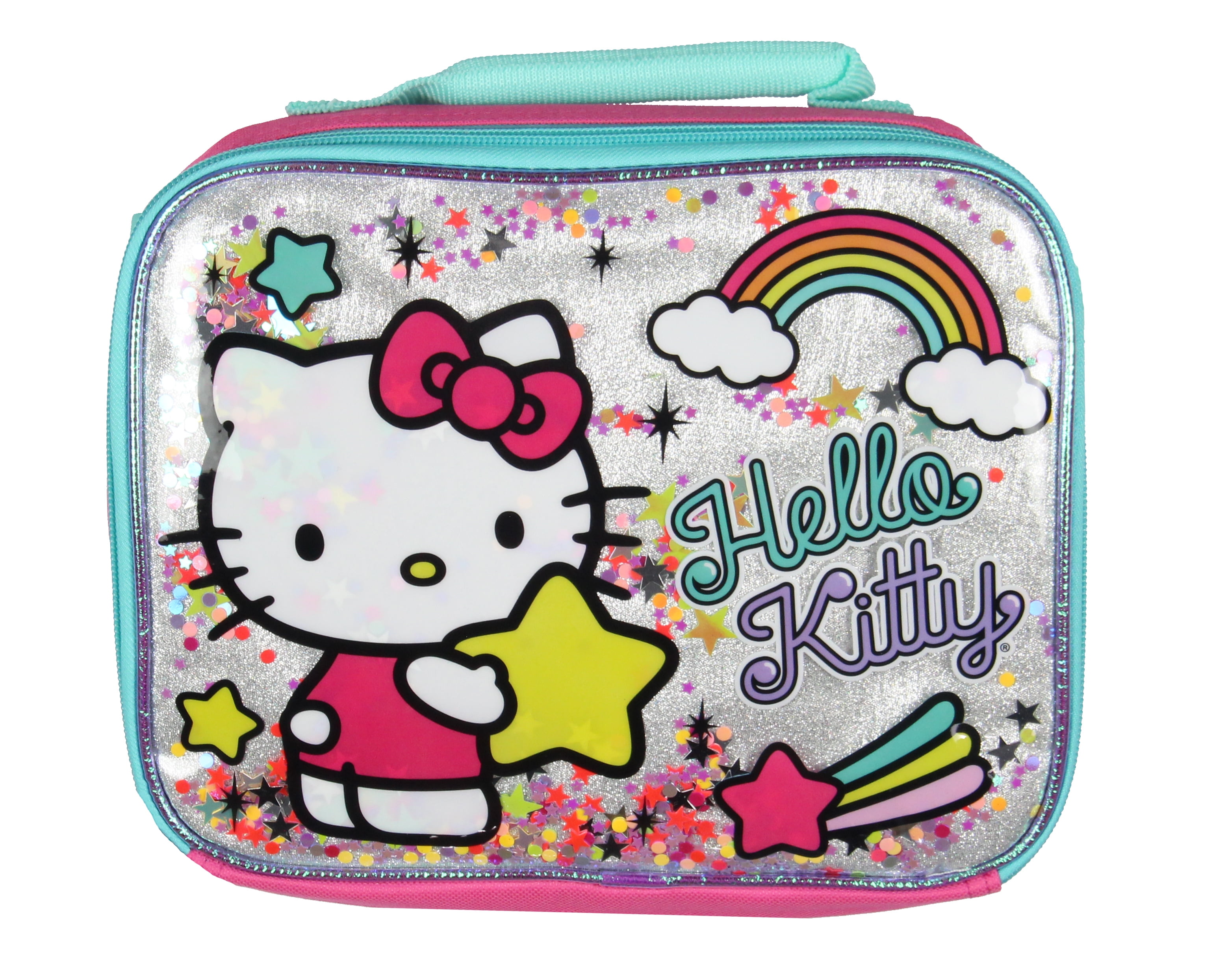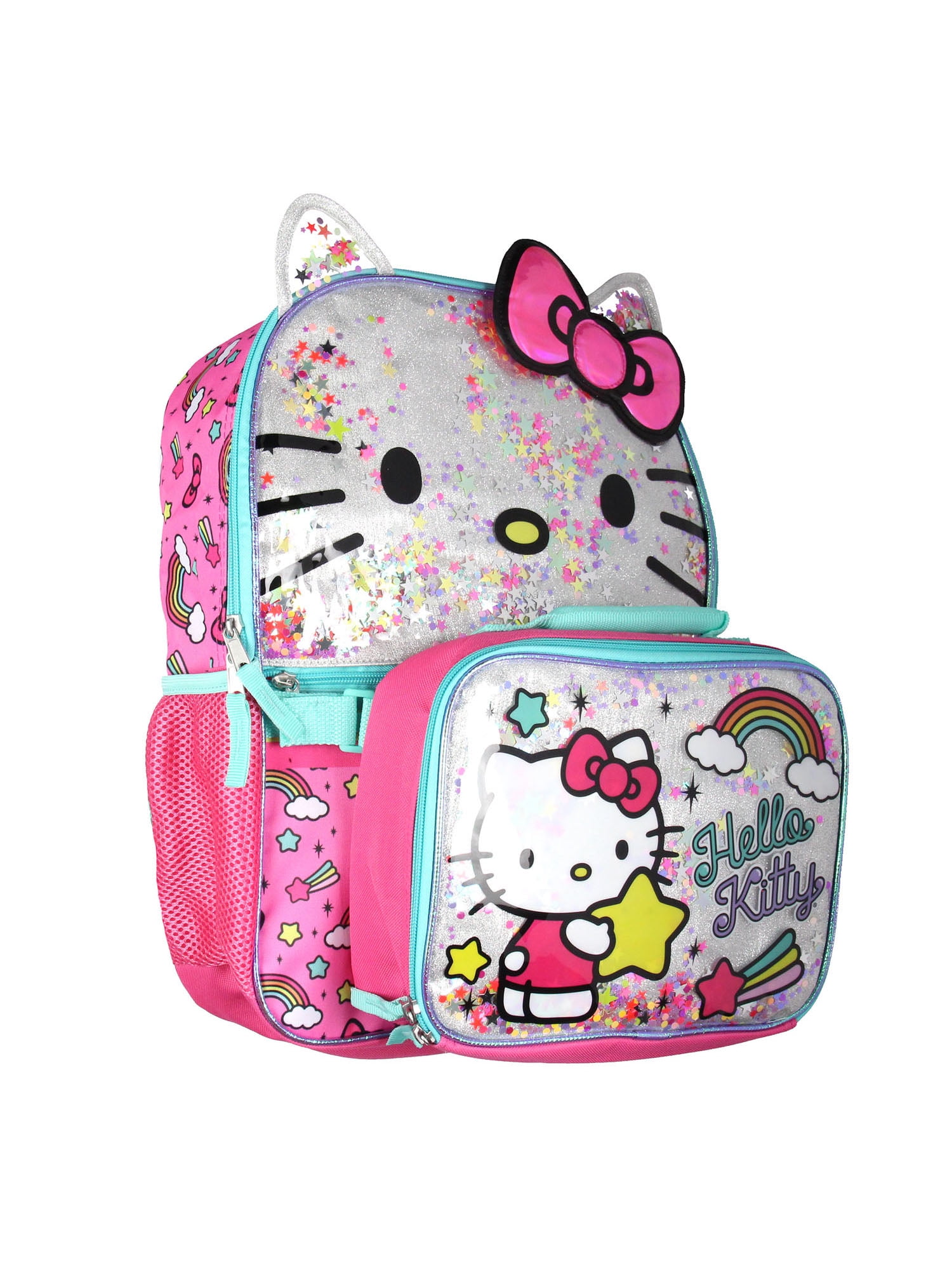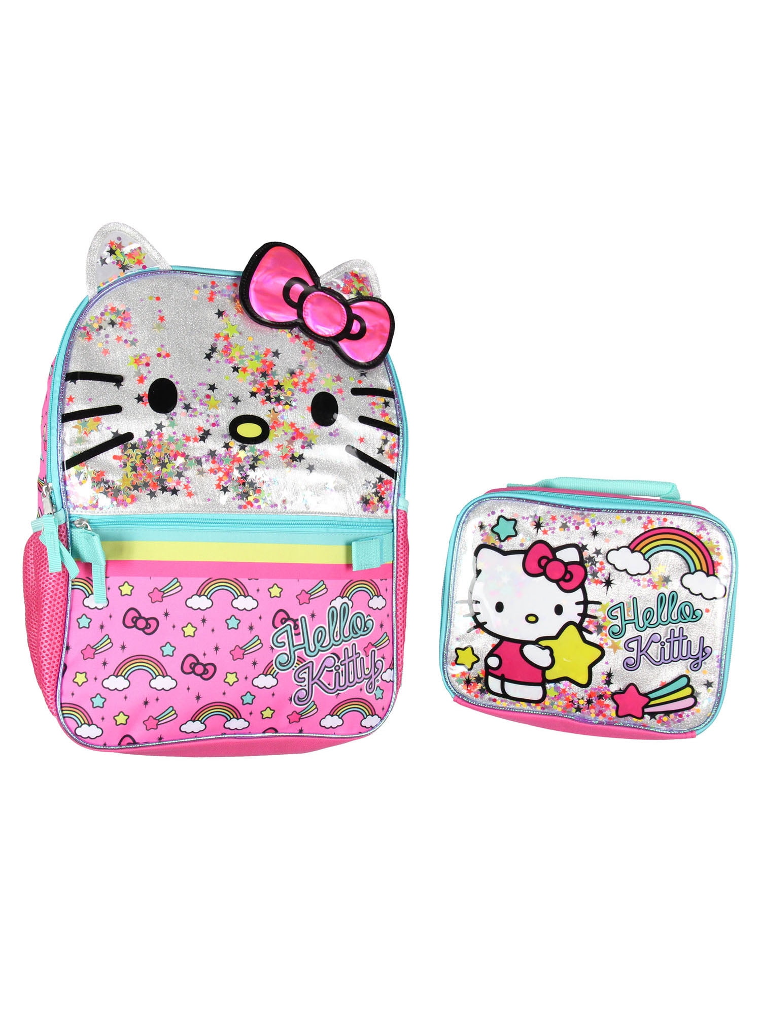 Hello Kitty Glitter 2 Piece School Travel Backpack Set For Girls With Detachable Insulated Lunch Box