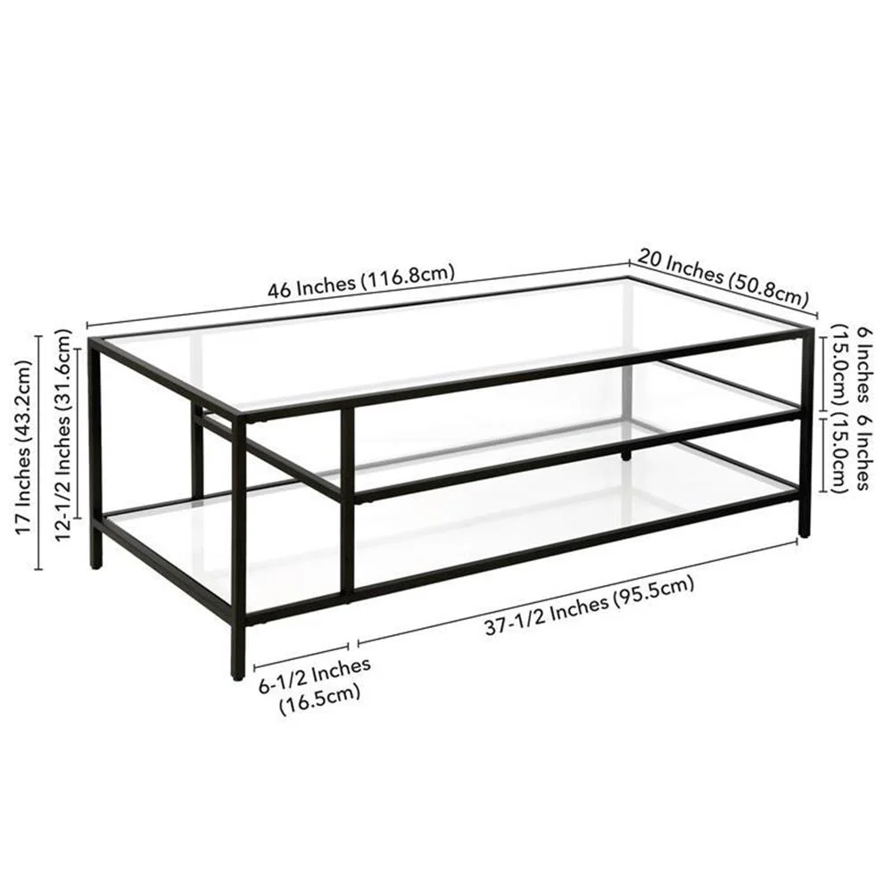 Henn&Hart Black Bronze Coffee Table with Glass Shelves