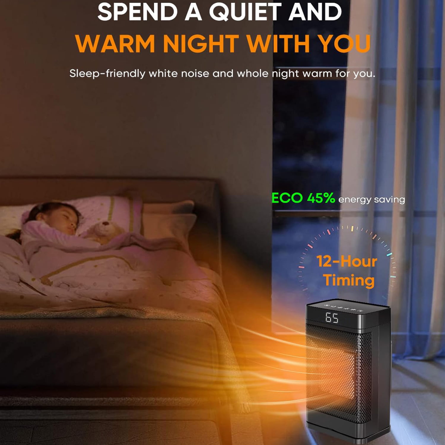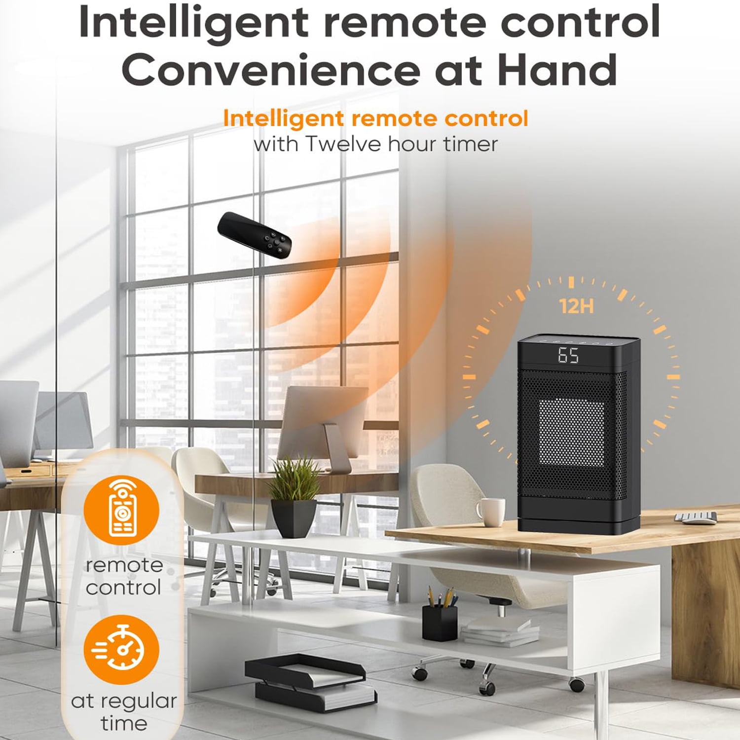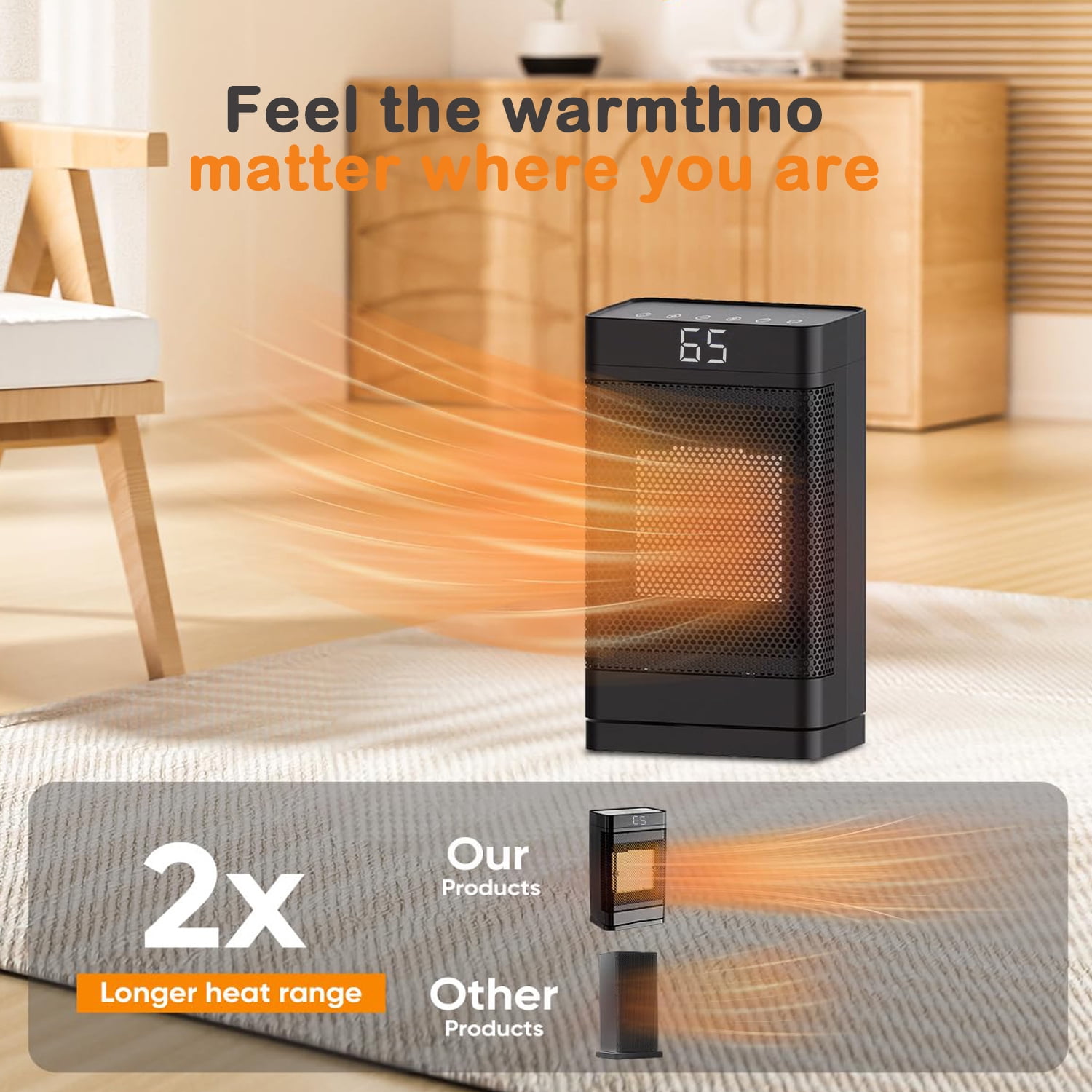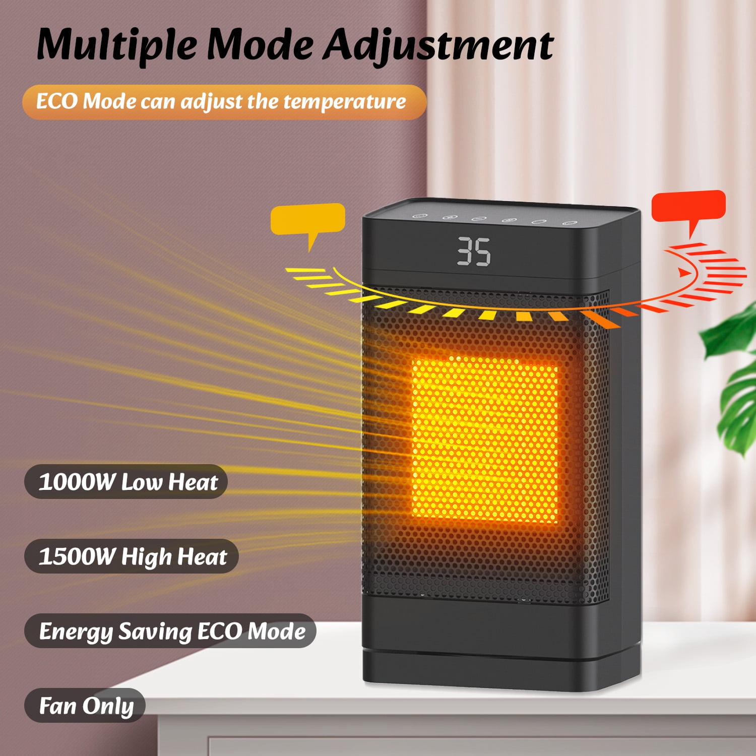 ??Key Features ??Highlights: High efficiency and energy saving: 1500W PTC technology, rapid heating and automatic power adjustment, energy saving and power saving. Intelligent remote control: Equipped with a remote control, 70° automatic oscillation and three-speed adjustment, easy to operate. Safe constant temperature: Built-in thermostat and 1-12 hour timer to ensure safe use and avoid overheating. ??Product parameter: Color:Black Room Type:Bedroom, Home Office, Study Room Voltage:110V Heat Output:1500 Watts Oscillation Sweeps: 70° wide-angle Heating Coverage: 200 sq.ft Digital Thermostat: 59 to 95 ℉ Working Sound: Below 40 db Timing Setting: 1-12 hours Product Dimensions:5.91″L X 4.13″W X 10.7″H Indoor/Outdoor Usage:Indoor Power Source:Corded Electric Heating Method:Fan & Forced air, PTC Ceramic Special Feature:Flame Resistant,Built-in Tip-Over Protection, LED Digital Display, Remote multi-function remote control Color:Black Room Type:Bedroom, Home Office, Study Room Voltage:110V Heat Output:1500 Watts Oscillation Sweeps: 70° wide-angle Heating Coverage: 200 sq.ft Digital Thermostat: 59 to 95 ℉ Working Sound: Below 40 db Timing Setting: 1-12 hours Product Dimensions:5.91″L X 4.13″W X 10.7″H Indoor/Outdoor Usage:Indoor Power Source:Corded Electric Heating Method:Fan & Forced air, PTC Ceramic Special Feature:Flame Resistant,Built-in Tip-Over Protection, LED Digital Display, Remote multi-function remote control ??Package Content: 1 x Space Heater 1 x Remote Controls 1 x Color box 1 x User manual 1 x Space Heater 1 x Remote Controls 1 x Color box 1 x User manual