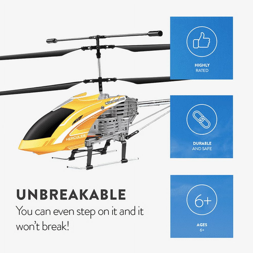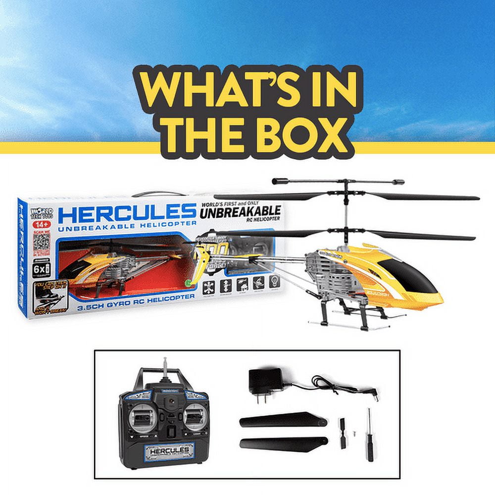 Introducing the GYRO Hercules 3.5CH RC Helicopter! The WORLD’S FIRST AND ONLY UNBREAKABLE RC HELICOPTER. This RC helicopter has super strong polymer frame. The Helicopter’s body can take up to 200 pounds of force! You can even step on it and it won’t break. This awesome Helicopter comes with the greatest advancement in Helicopter Technology, a Gyro! No more crashing, no more replacing parts, the GYRO has changed the Helicopter industry completely, making this RC Helicopter super easy to fly. Great for people of all skill levels, this bad boy features a coaxial rotor a single rear rotor for precise movement and a GYRO for increased stability whether flying or hovering. Controlling the Hercules is a breeze. It can go forward, backward, up, down, left, right and hover. What really makes the GYRO Hercules stand out is the built in gyroscope making it automatically stabilize allowing you to focus on flying instead of trying not to make it crash. This product is ready to fly, there is no assembly required. Just put in 6 AA batteries into the transmitter and charge the helicopter’s rechargeable battery with the included wall charger and you are good to go! Be the coolest kid on the block by getting the GYRO Hercules Unbreakable 3.5CH RC Helicopter!
