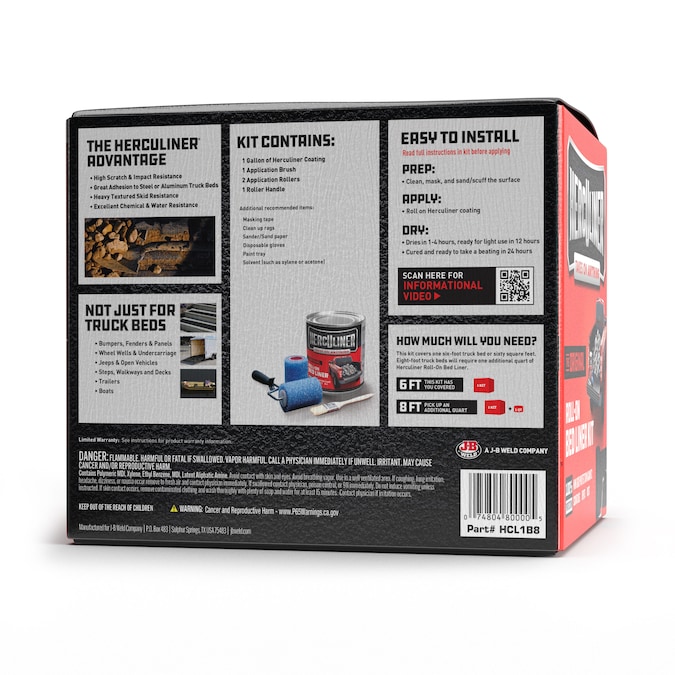 Herculiner is the original do-it-yourself brush-on bed liner kit. In three easy steps a truck bed can be covered with a tough, textured polyurethane coating just like professional spray-on liners. It prevents rust and won’t chip, flake or peel. Herculiner can be applied to many different types of surfaces, such as concrete, plastic, rubber, metal, wood or fiberglass.