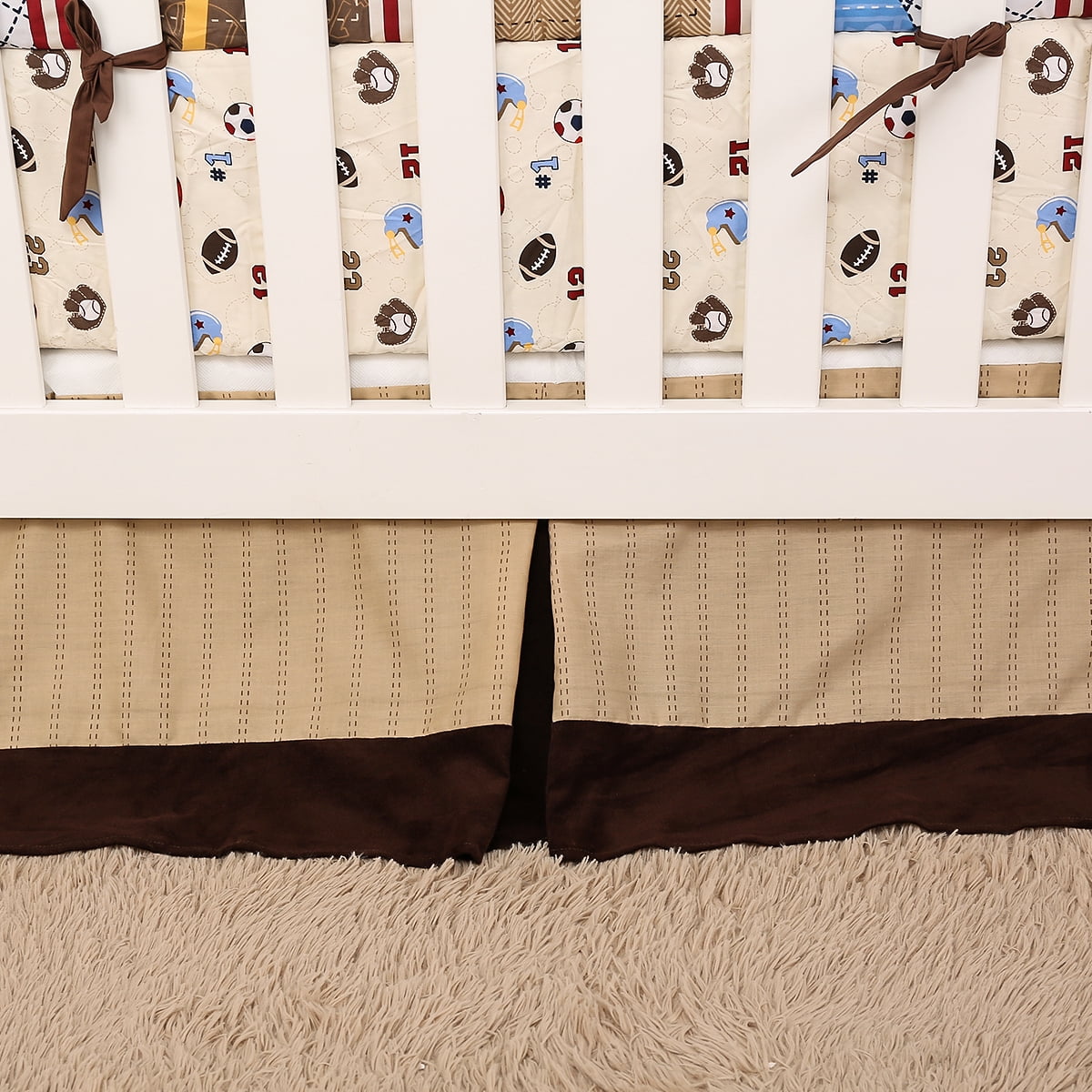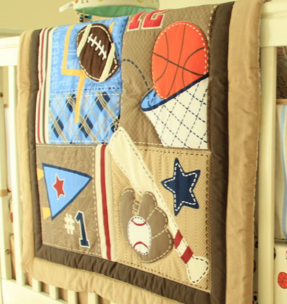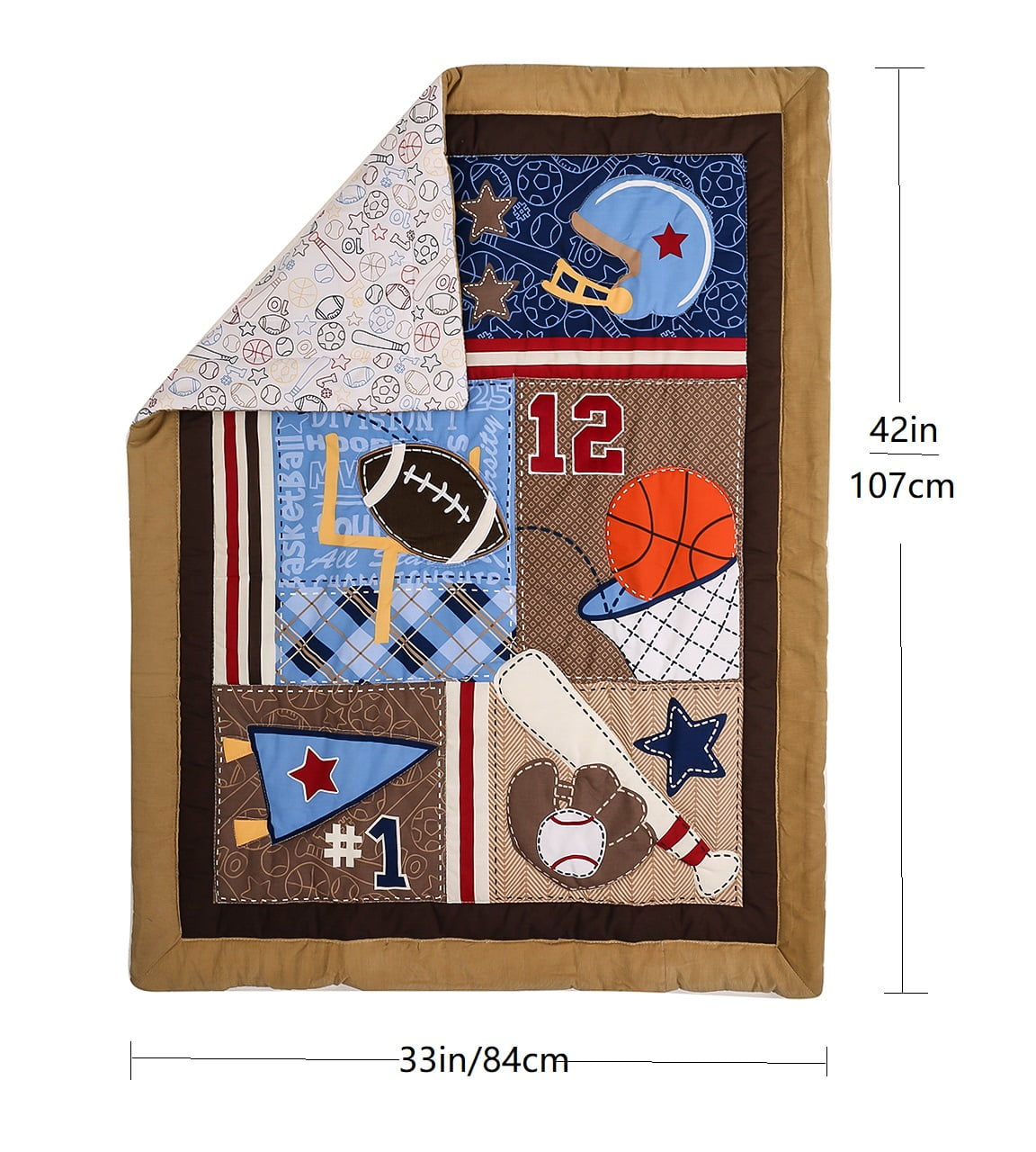 Sport Dreams 2-Piece Crib Bedding Set, Brown/Grey, 2 Piece (quilt and crib sheet, come with a dust ruffle as a gift)