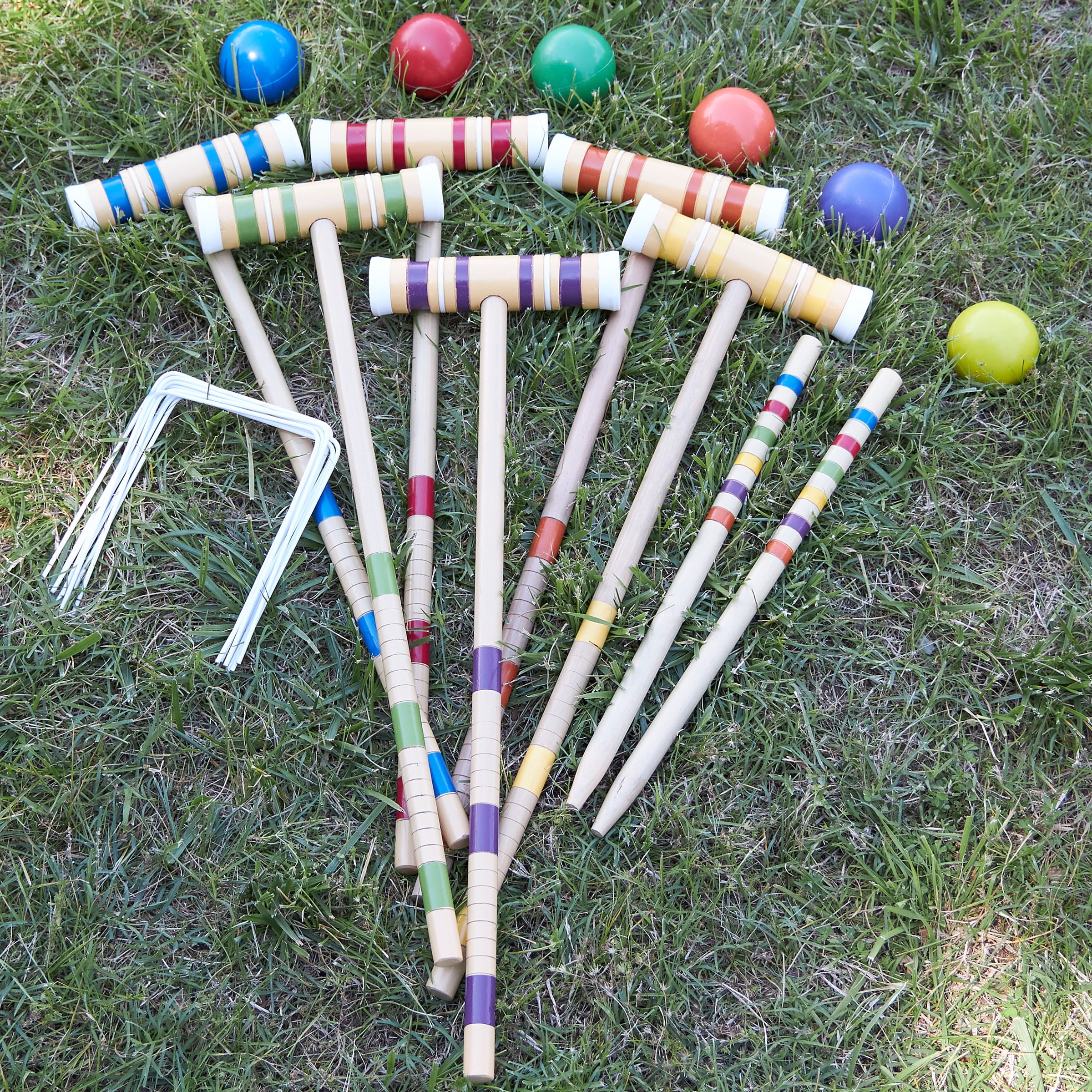 Hey Play 6-Player Croquet Set with Wood Mallets, Balls, Posts, and Wickets