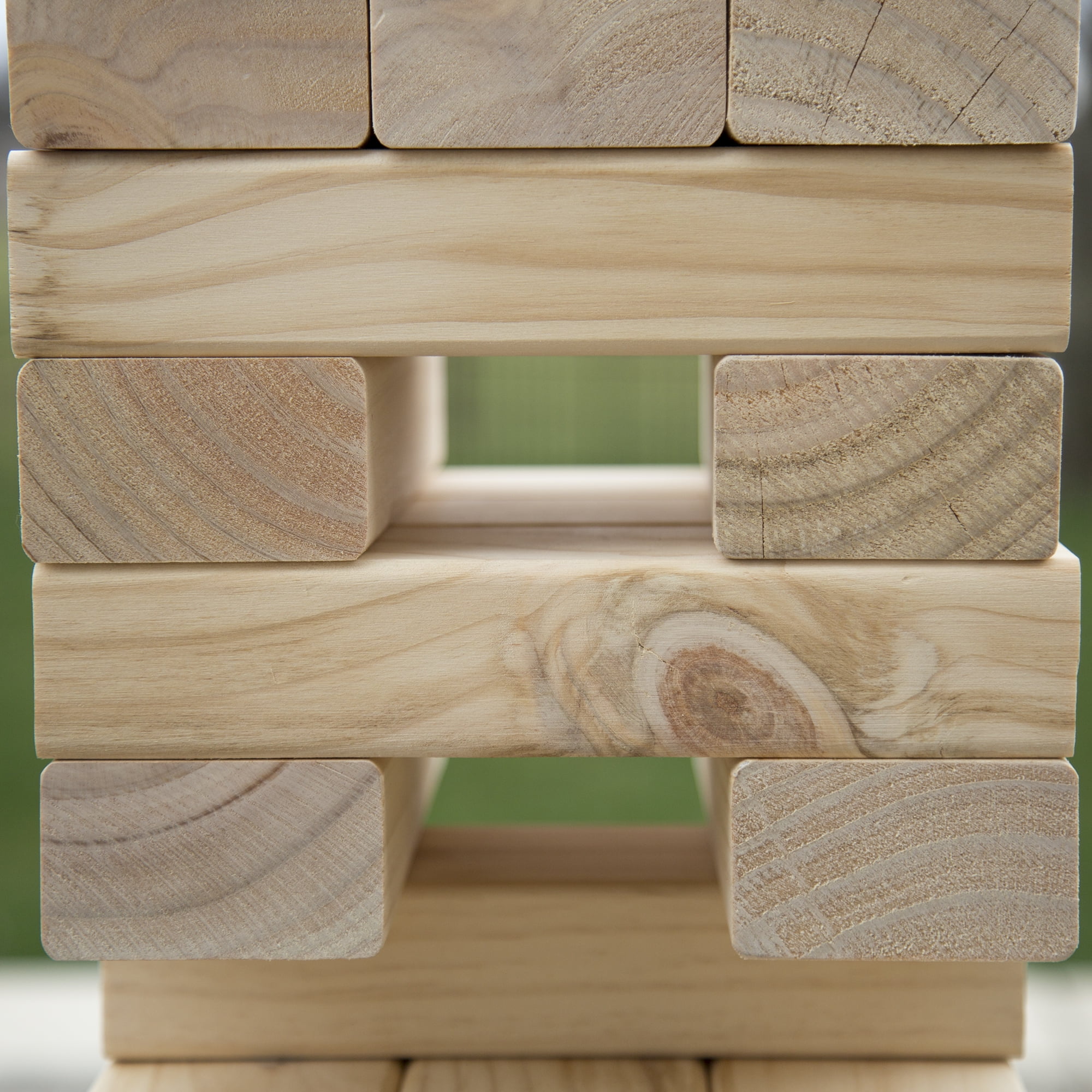 LARGE OUTDOOR GAMES – Due to the size of the giant blocks, this giant tumbling tower makes this a truly jumbo yard game compared to other stacking games. HAND-CRAFTED PINEWOOD – Each wooden block is hand-crafted out of pinewood and are solid with smooth edges, making them easy to stack for the whole family. NYLON CARRYING CASE – To make storage and transport of these jumbo blocks simple, a strong nylon bag is included, so you can take the game to the beach, park, or on a picnic. GREAT GIFT – These outdoor yard games make fantastic gifts for birthdays, engagements, weddings, housewarmings, holidays, or any occasion. MATERIALS – Wood and Nylon. DIMENSIONS – Each Block: (L) 9″ x (W) 3″ x (H) 1.75″.