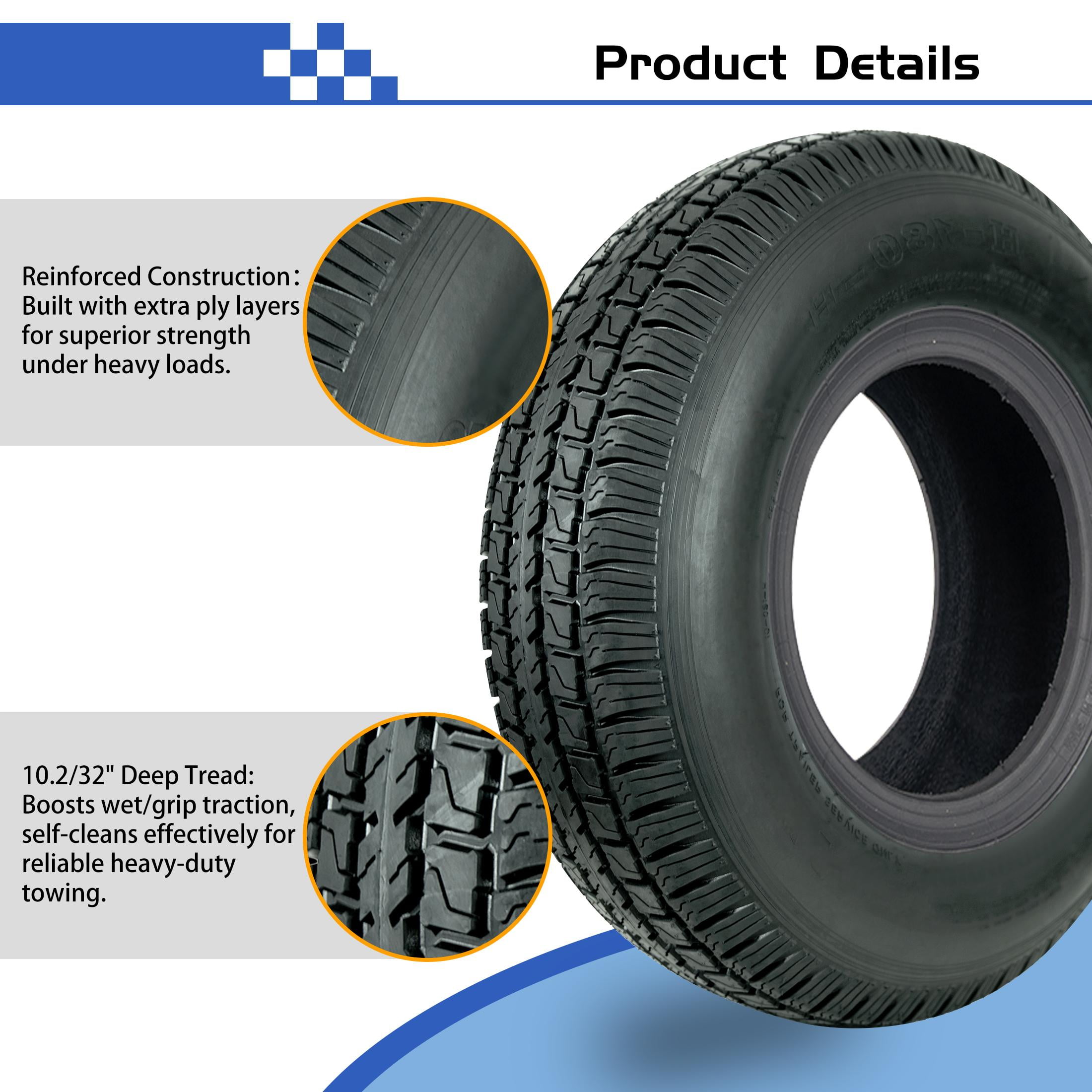 - Features: Size: 225/75D15, Season: All-Season, Performance: Highway, Car Type: Trailer, Load Range: D (8 Ply)