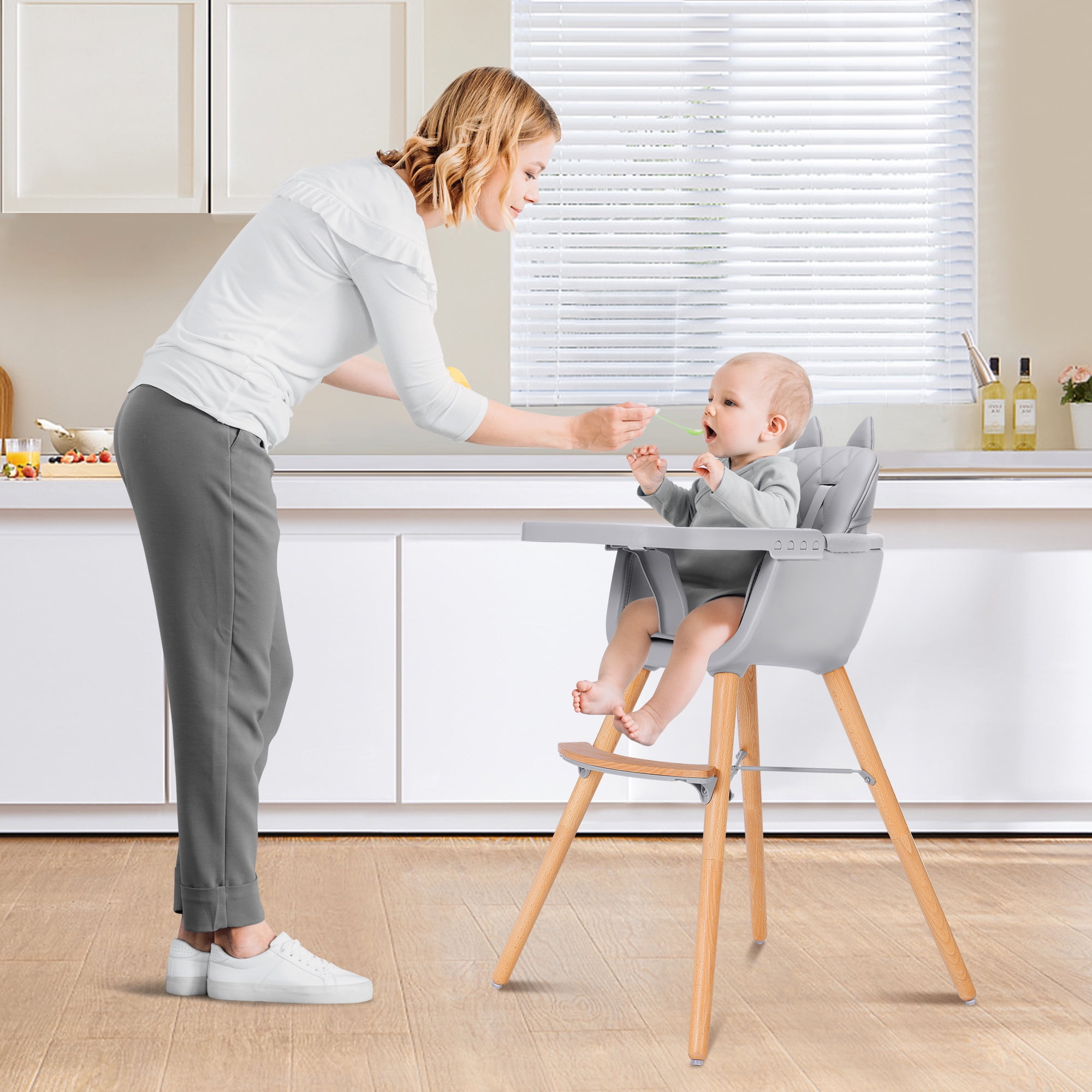 High Chair for Baby and Toddler, 3-in-one Convertible Easy Clean Infant Highchair with Adjustable Legs & Dishwasher Safe Tray-Gray