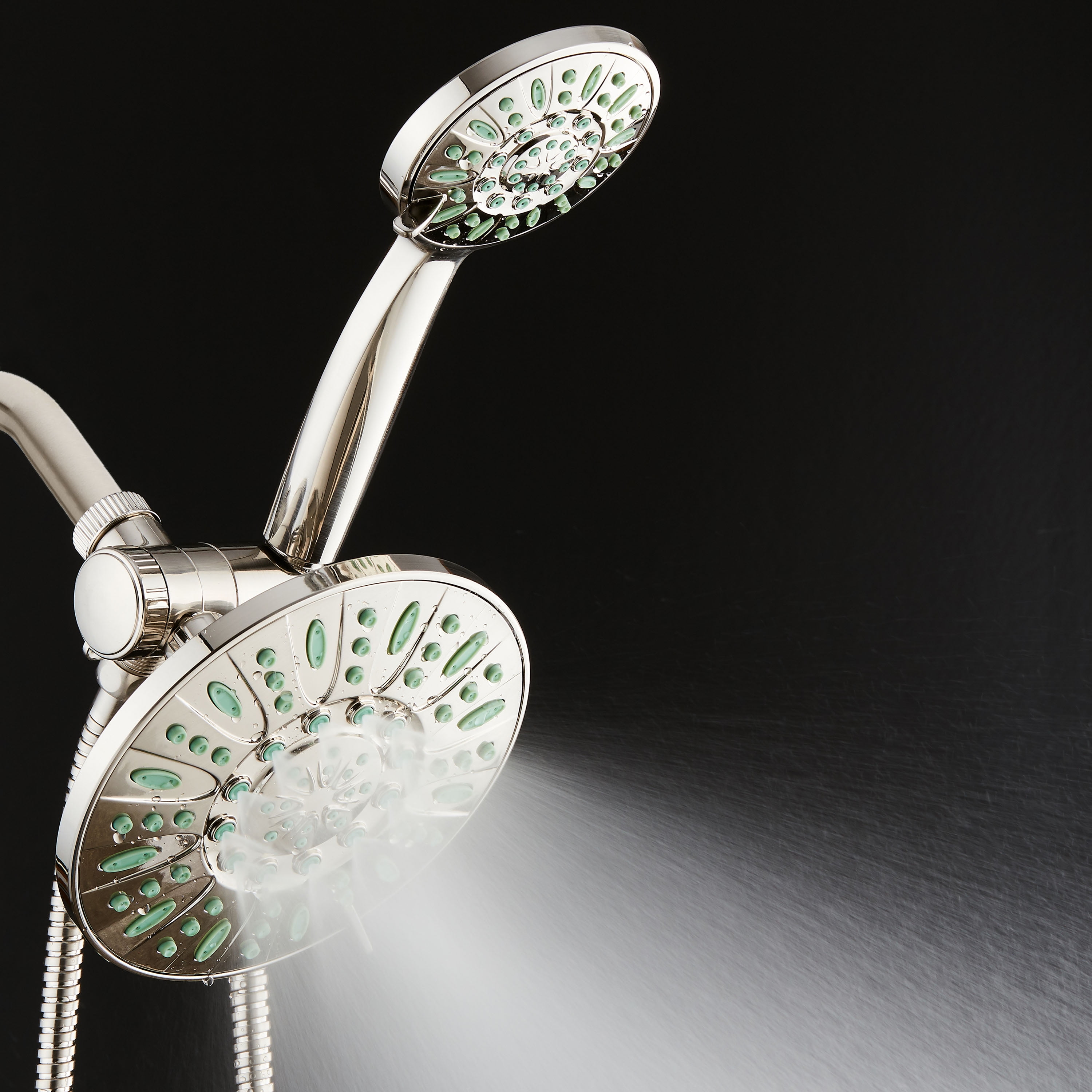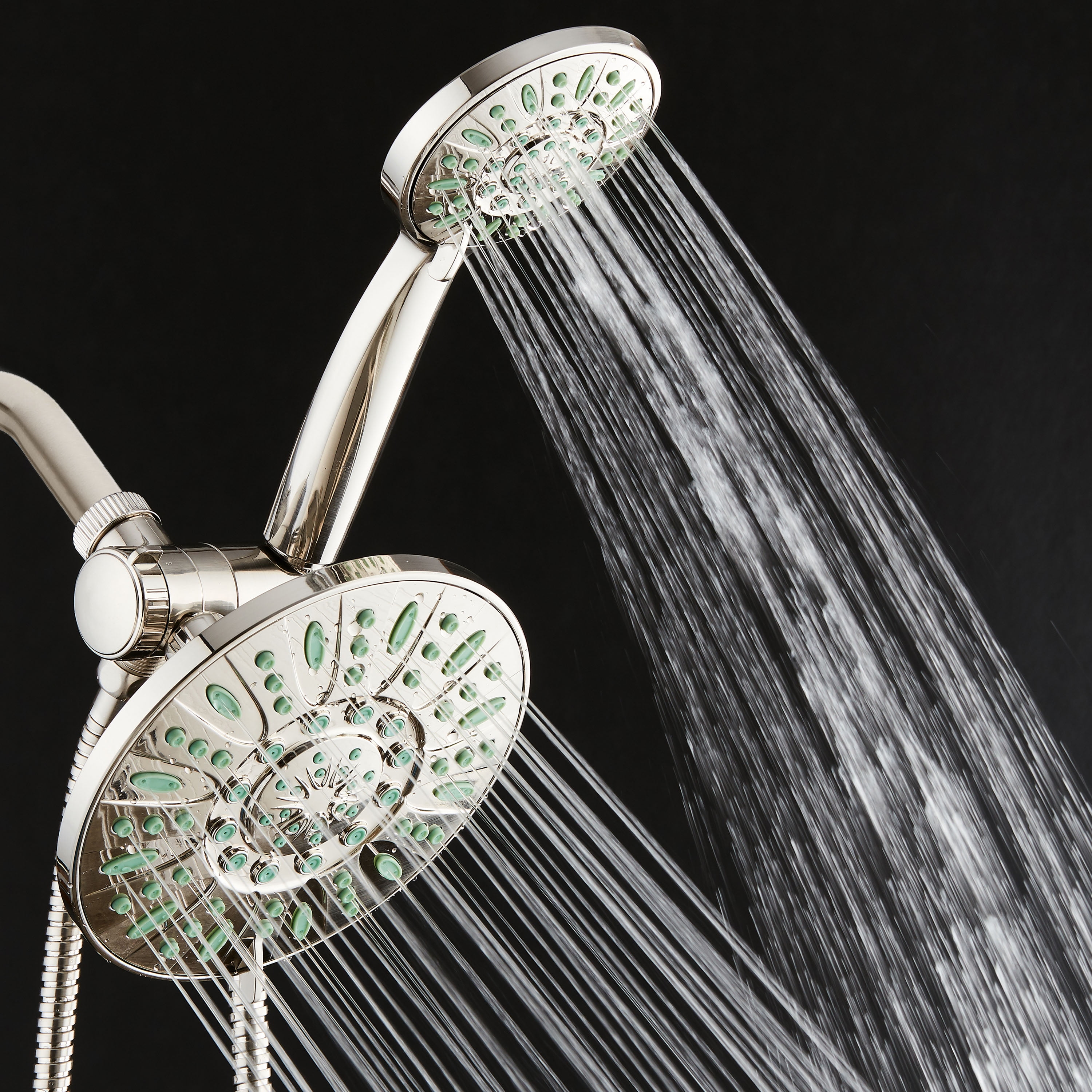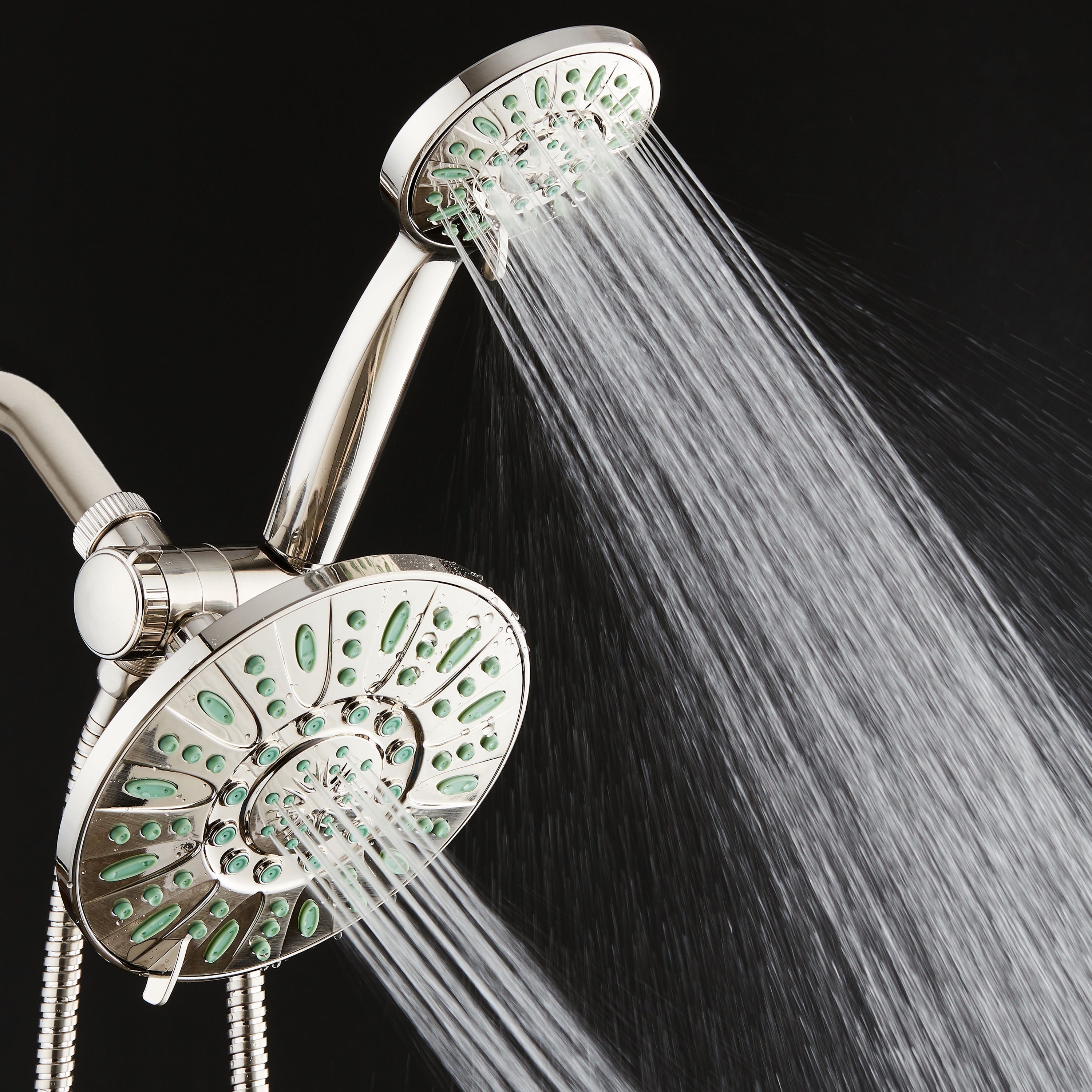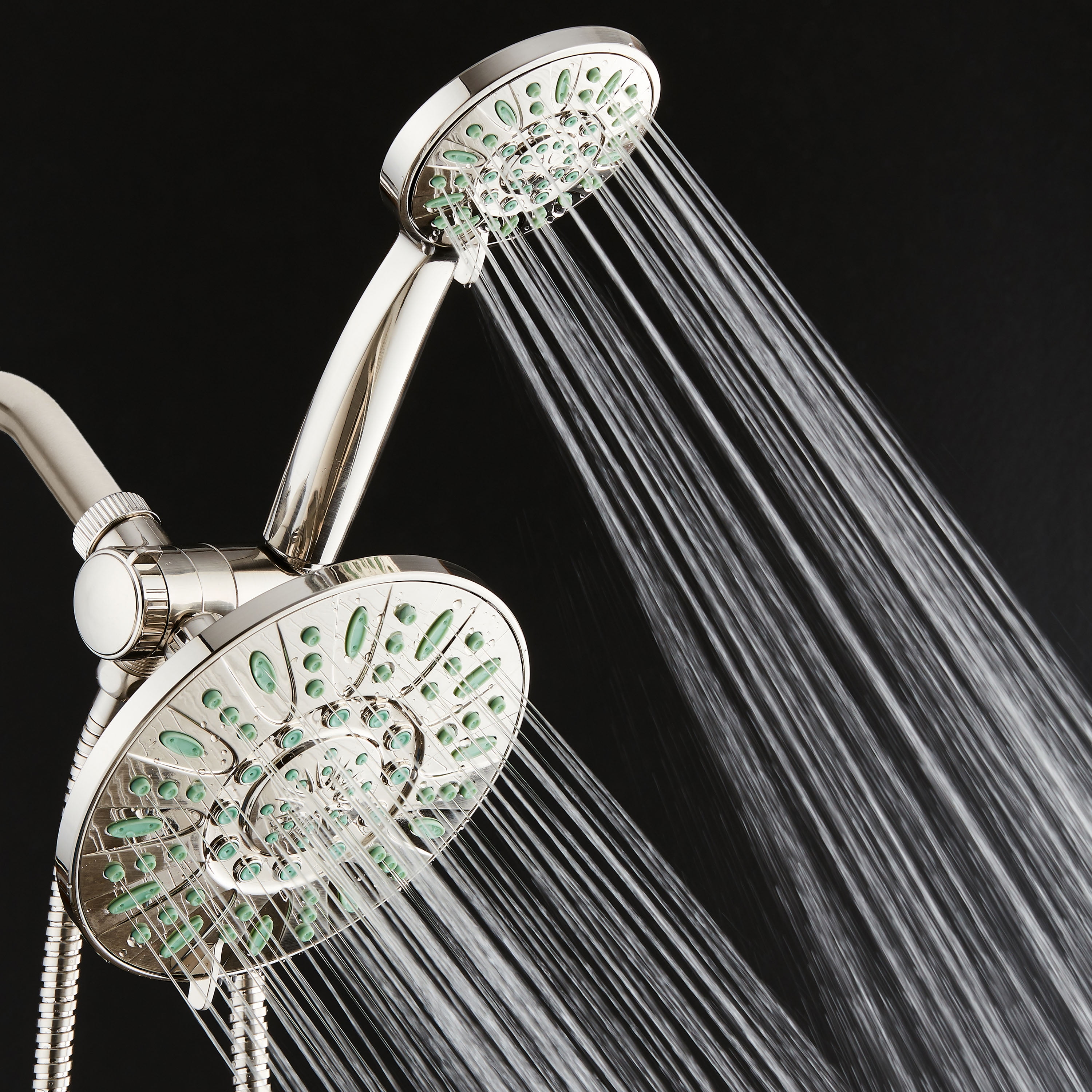 AquaDanceHigh-Pressure Luxury 48-Mode 7″ Shower Head & Handheld 3-way Combo. Enjoy a cleaner, more powerful shower every time! AquaDance® Antimicrobial Shower Heads feature revolutionary Antimicrobial Anti-clog Nozzles made from Microban® antimicrobial material that inhibits the growth of mold, mildew, and bacteria inside. So, they remain clean and clog-free for more water pressure and better shower hygiene. 100% safe and effective, EPA-registered Microban® Antimicrobial Technology works 24/7 on a molecular level for the life of the product, it can never wear off or wash away. With lifetime Microban® protection from bacterial contamination and degradation, our antimicrobial nozzles require less cleaning and maintenance, improve flow efficiency, and extend product life for years of flawless performance.