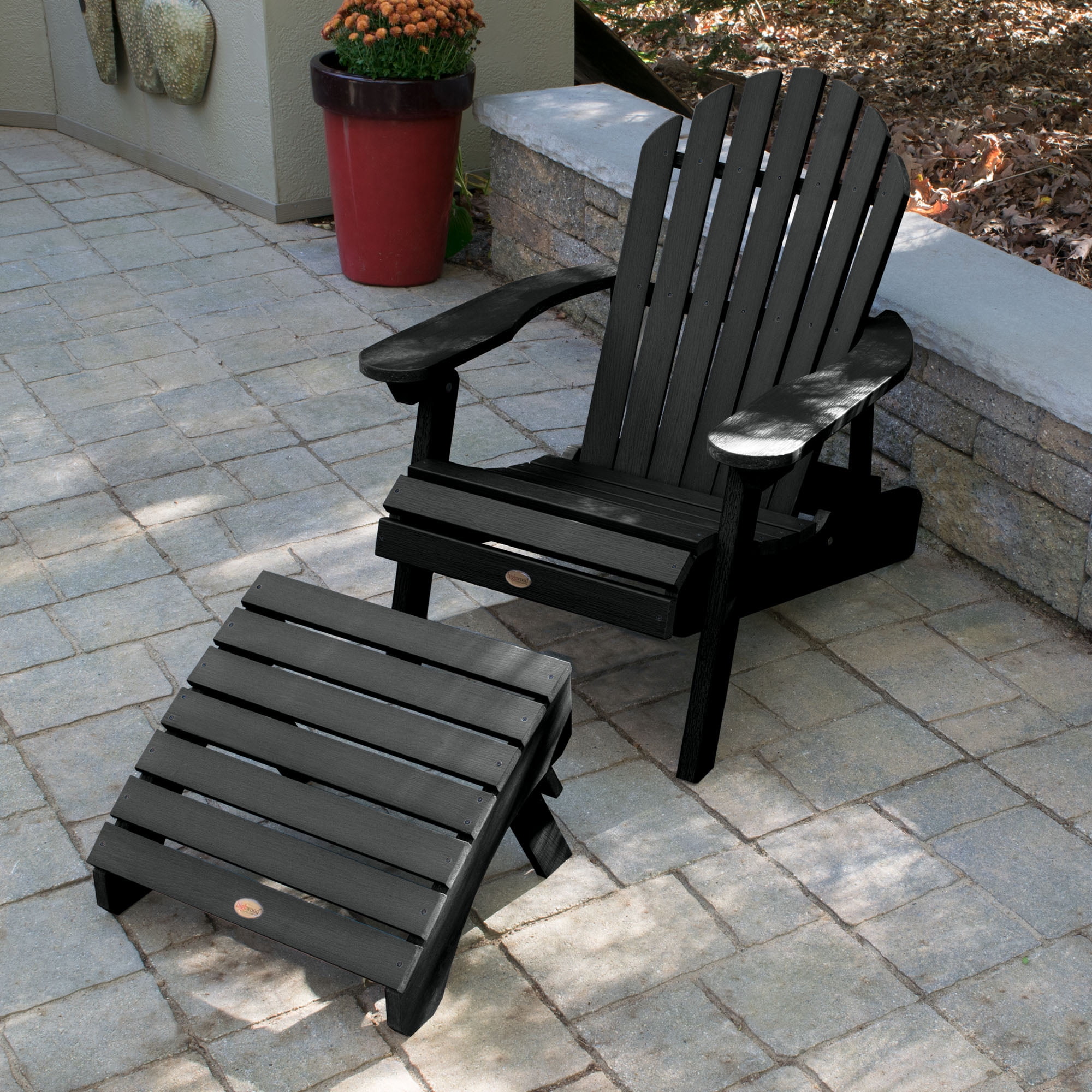 Highwood 2-pc Hamilton Adirondack Set with 1 Folding Ottoman – Folding & Reclining, Outdoor, Eco-friendly, Synthetic Wood