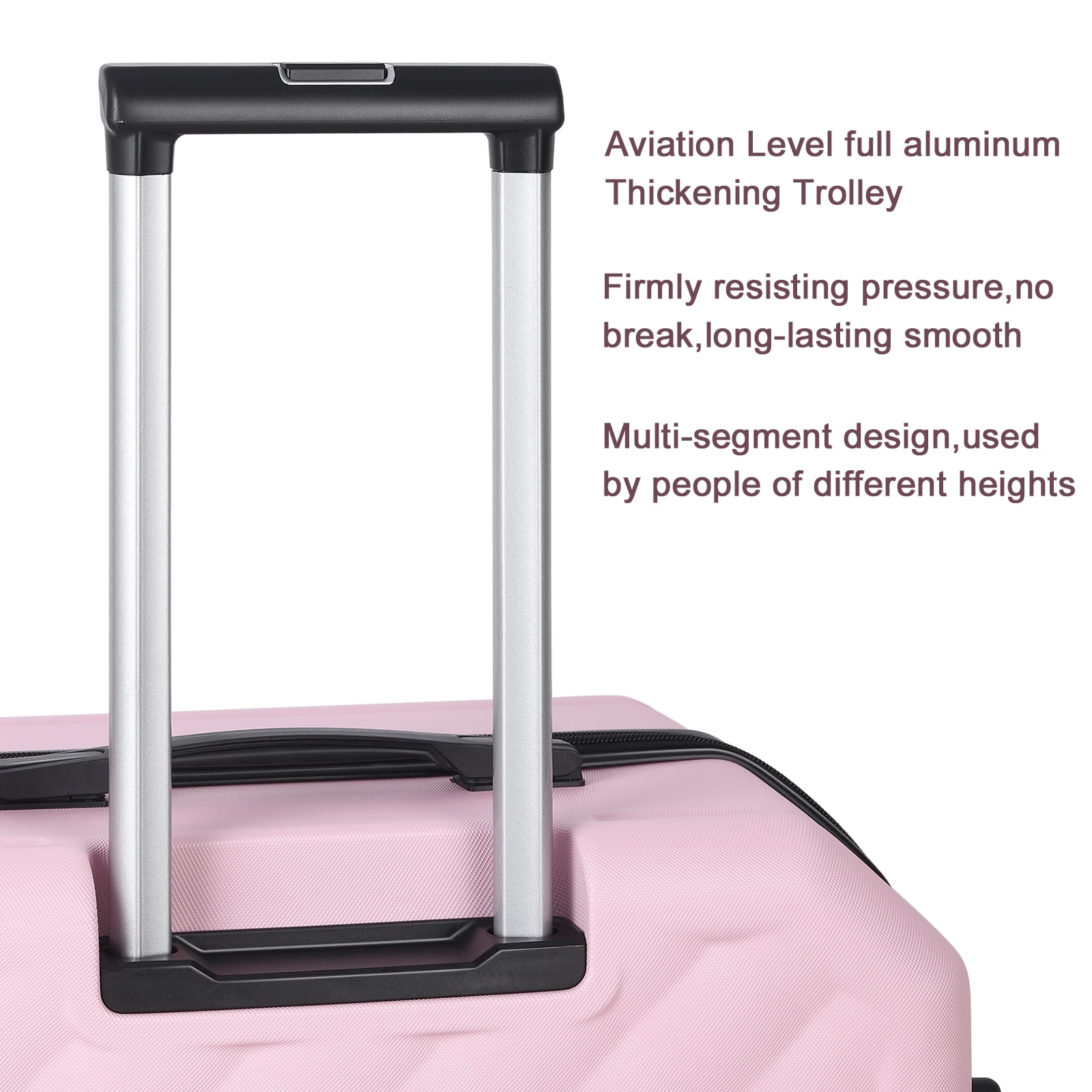 Multiple packing compartments for clothing, toiletries, devices and more Adjustable telescoping handle, comfort grip, recessed TSA lock, and 360-degree spinner wheels Three piece luggage set 20 inch, 24 inch, 28 inch upright, can be stored one into another. 100% abs, lightweight yet extremely durable abs material Built-in TSA lock allows authorities to safely unlock and relock the bag for inspection when needed (Lock code default is set at 0-0-0) It features a telescoping trolley handle to help easily roll around the suitcase.