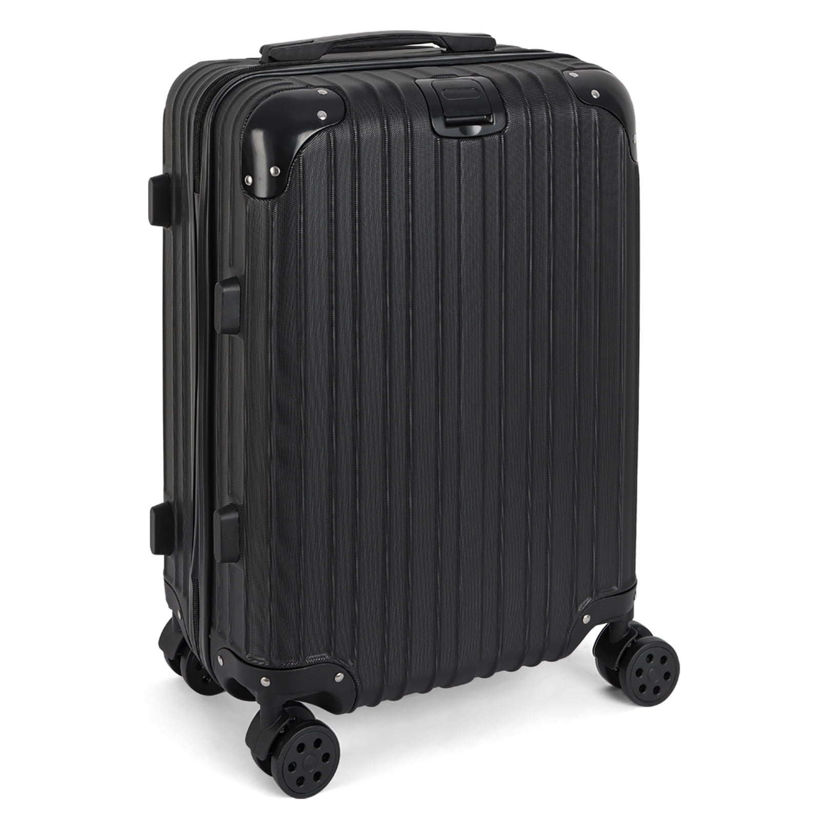 Multiple packing compartments for clothing, toiletries, devices and more Adjustable telescoping handle, comfort grip, recessed TSA lock, and 360-degree spinner wheels Three piece luggage set 20 inch, 24 inch, 28 inch upright,can be stored one into another. 100% abs, lightweight yet extremely durable abs material Built-in TSA lock allows authorities to safely unlock and relock the bag for inspection when needed (Lock code default is set at 0-0-0) 8-Wheel spinner wheels Adjustable telescopic handle with 3 height settings