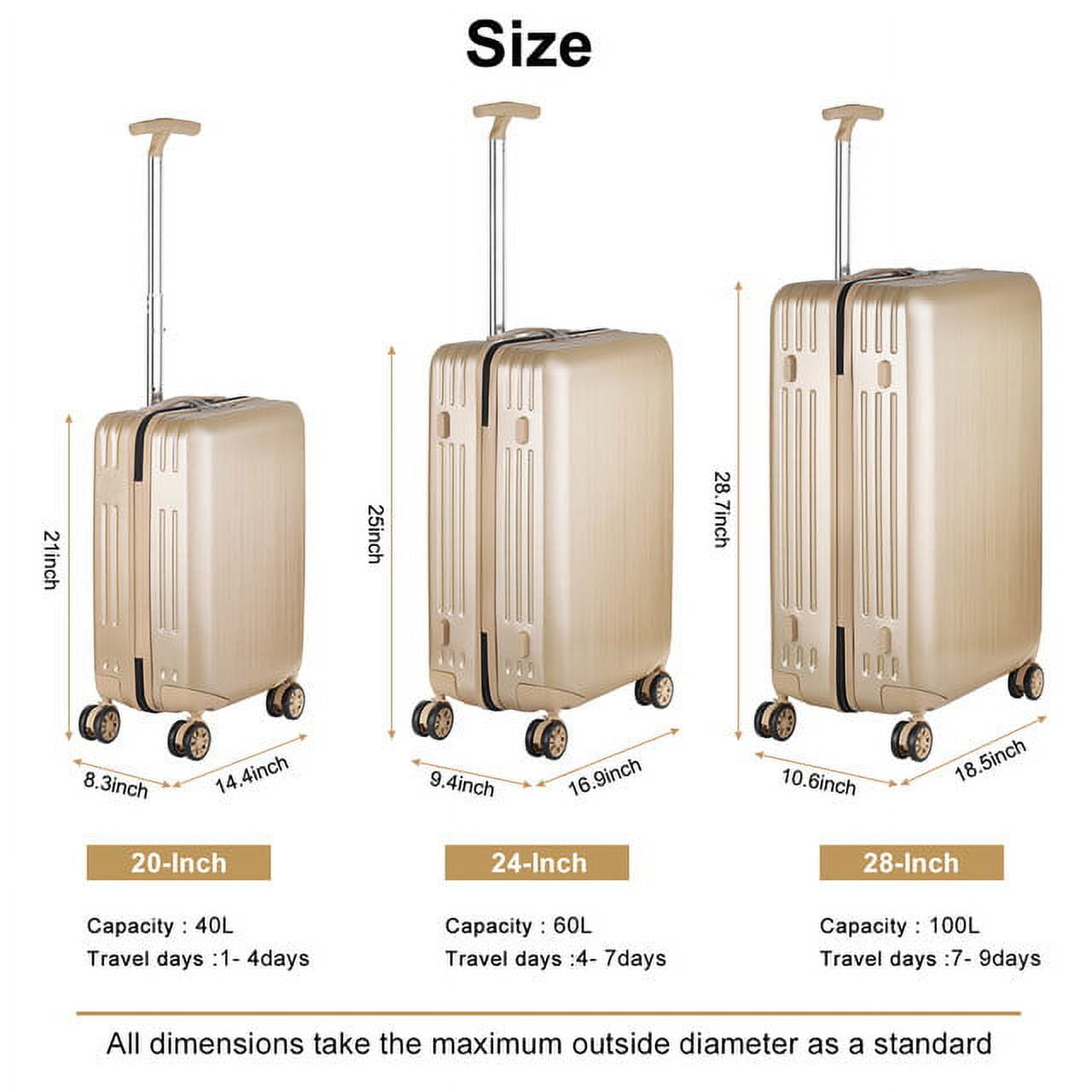 This luggage set is a great choice for travel to carry all of your belongings. Made of lightweight ABS material, the hard shell suitcases are very durable and crafted to resist impact and keep your belongings safe. The carbon fiber surface coating prevents scratches and damage from rough airport treatment. The suitcases are also equipped with 4 spinner wheels that are 360° rotatable allowing you to effortlessly roll the bag along even on uneven surfaces and not have to carry heavy weight. It features a telescoping trolley handle to help easily roll around the suitcase. Also featured is a combination lock with an adjustable code to ensure safety and offer peace of mind whether you are carrying it on the plane or opting to check the bag in. The set of suitcases comes with the small (20”), medium (24”) and large (28”) sizes giving you options depending on the length and purpose of your travel surely covering all of your travel needs.