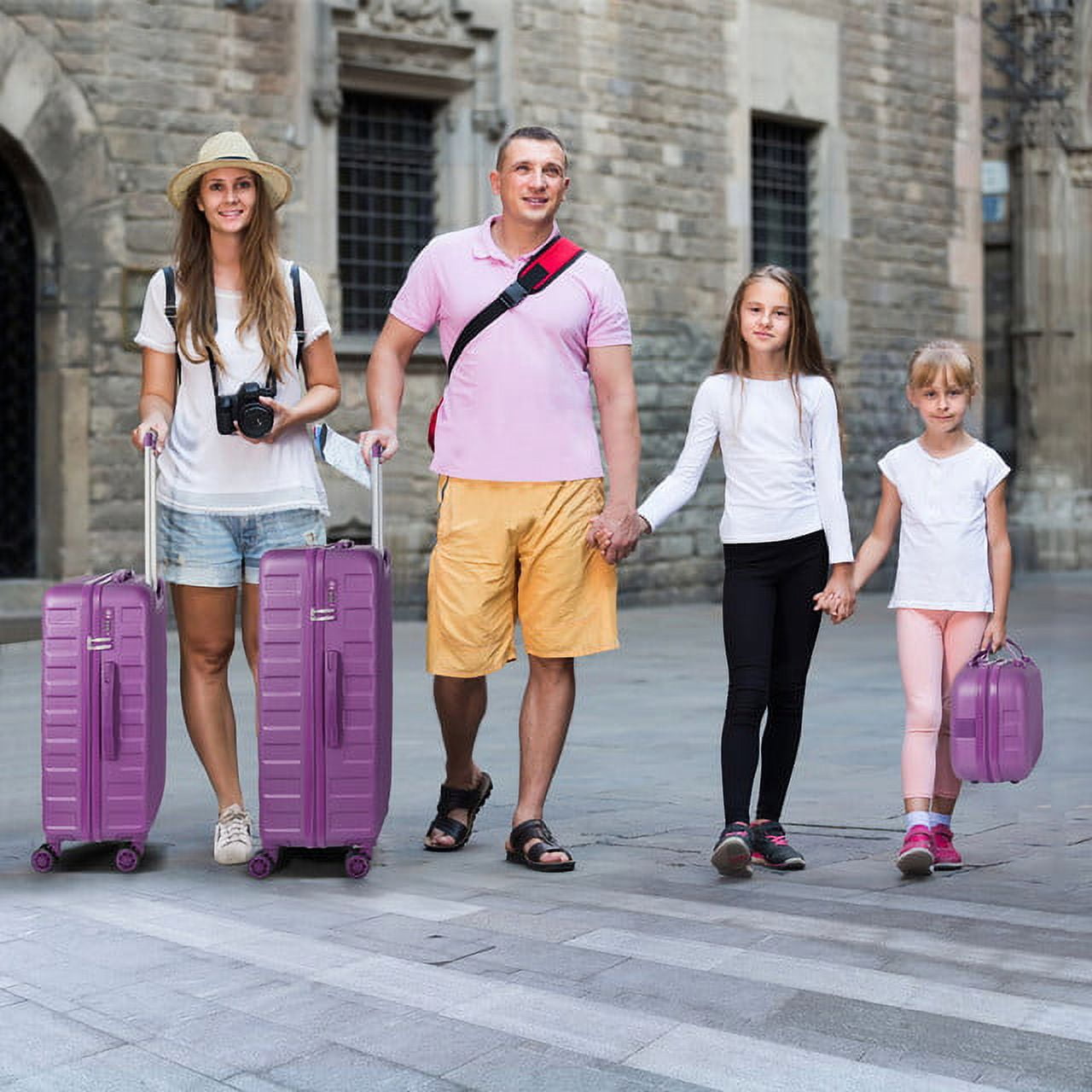 This luggage suitcase set is a great choice for travel to carry all of your belongings. Made of lightweight ABS material, the hard-shell suitcases are very durable and crafted to resist impact and keep your belongings safe. The carbon fiber surface coating prevents scratches and damage from rough airport treatment. The suitcases are also equipped with spinner wheels that are 360° rotatable allowing you to effortlessly roll the bag along even on uneven surfaces and not have to carry heavy weight. It features a telescoping trolley handle to help easily roll around the suitcase. Also featured is a combination lock with an adjustable code to ensure safety and offer peace of mind whether you are carrying it on the plane or opting to check the bag in. The set of suitcases comes with the small (20”), medium (24”) and large (28”) as well as two suitcases of 12″ and 14″ sizes giving you options depending on the length and purpose of your travel surely covering all of your travel needs.
