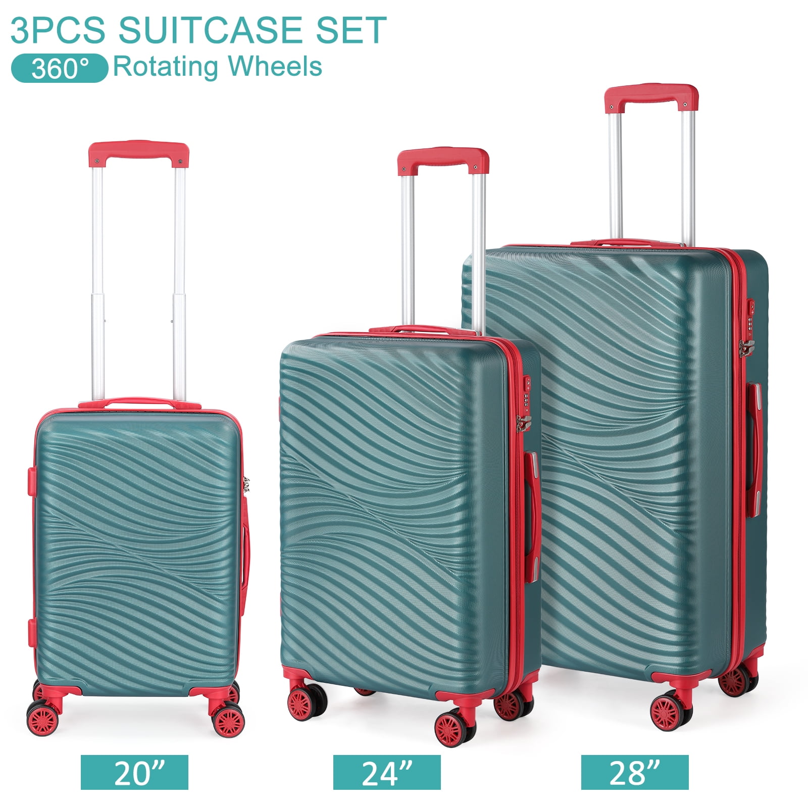 Hikolayae Wave Collection Hardside Spinner Luggage Sets in Jade Green, 3 Piece – TSA Lock