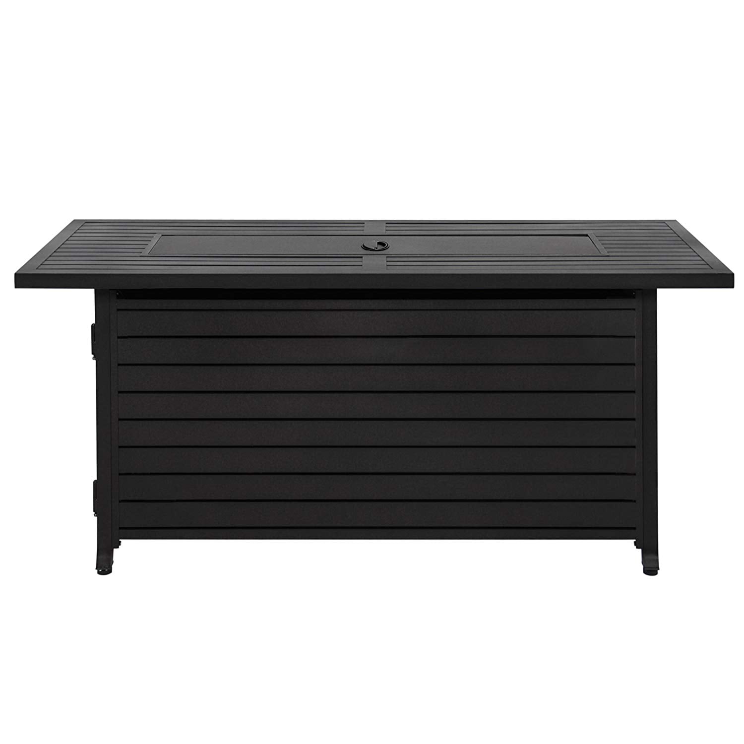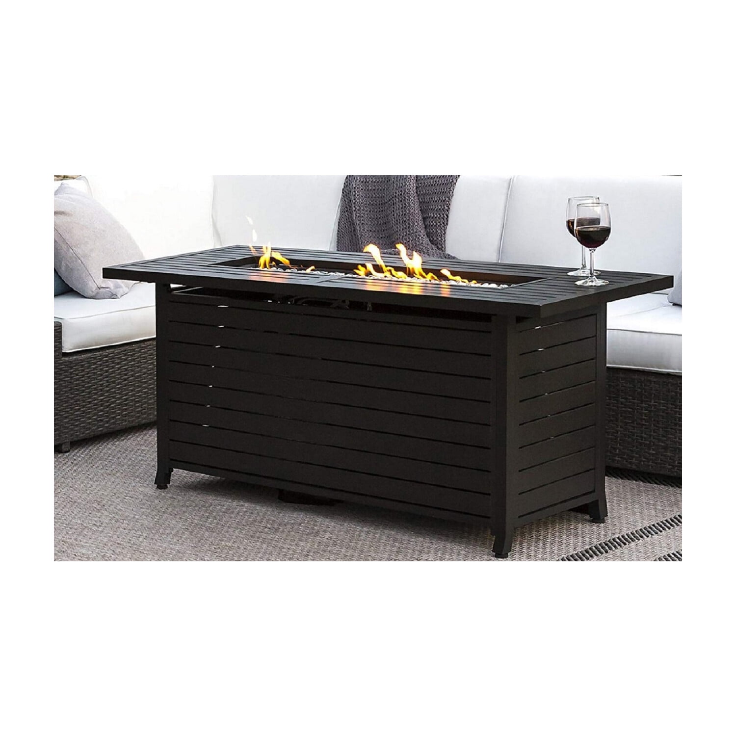 Hiland AZ Patio Heaters Outdoor Rectangle Fire Pit in Black Mocha with Wind Screen