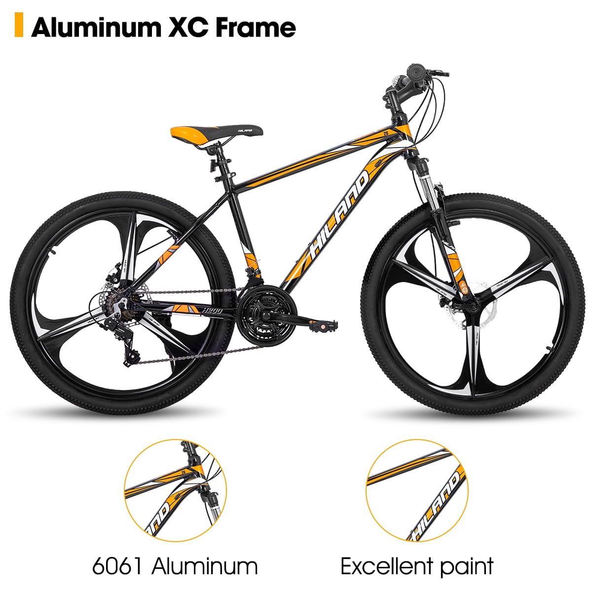 Hiland Mountain Bike, 3-Spokes,Shimano 21 Speeds Drivetrain,Aluminum Frame 26 inch Wheels, Men’s MTB Bicycle, Orange