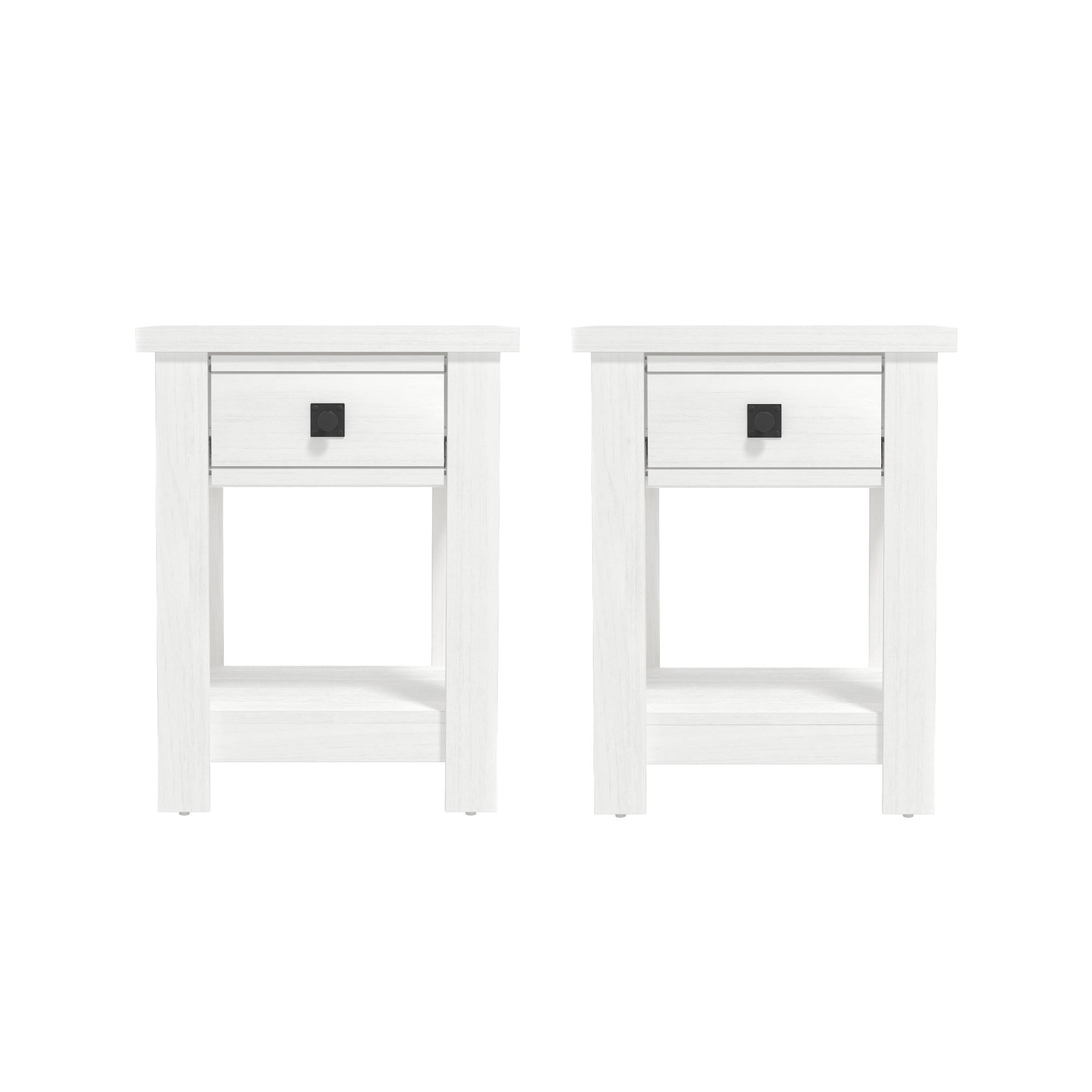 Hillsdale Addison Farmhouse 1 Drawer Nightstand, Set of 2, White
