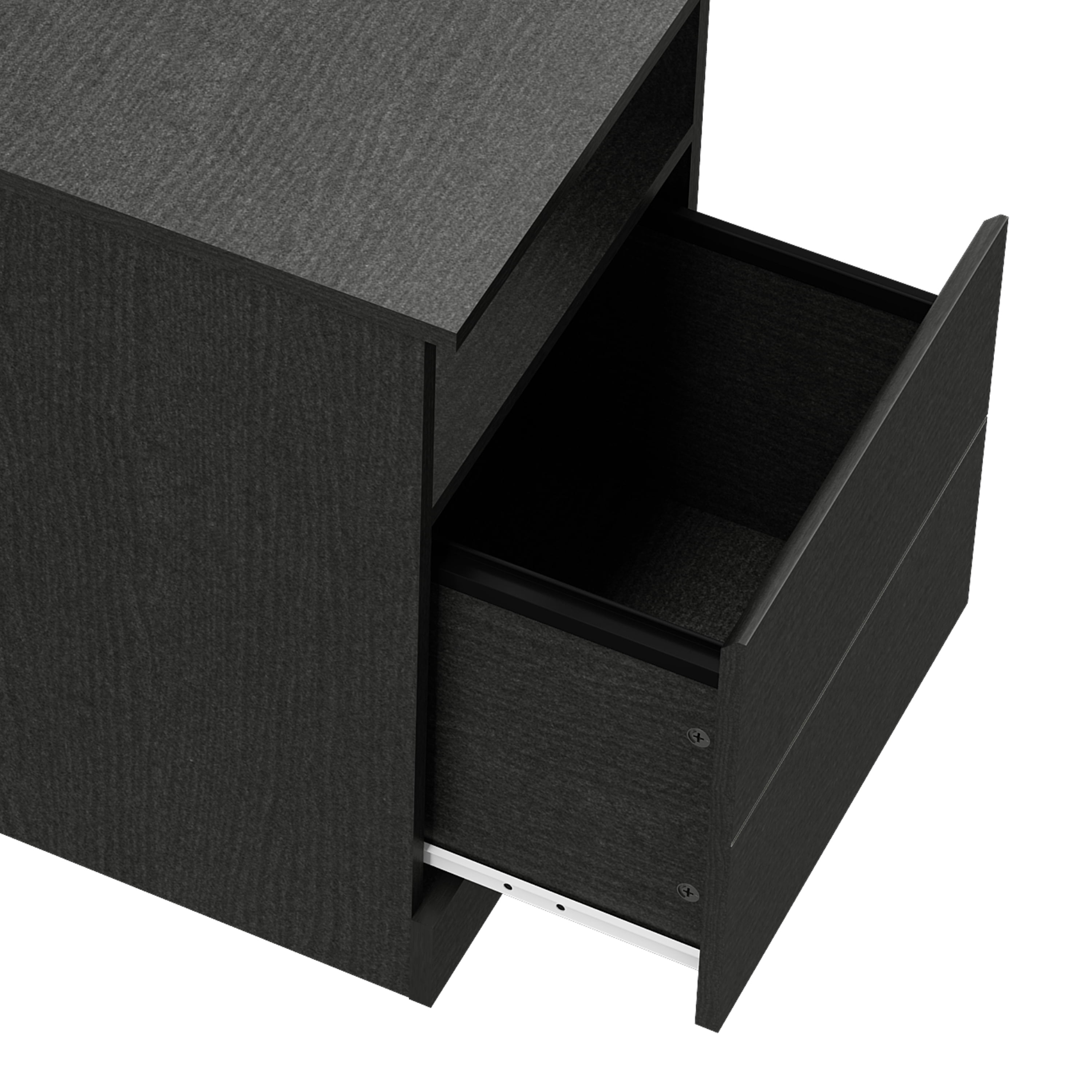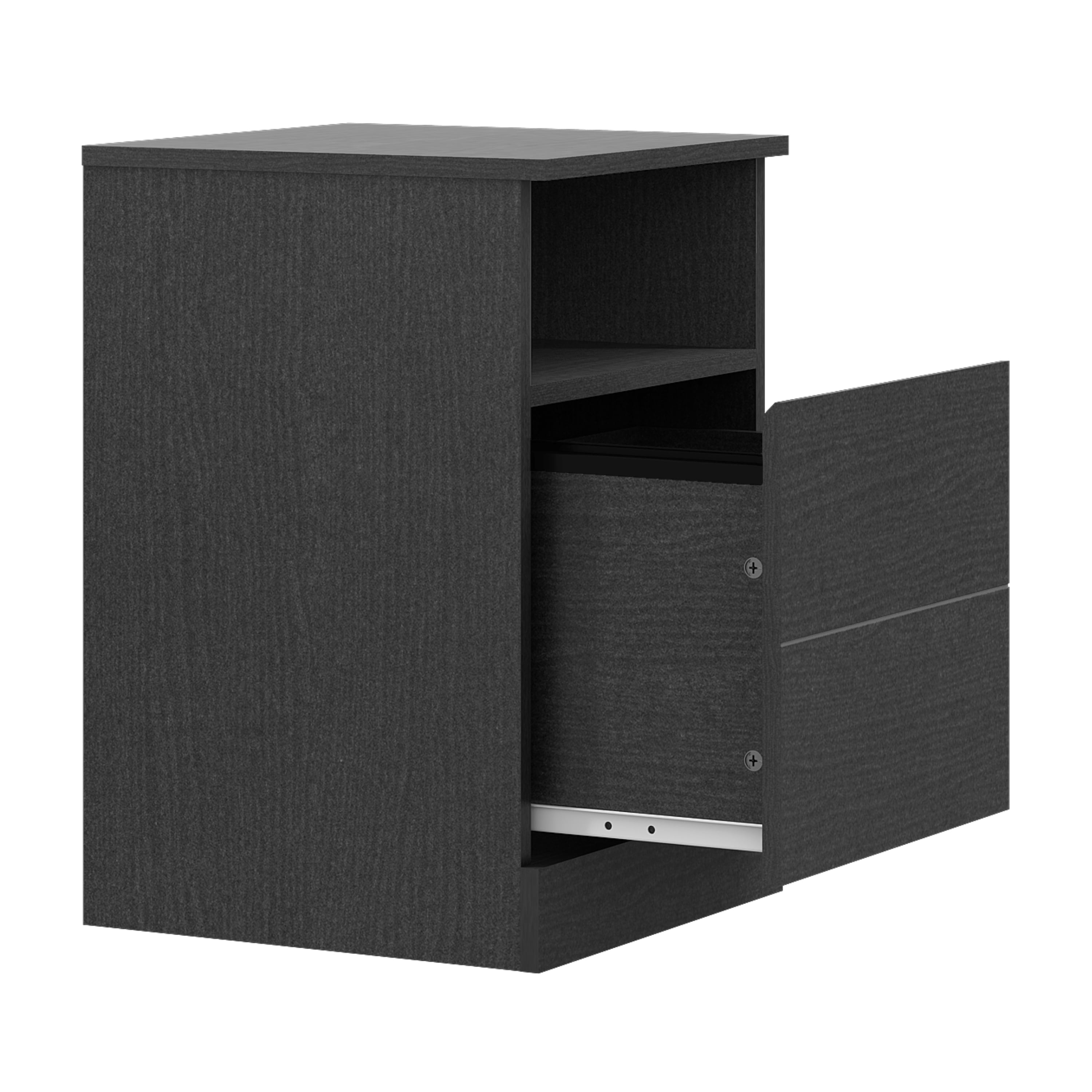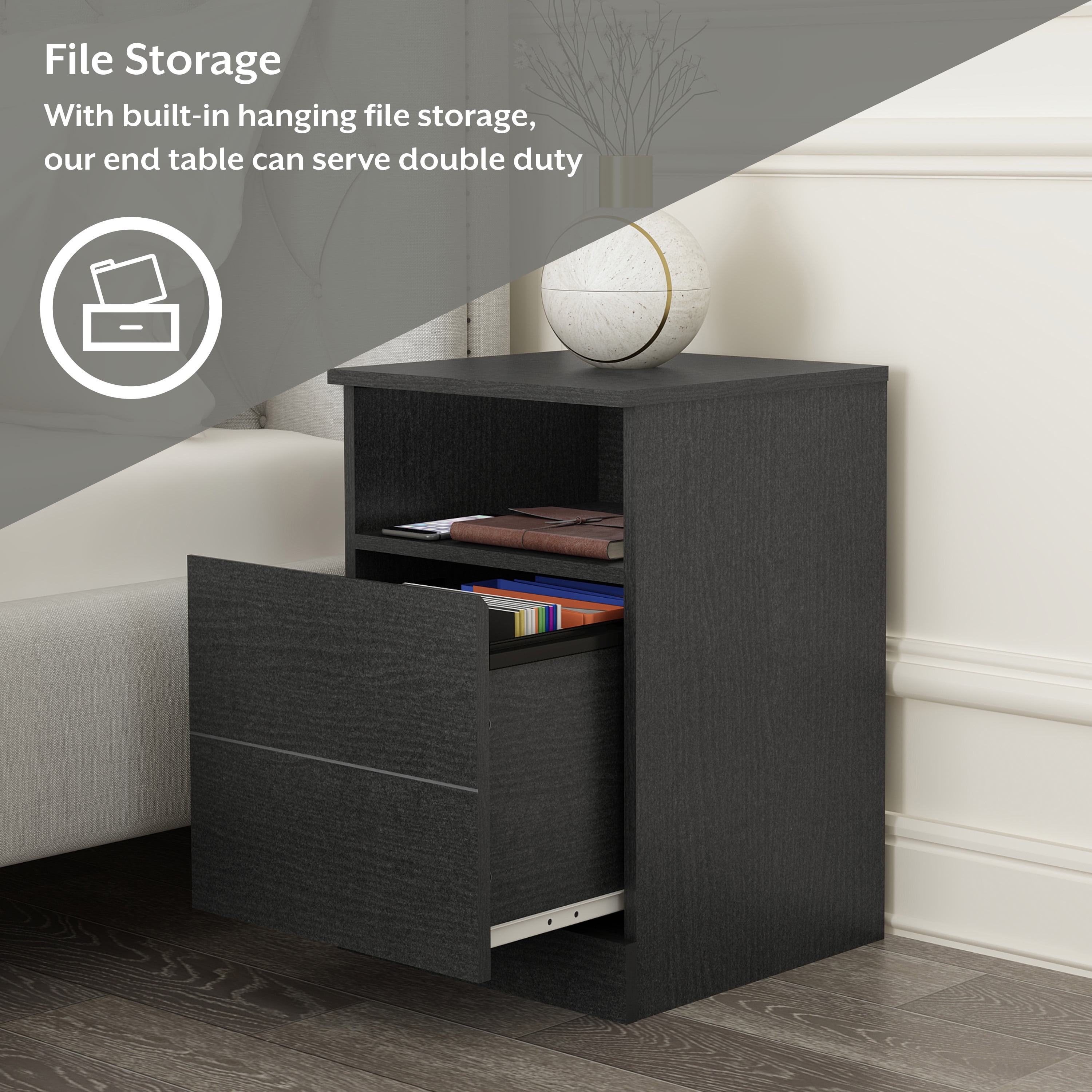 This or that. Form or function. Work or play. What would happen if we changed every ‘or’ to ‘and’. With the Living Essentials by Hillsdale Brindle End Table, that’s exactly what we did. You get the style; sleek, minimalist, with a touch of rustic in the black oak finish. And just keep coming, too, like the open shelf and closed file storage and, that file drawer easily converts to anything-else storage. This multifunctional wood side table can be used in the office, the living room, and the bedrooms.
