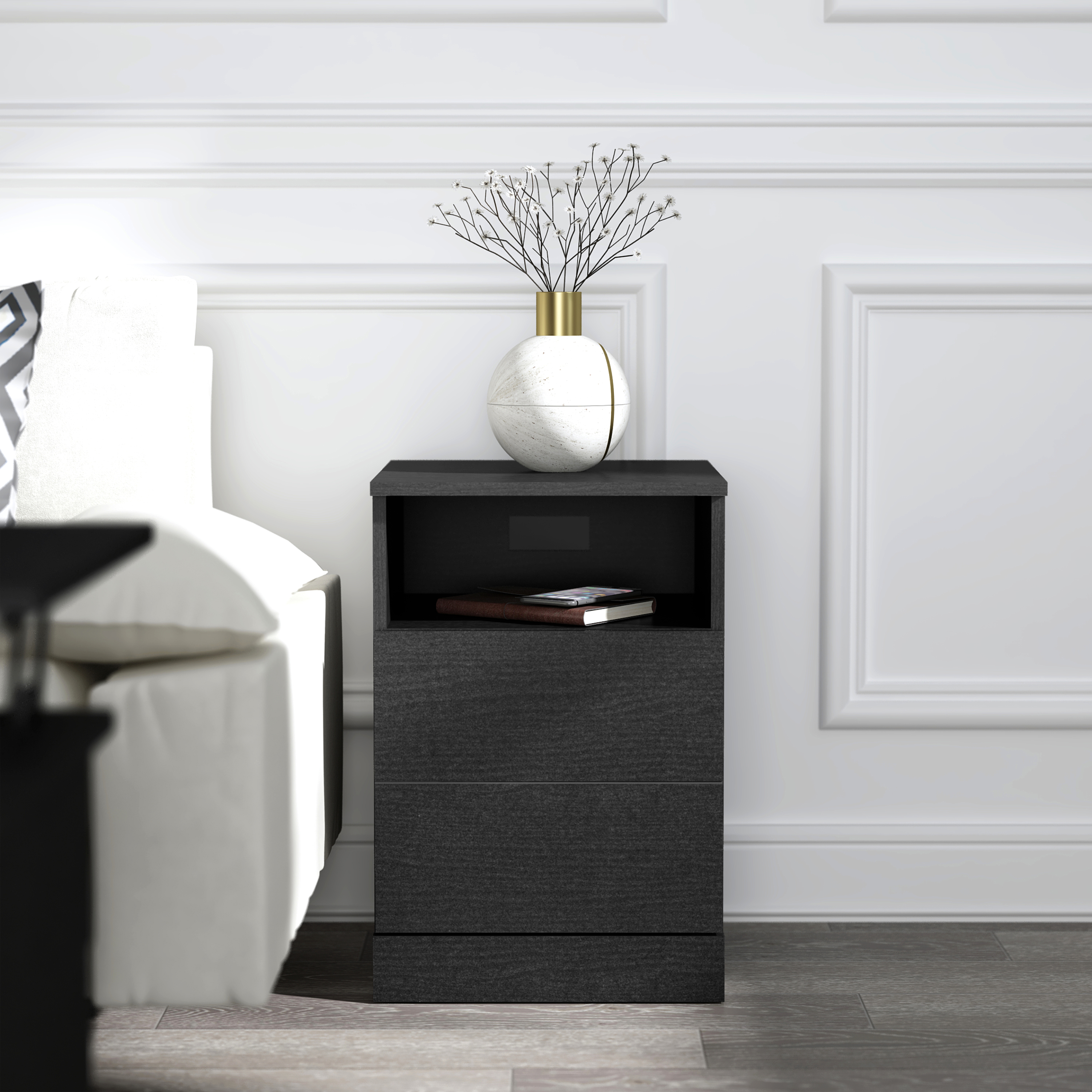Hillsdale Brindle Rectangular End Table with USB and Drawer, Black Oak
