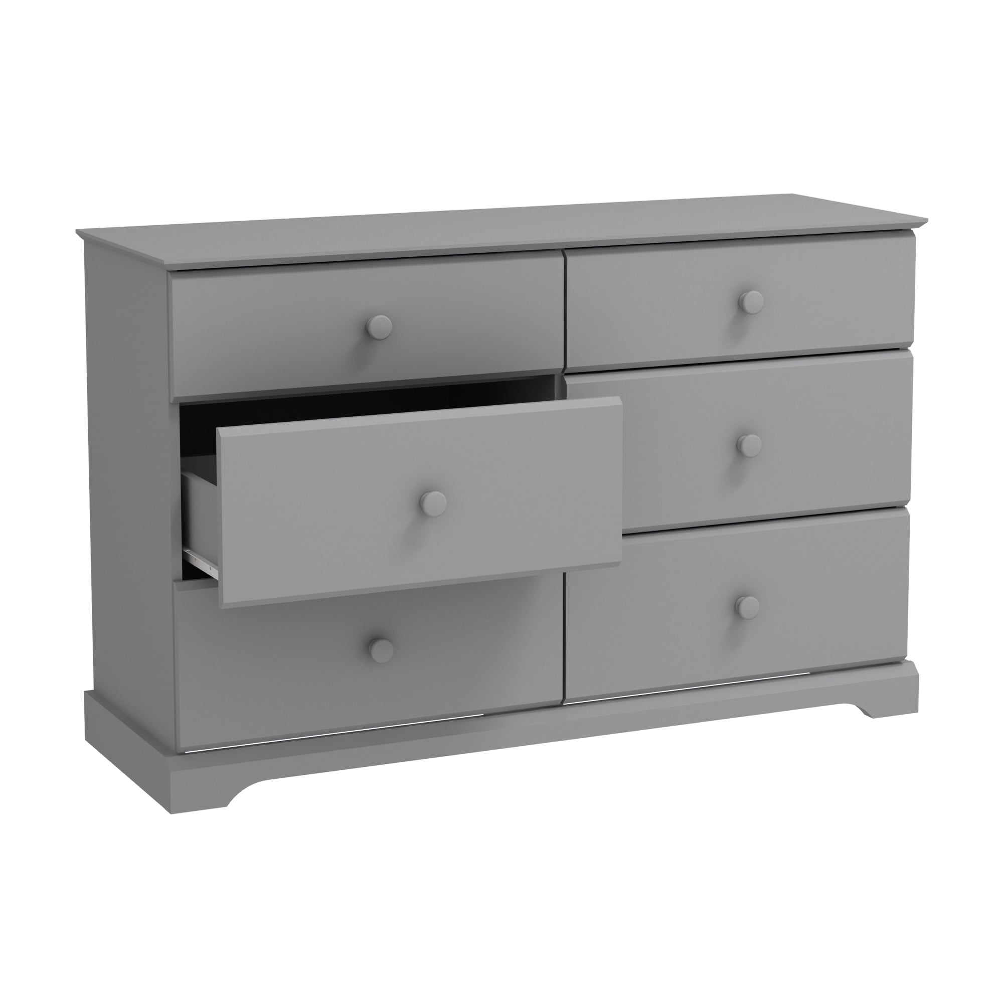 Transitional style bedroom dresser for kids in gray finish 6-drawer dresser with metal glides for easy open and close Ample storage inside and on top to store and organize items Overall Dimensions: 29.75H x 46.5W x 15.5D Assembly required Item will ship in 1 box Durable metal glides Spot of wipe clean 90-Day Limited Warranty For residential use only