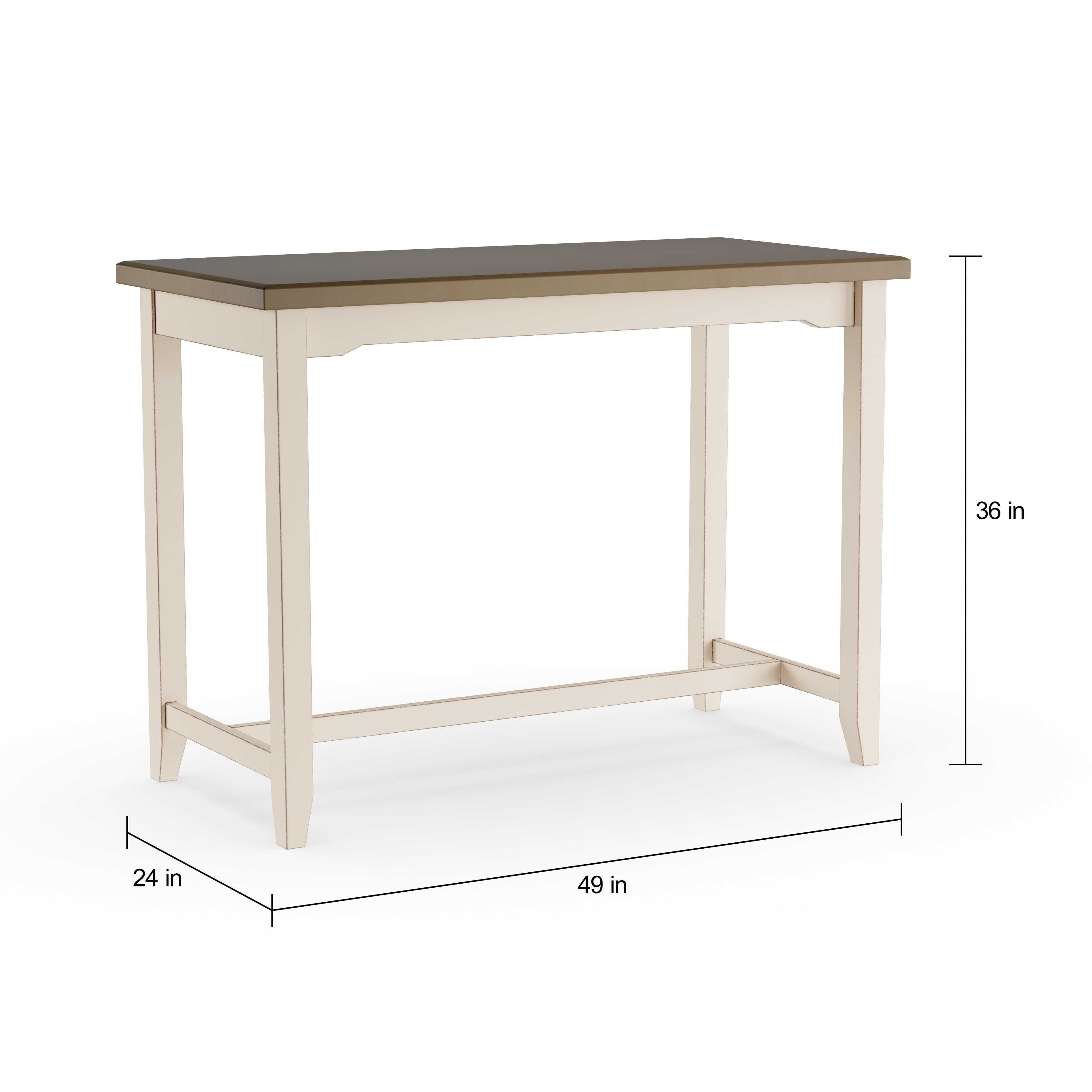 Counter height dining table with coastal farmhouse design Tabletop finished in a distressed gray, soft white base Perfect for dining, Rubberwood and MDF construction Overall Dimensions: 36H X 49W X 24D Assembly required Item ships in one box Constructed of durable rubber wood Residential use only Dust and polish with non-abrasive cleaners Recommended Weight Limit: 75lbs