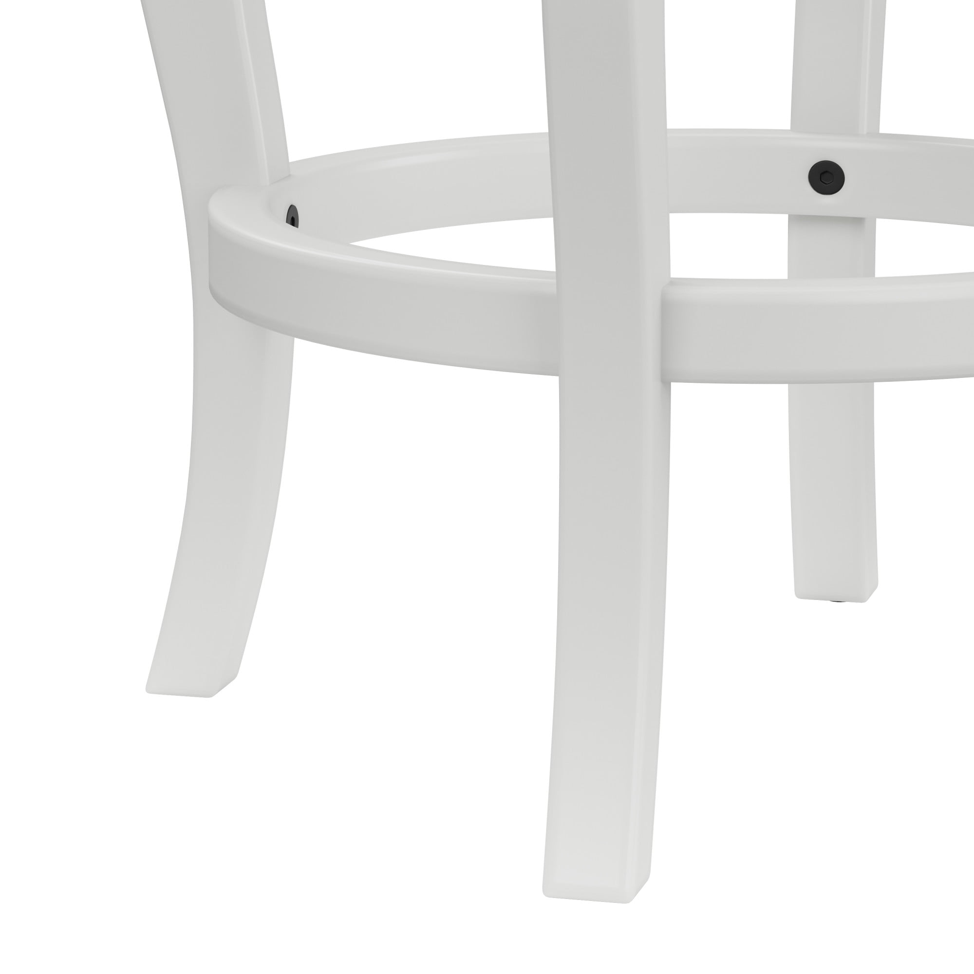 Casual counter height stool in a white finish Swivel seat covered in 100% beige polyester fabric Constructed with rubberwood and plywood for durable use Overall Dimensions: 40H x 17.5W x 21D; Seat Height: 25.25H; Seat Diameter: 17W Assembly required Ships one stool in one box Works best with counters or tables that are 34-38 inches in height Spot or wipe clean Recommended weight limit: 250lbs For residential use only