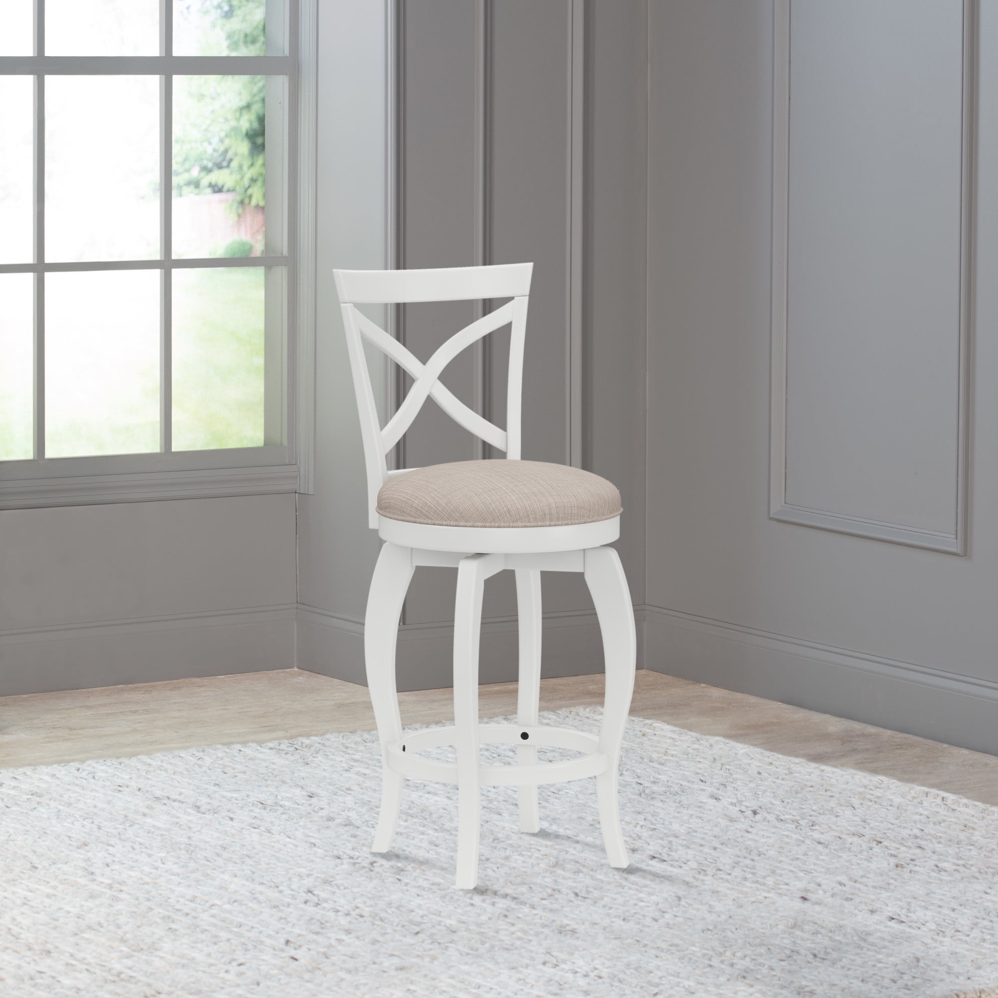 Hillsdale Furniture Ellendale Wood Counter Height Swivel Stool, White with Beige Fabric