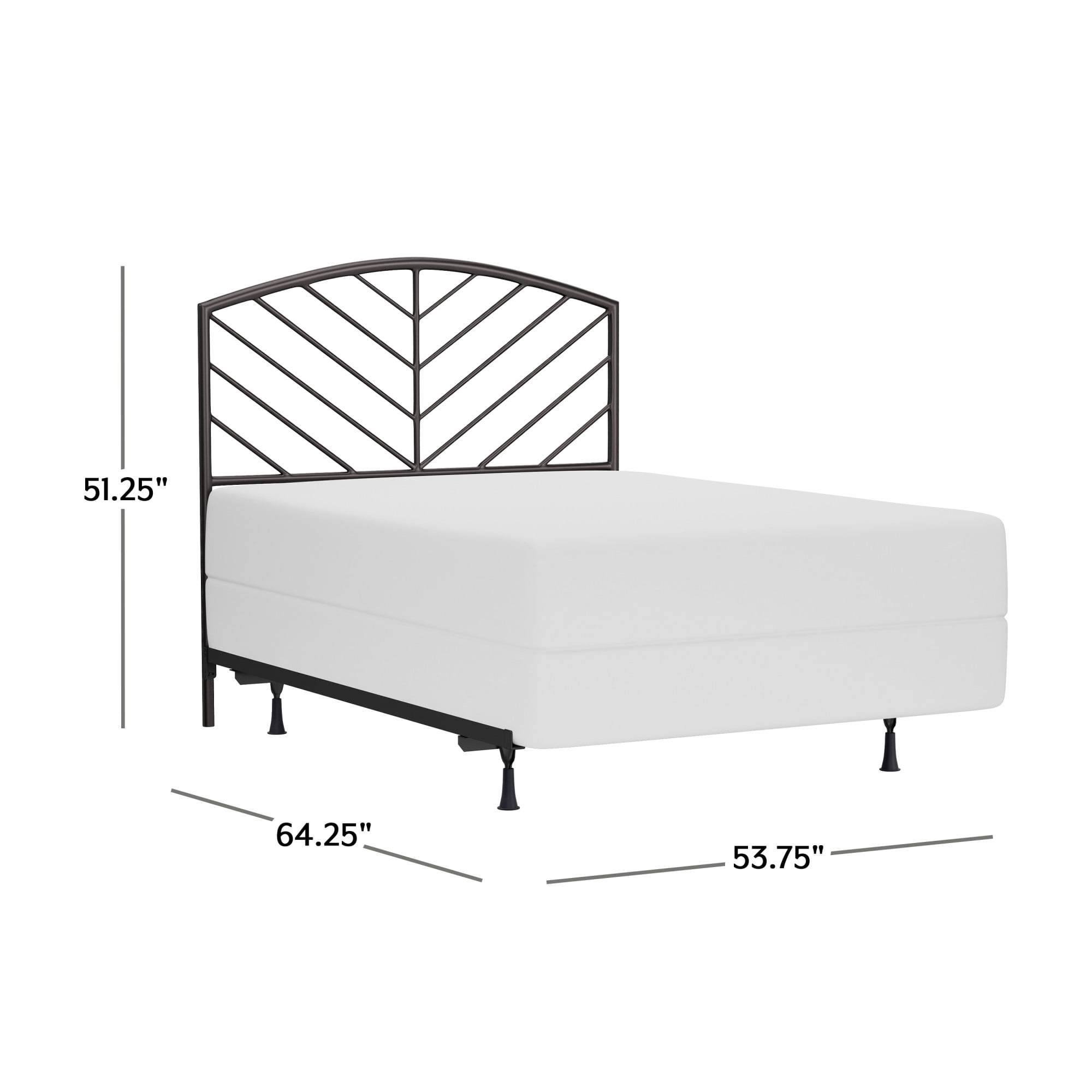The Hillsdale Furniture Essex Full Headboard is inspired by the pattern of a fall leaf. Its Speckled Metallic Brown metal finish reflects light and adds warmth to this full metal headboard’s deep color. Its fully welded construction ensures years of durability. Includes headboard and headboard frame only. Footboard sold separately. Box spring and mattress not included. Some assembly required. Features: Full-size metal headboard in a Speckled Metallic Brown finish with headboard frame; footboard sold separately; box spring and mattress not included Headboard and headboard frame; footboard sold separately; box spring and mattress not included Upward facing, 90° angled, tubular steel design is bisected by a vertical beam Features a warm Speckled Metallic Brown metal finish Forged from heavy gauge tubular steel Ships headboard and bed frame in a total of 2 boxes Bed frame included Specifications: Headboard Dimensions: 51.25H x 53.75W x 1.25D Product Weight: 36