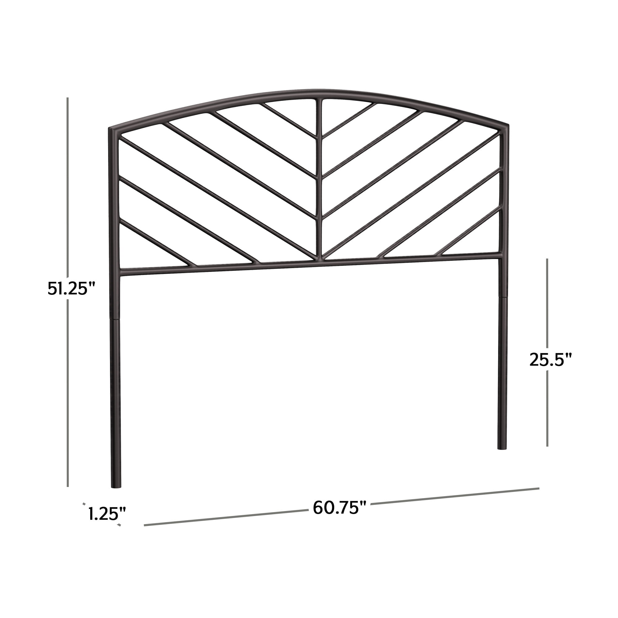 Essex Metal Queen Headboard, Gray Bronze Looking for a queen-size headboard that matches your style: a little bit of everything? Trendy chevron design lend this queen-size metal headboard with touch of modern style while a gray bronze finish over durable steel adds a pinch of farmhouse flavor without sacrificing warmth and softness. Overall, this queen-size headboard is just like you: the best of everything, fashionable and on-trend, with a little bit of edge. Includes headboard only. Bed frame, mattress and box spring not included. Assembly required. Chic modern queen-size arched headboard with chevron spindles Gray bronze finish lends an antique feel to a modern silhouette Durable fully welded metal construction ideal for daily use or your guest room Headboard Dimensions: 51.25H x 60.75W x 1.25D Assembly required Headboard will ship in one box Includes headboard only; frame, box spring and mattress required, not included Wipe clean with dry cloth Traditional design with a touch of modern flair complements any décor For residential use only – Material: Metal – Number of Pieces: 1 Queen Headboard – Collection Name: Essex – Assembled Product Height (inches): 51.25 – Assembled Product Width (inches): 60.75 – Design Style: Modern – Metal Finish: Gray Bronze – Assembled Product Weight (lbs): 12 – General Color: Grey – Item Shape: Rectangular – Assembled Product Length/Depth (inches): 1.25 – Metal Type: Steel – Construction Type: Metal – Adjustable (Y/N): No – Upholstered (Y/N): No – Vendor Color: Gray Bronze – Are Batteries required?: No – Commercial Grade: No