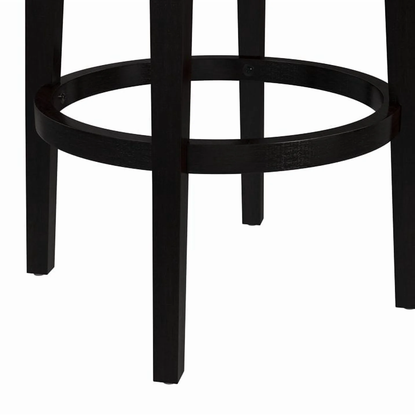 Casual wood and upholstered counter height swivel stool with unique basket weave design back The simple wood frame features a rich brushed black finish The round 360 degree swivel seat is upholstered in a weathered granite gray faux leather Overall Dimensions: 40.25H x 19.25W x 22D; Seat Height: 26H; Seat Diameter: 17.5W Assembly required Ships one stool in one box Works best with counters or tables that are 34-38 inches in height Spot or wipe clean Recommended weight limit: 250lbs For residential use only