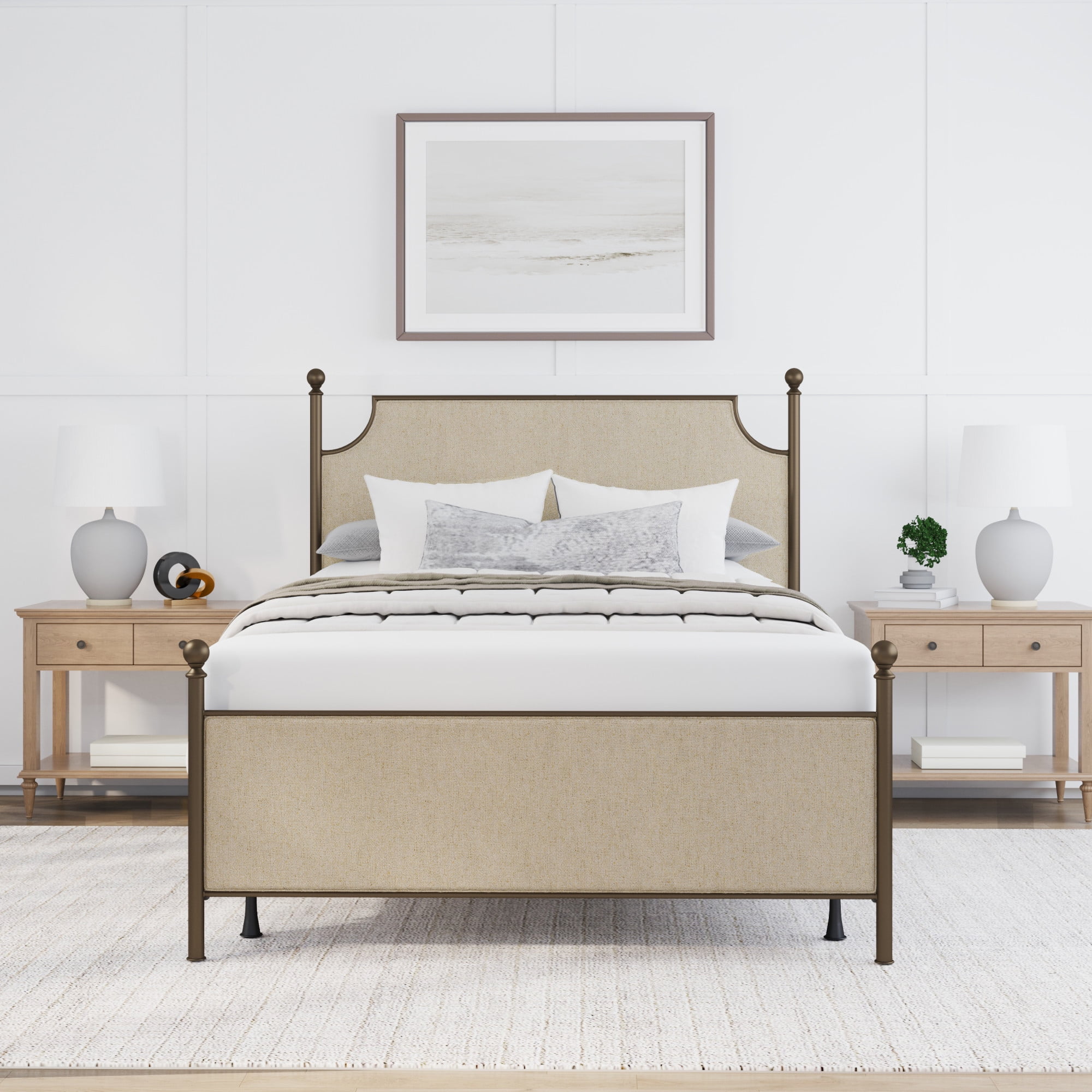 Hillsdale Furniture McArthur Queen Metal and Upholstered Bed, Bronze with Linen Stone Fabric