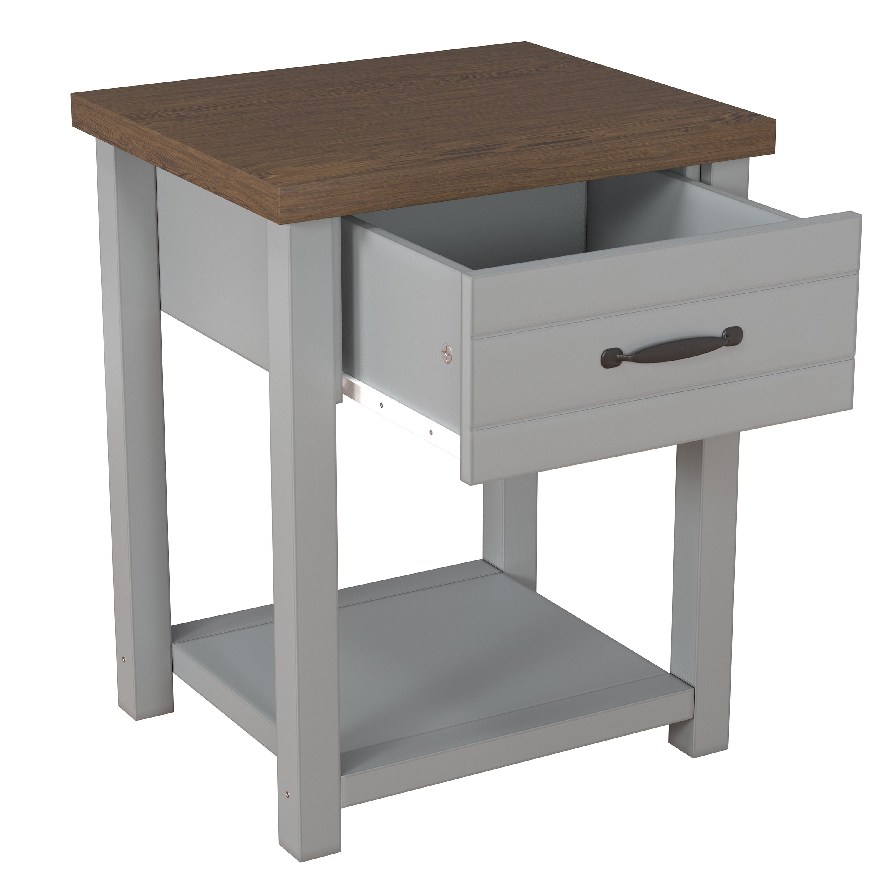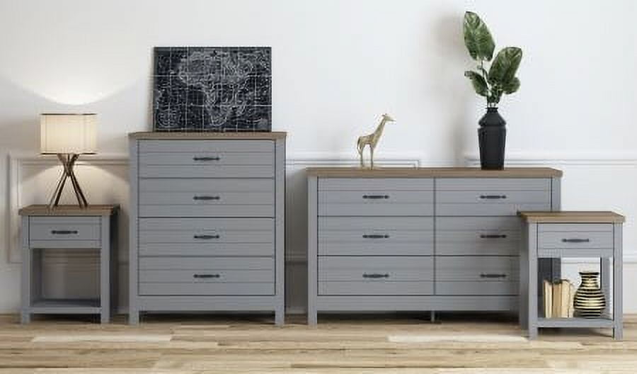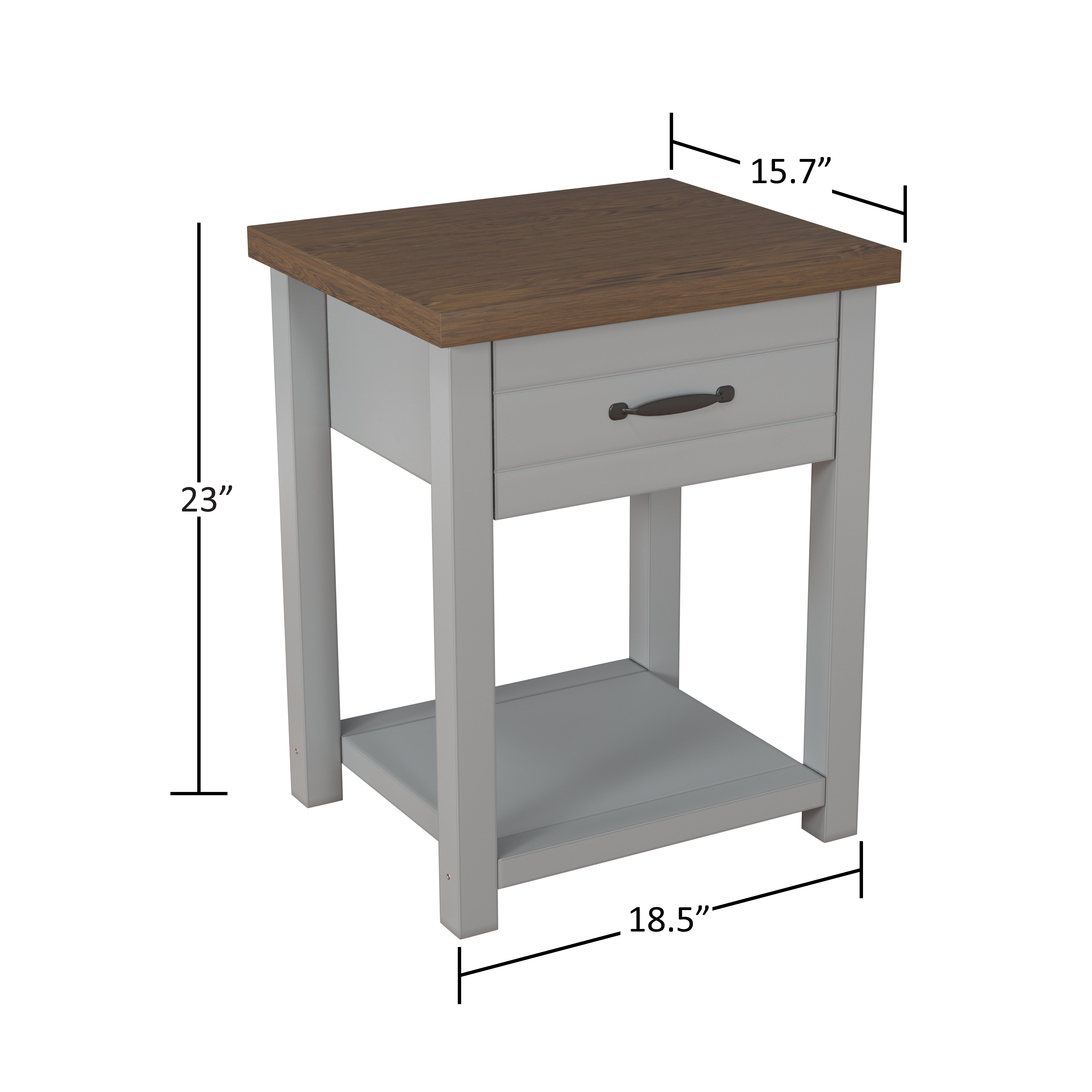 Includes two (2) adult nightstands with 1 drawer Gray finish with black metal drawer handles Crafted of composite wood and MDF Durable metal guides Overall Dimensions: 23″ H x 18.5″ W x 15.5″ D For residential use Ship in one box Sold as a set of 2. Assembly required.