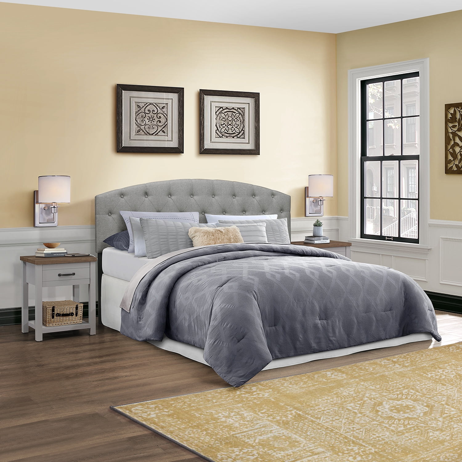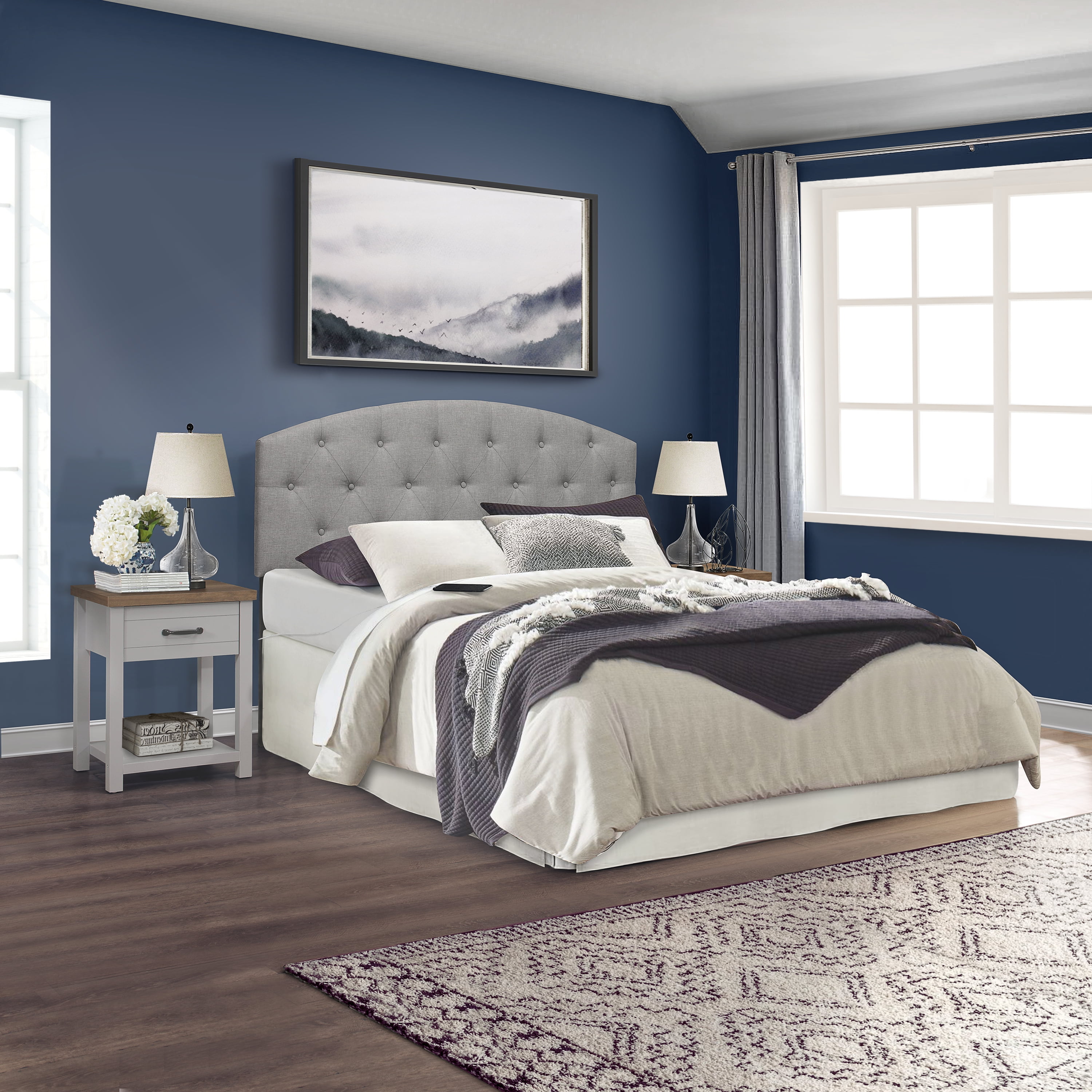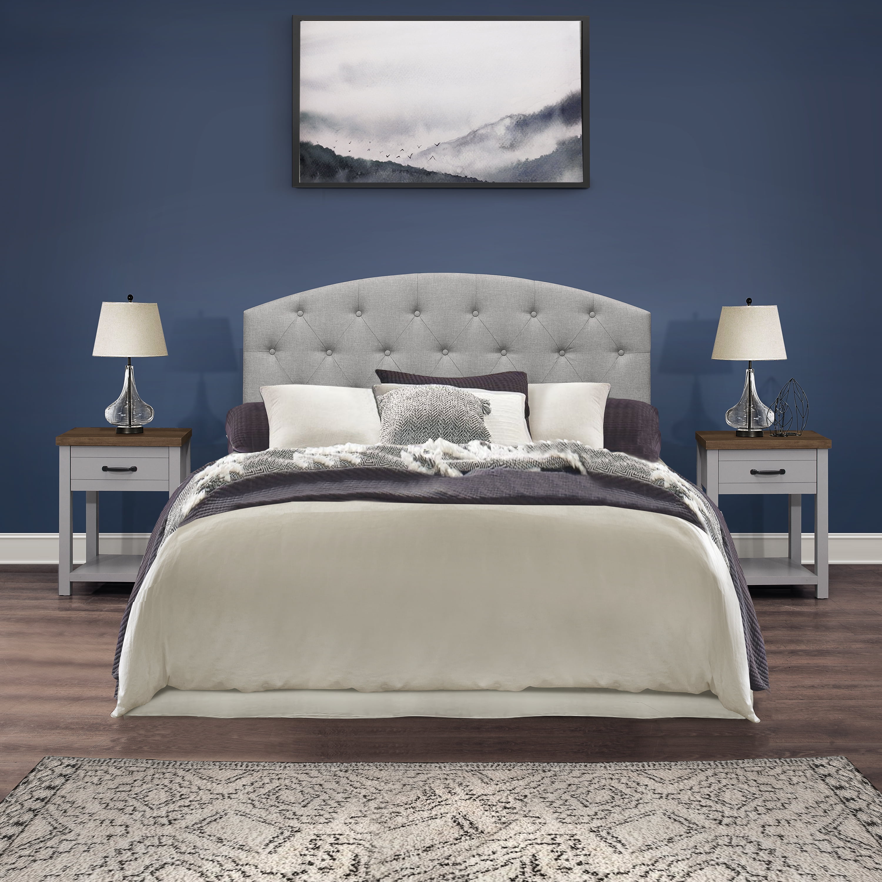 Includes two (2) adult nightstands with 1 drawer Gray finish with black metal drawer handles Crafted of composite wood and MDF Durable metal guides Overall Dimensions: 23″ H x 18.5″ W x 15.5″ D For residential use Ship in one box Sold as a set of 2. Assembly required.
