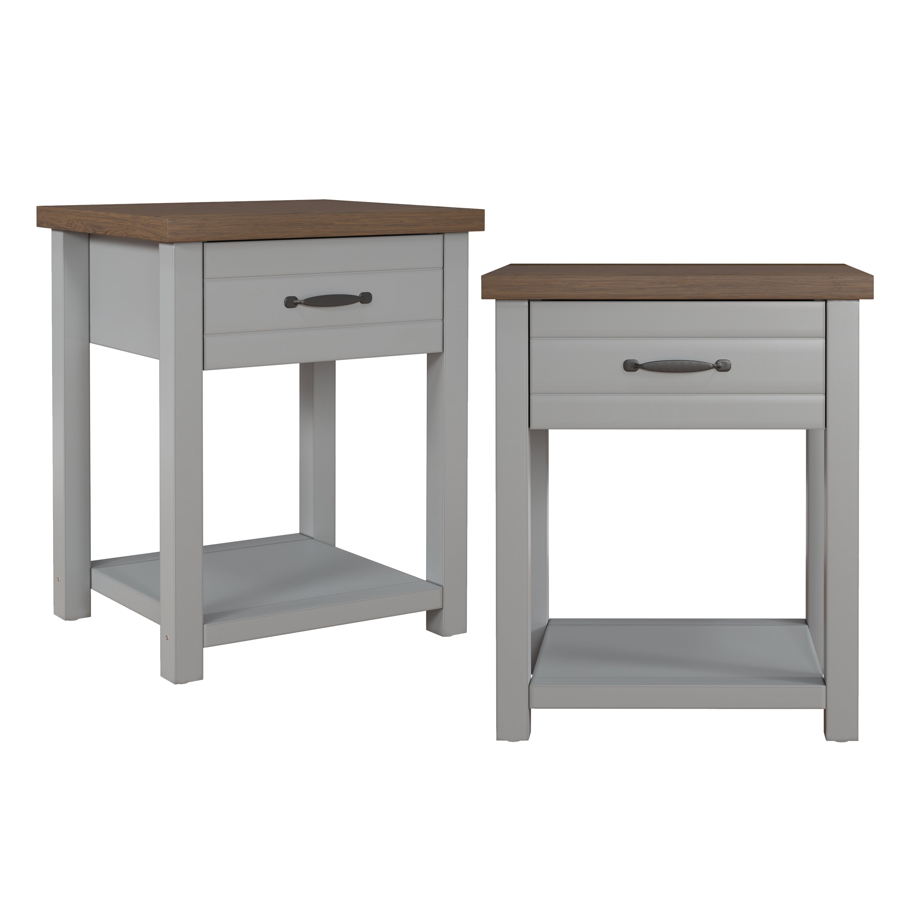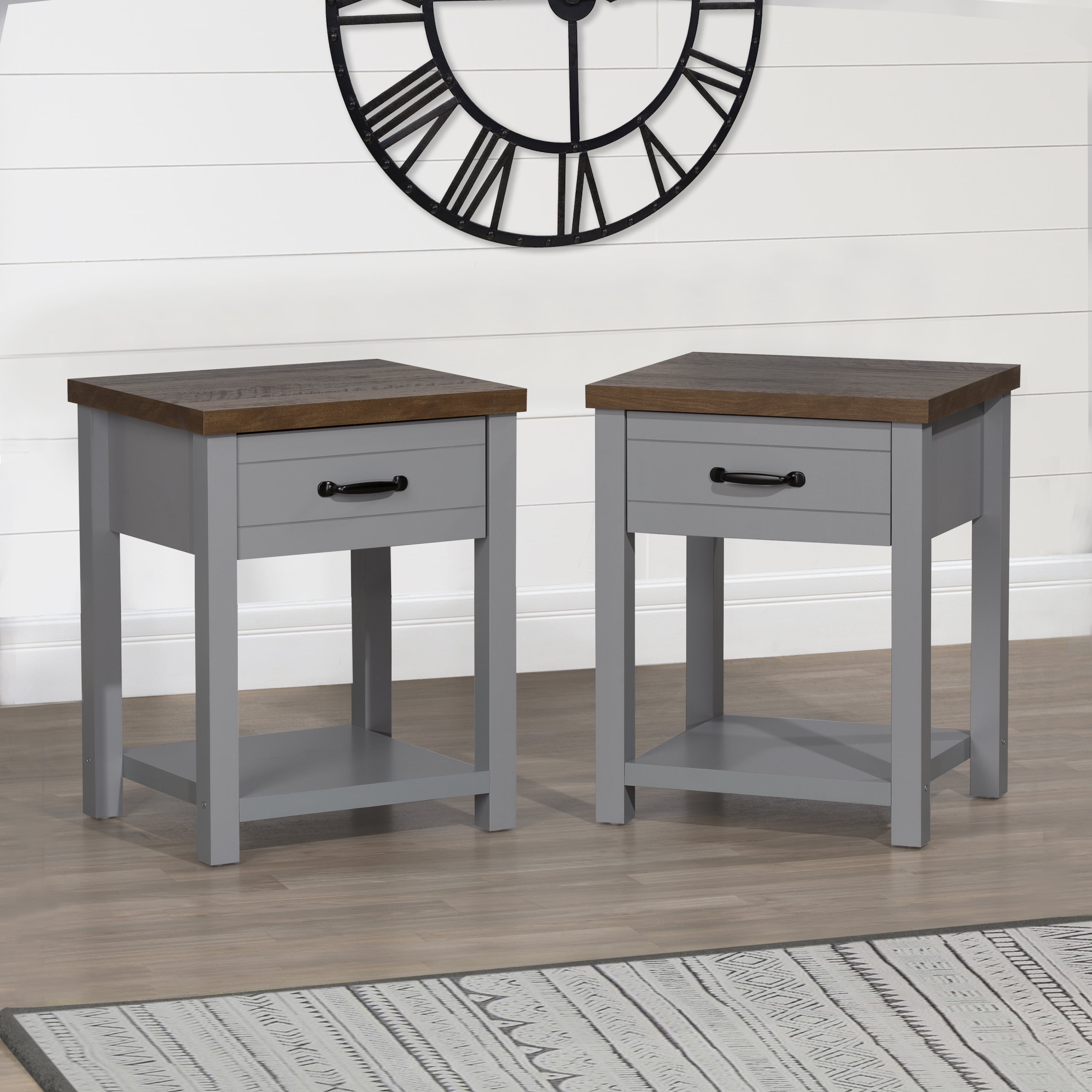 Hillsdale Lancaster Farmhouse Oak Top 1 Drawer Nightstand, Set of 2, Gray