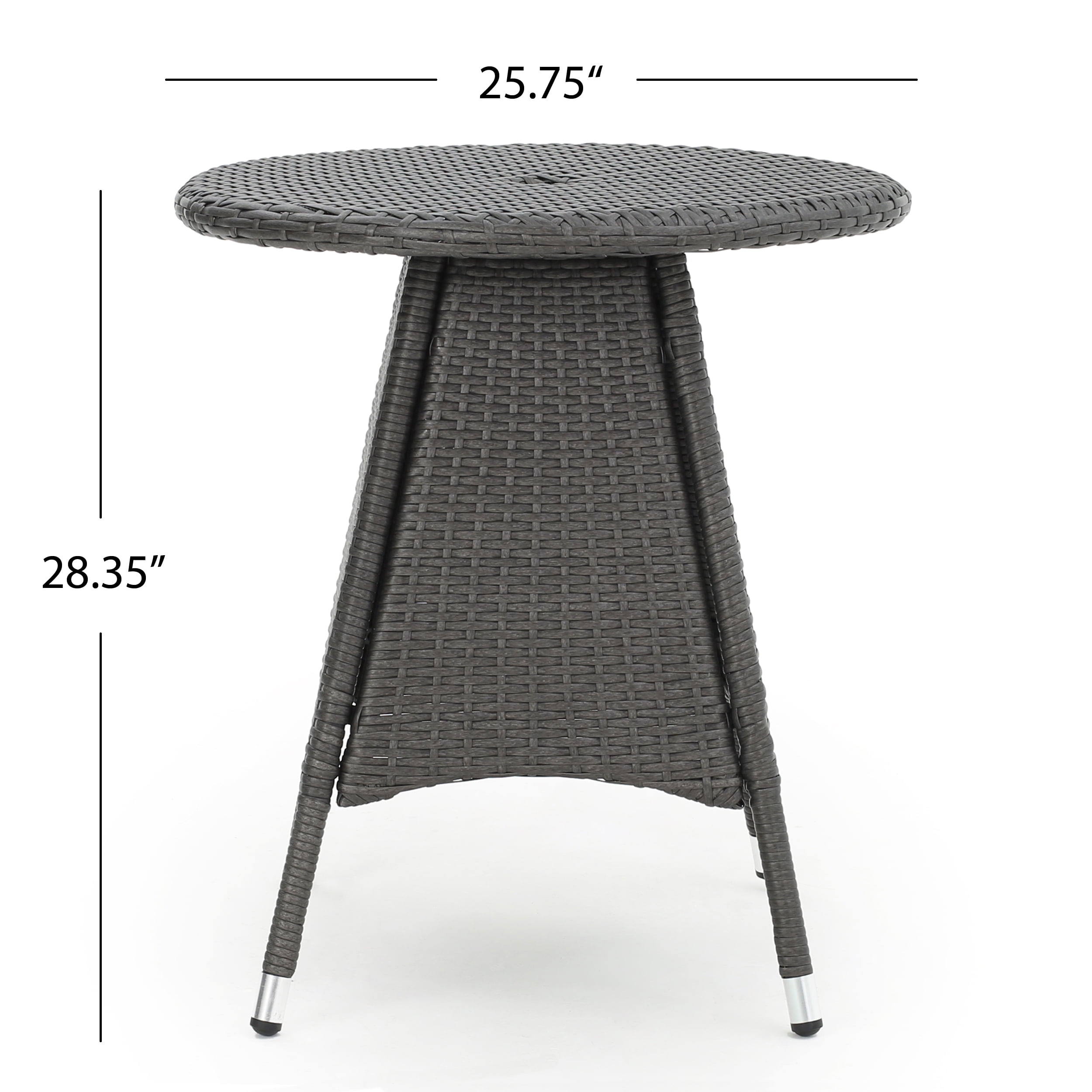 Hillsdale Outdoor 3 Piece Wicker Round Bistro Set with Cushions, Grey