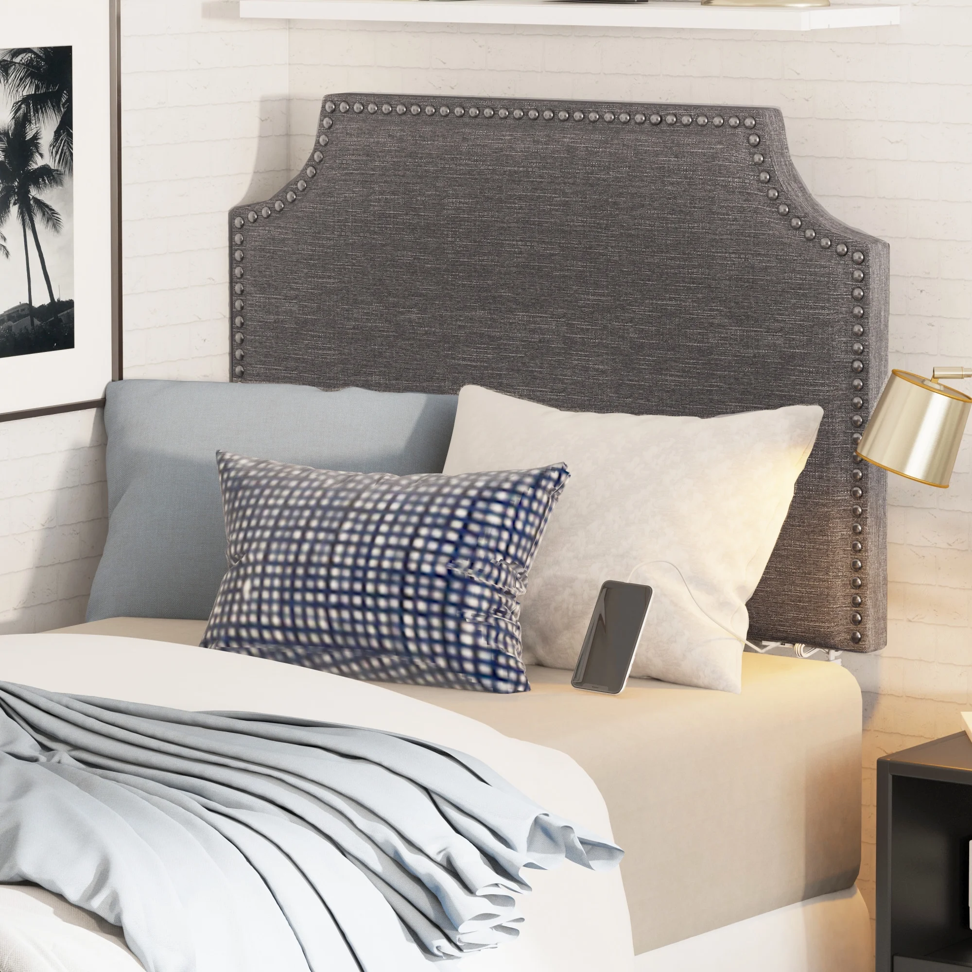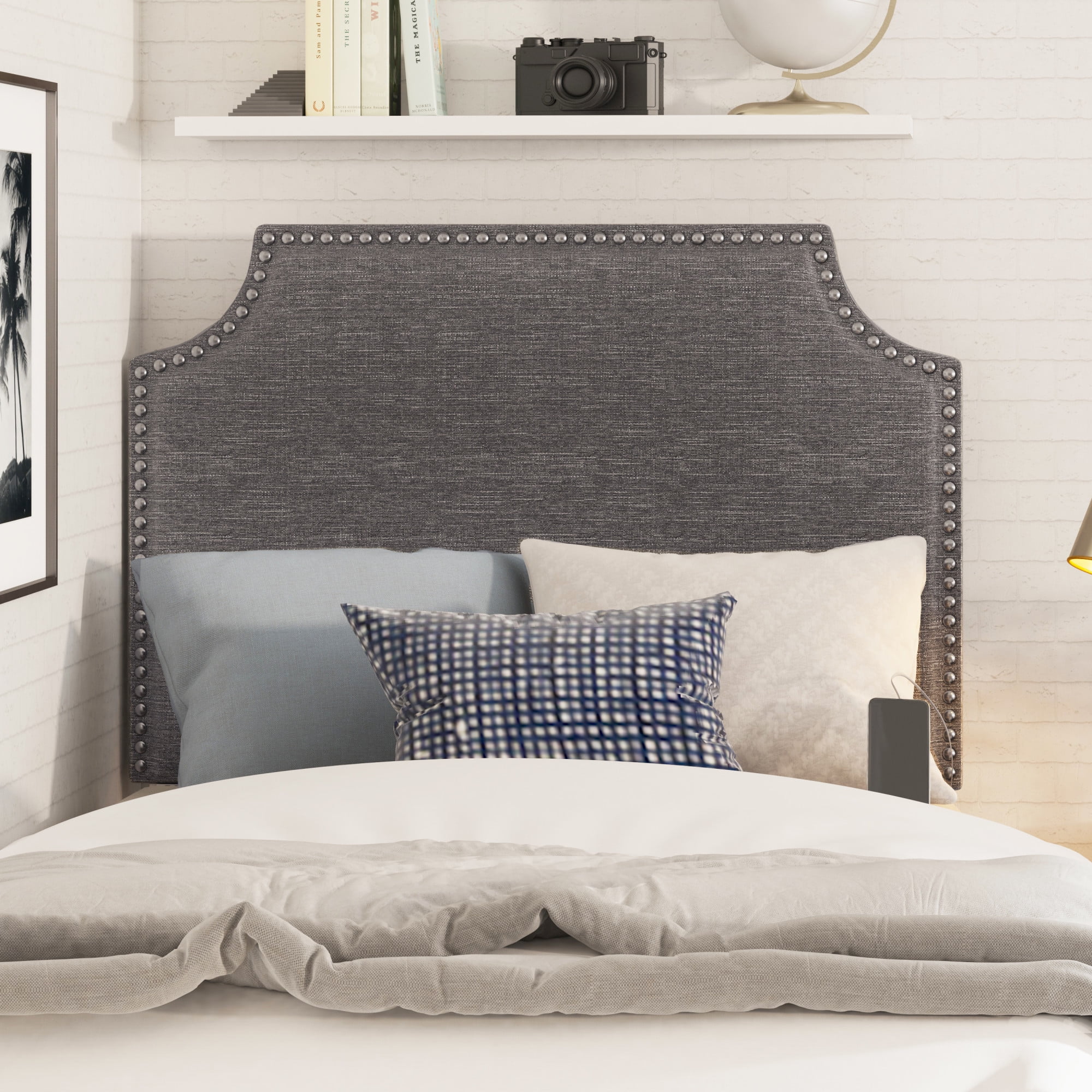 Hillsdale Upholstered Hanging Twin Headboard with Nailhead and USB Charging, Gray