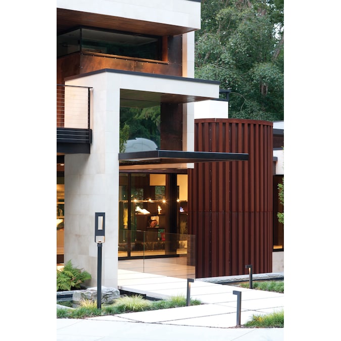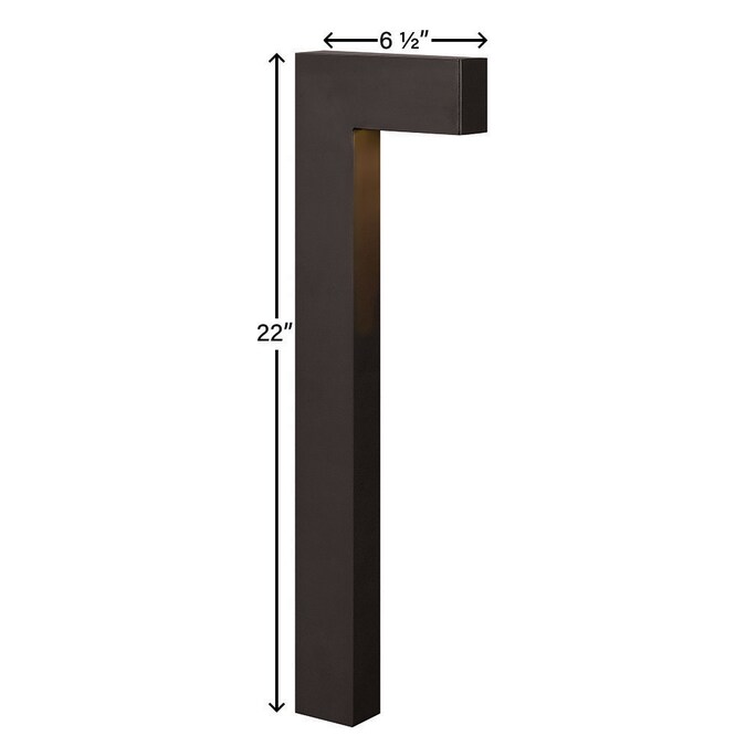 Hinkley’s Atlantis Large LED Path Light’s contemporary design and energy-efficient LED bulbs add style and safety to walkways and pathways. An inverted L-shaped Minimalist design, this low-voltage aluminum path light includes a 1.5w LED lamp that is dimmable (with an MLV transformer) behind an Etched Lens in a rich, lustrous Satin Black tone. Atlantis includes a wiring kit and ground spike and is suitable for use in wet locations.