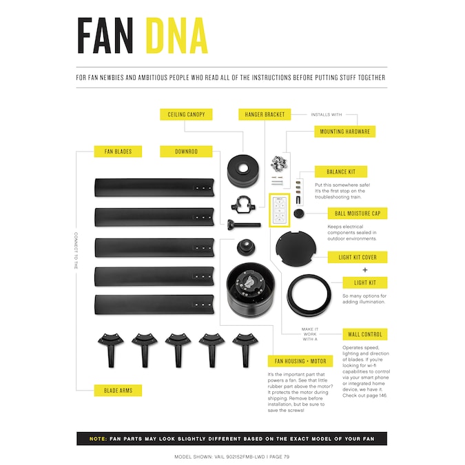 - Upgrade with HIRO Smart Home fan controls (all-in-one speed, lighting and power via remote or app), down rods in lengths up to 72 inches, and light kits (sold separately)