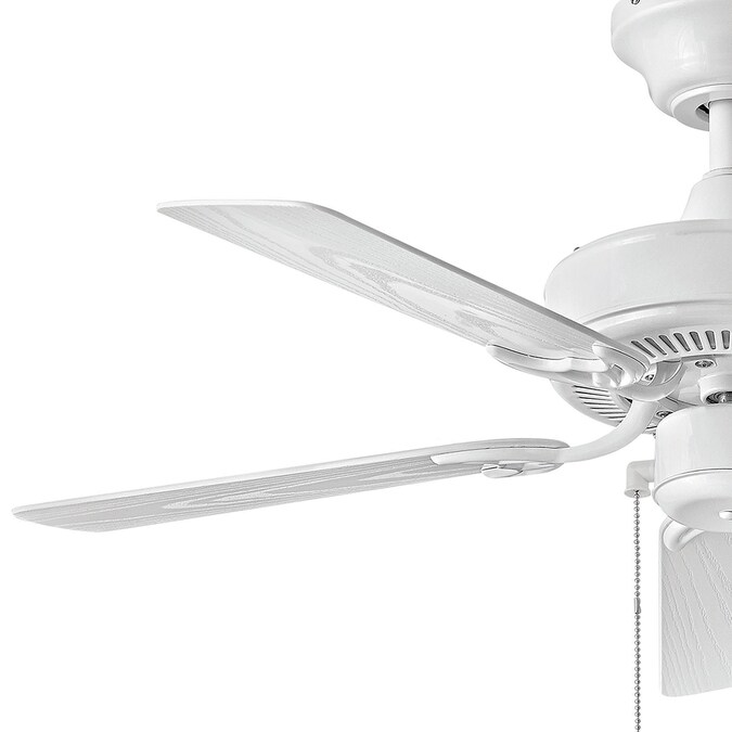 - Wood grain-like composite fan blades in an Appliance White finish