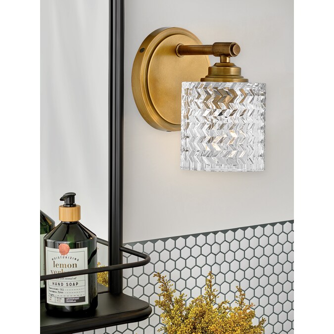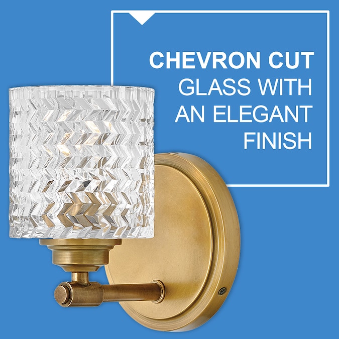 Hinkley’s Elle Small Single Light Bath Vanity blends traditional elegance with a modern edge. Damp-rated for installation in bathrooms, en suites, and powder rooms, this hugger fixture elevates the style in any room and is a good option for those with lower clearance. Rich chevron-cut glass provides interesting light refraction, creating a dramatic focal point whether the light is on or off. Etched glass diffuser covers the (1) 14w Medium LED bulbs (not included) and spreads light evenly in the room.